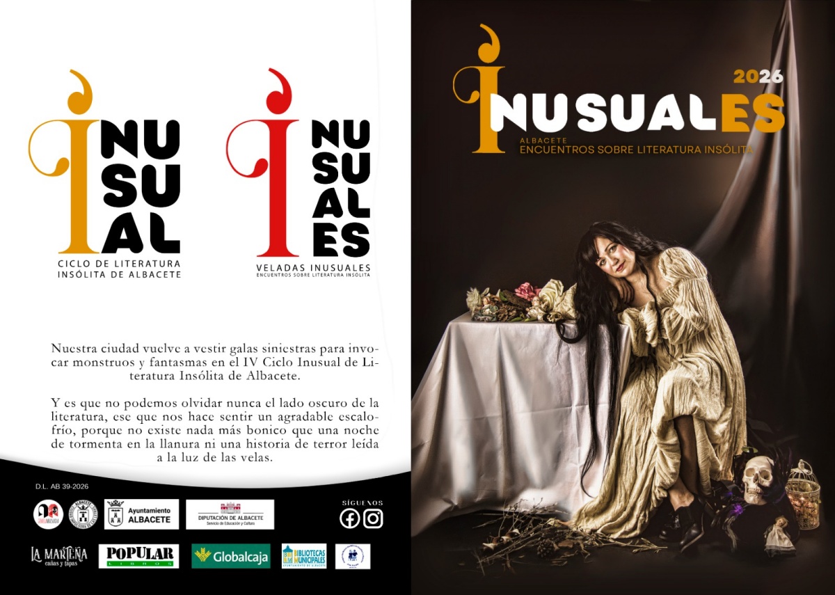 Así, el proyecto ‘Inusuales’ se articula en dos ejes complementarios. Por un lado, las ‘Veladas Inusuales. Encuentros sobre Literatura Insólita’, en cuya organización participa activamente la Diputación de Albacete. Por otro, el ‘Ciclo Inusual de Literatura Insólita de Albacete’, que respalda el Ayuntamiento.