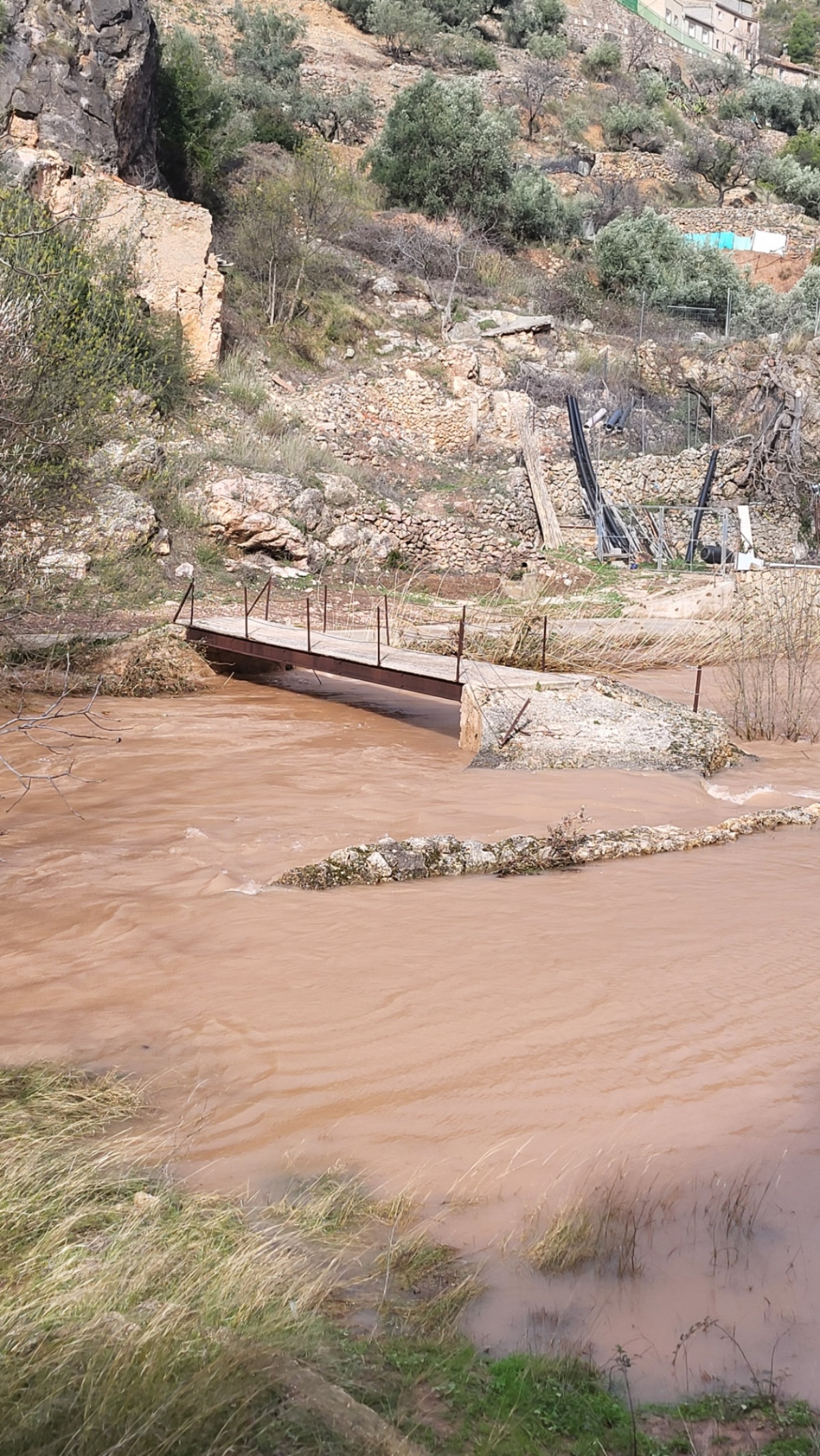 Elegir esta zona como residencia habitual fue un paso importante que atesoraba muchos beneficios, pero no hay que olvidar que “todo lo que llueva o nieve en Riópar viene a parar a esta zona, porque estamos en la ribera del río Mundo. Aunque sabíamos perfectamente que podíamos tener alguna circunstancia desfavorable al venir a vivir aquí, no imaginábamos lo que vendría. Esta es una zona que está un poco abandonada, porque hace tiempo que no vivía nadie por aquí. Hay un camino asfaltado que llega hasta el lugar donde está la casa, y dos puentes para acceder a ella desde la otra parte del río. Uno de los puentes se puede cruzar con coche, y el otro solo a pie. El problema es que, cuando revientan Los Chorros del río mundo, o hay lluvias torrenciales, aumenta el caudal del río y en ocasiones se desborda. Cuando esto ocurre, esos puentes quedan cubiertos por el agua, hasta el punto de que nos impide salir de casa, quedando aislados”, expone.