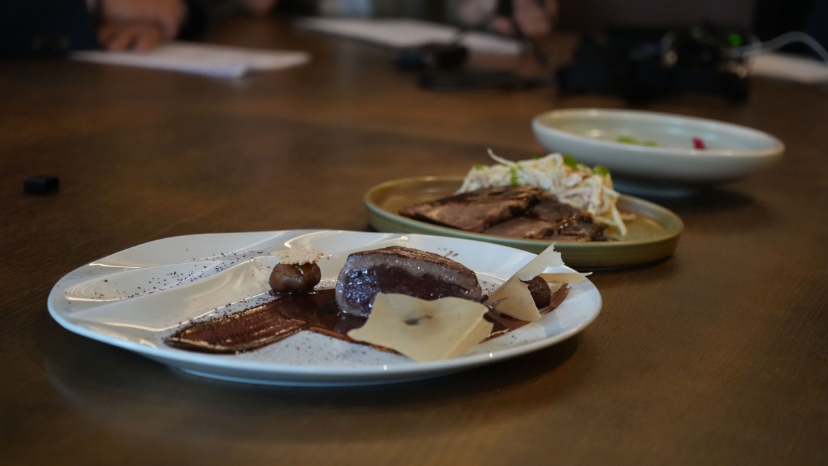 La investigación, presentada en las Casas Colgadas, ilustra que la alimentación de la civilización romana destaca por el aprovechamiento total de los animales y de otros elementos del entorno: “Cereales, aromáticos, especias o leguminosas… los romanos aprovechaban lo que tenían alrededor”, ha señalado el chef en sus inmediaciones. Segura ha presentado tres de los 24 platos que ha diseñado en base a los hallazgos científicos: un caldo de conejo al ajillo con una corona de judías verdes, un pecho de vaca con una ensalada de verduras y vinagre de zumaque y, para acabar, una pieza de ciervo con jugo concentrado aromatizado con bayas de enebro, gel de frutos rojos y unas castañas en diferentes elaboraciones.