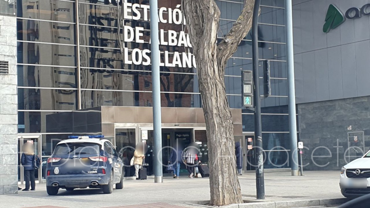 La presencia de numerosos efectivos de la Policía Nacional en la Estación de Albacete no pasaba desapercibida para los curiosos. Aunque en determinadas ocasiones es habitual ver patrullas en este punto para realizar labores rutinarias, este viernes el despliegue policial era mayor de lo habitual.