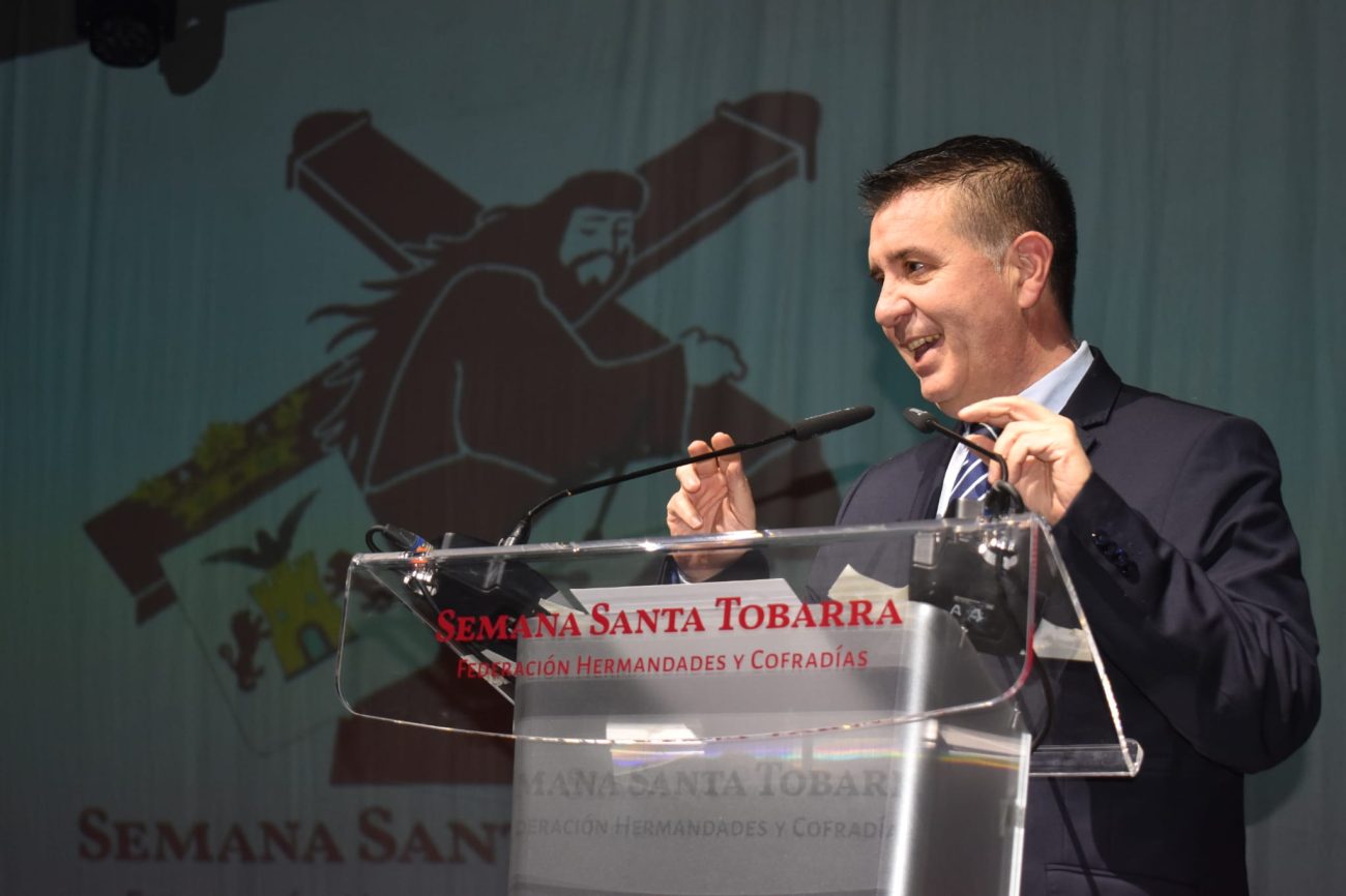 Durante su intervención, ha agradecido la invitación y ha señalado la emoción y la solemnidad que se vive en este acto cargado de simbolismo, en el que ha puesto en valor la Semana Santa tobarreña desde el orgullo por cómo la localidad vive esta celebración, cómo la prepara durante todo el año, cómo la cuenta y cómo la transmite de una a otra generación, como el tesoro que es.