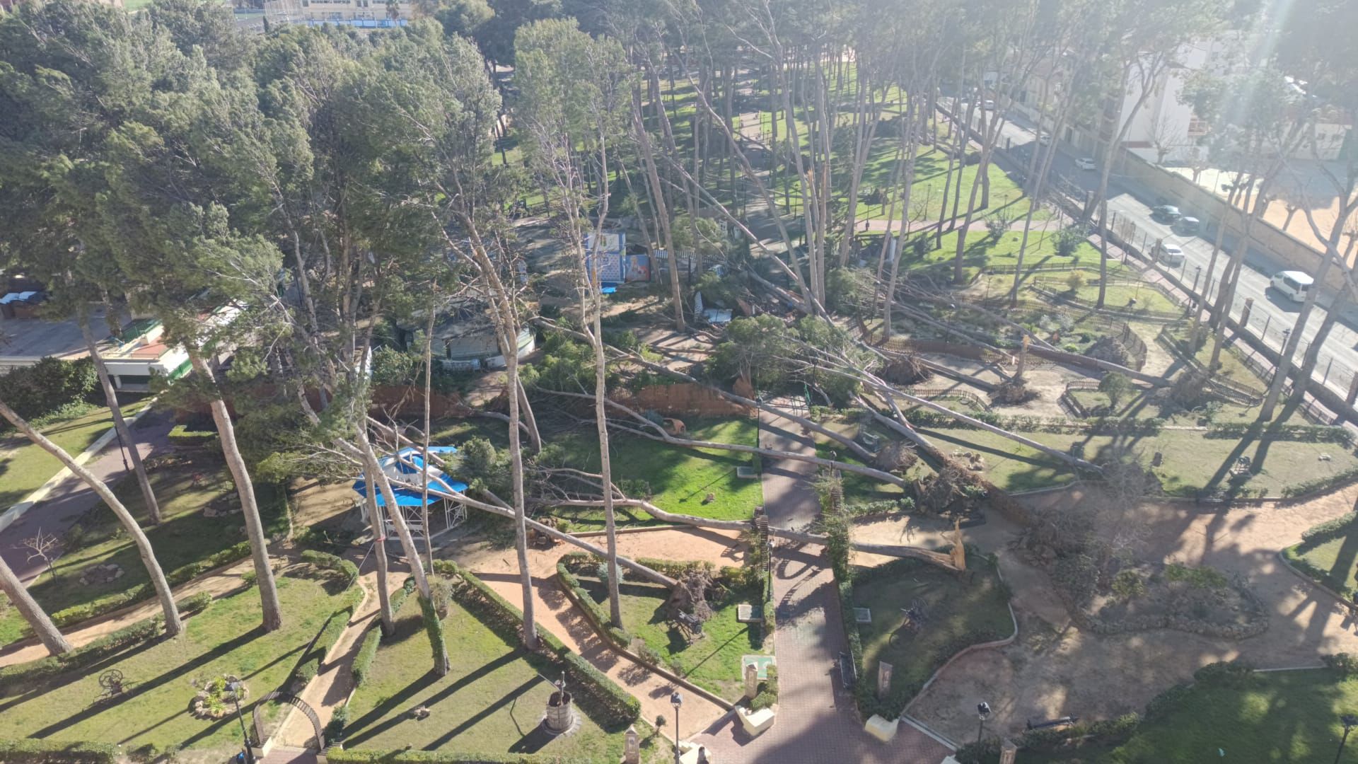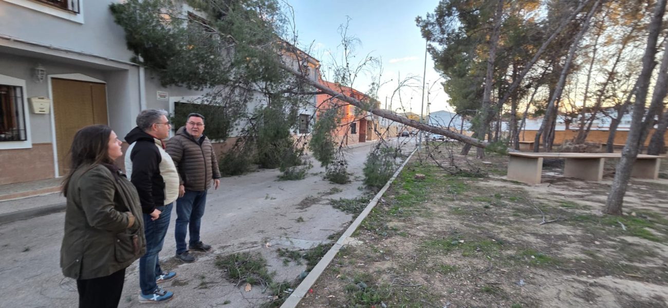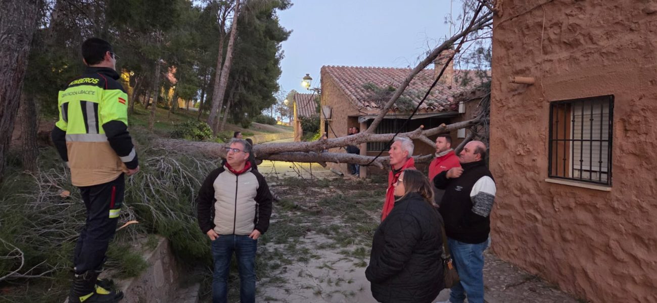 La provincia de Albacete vive este sábado 14 de febrero de 2026 una jornada de fuerte temporal de viento, con especial incidencia en el sureste provincial. La situación se aprecia con claridad en la imagen que acompaña a este artículo, donde se observan varios árboles de gran porte caídos en el parque de Hellín, consecuencia de las intensas rachas registradas durante el día.