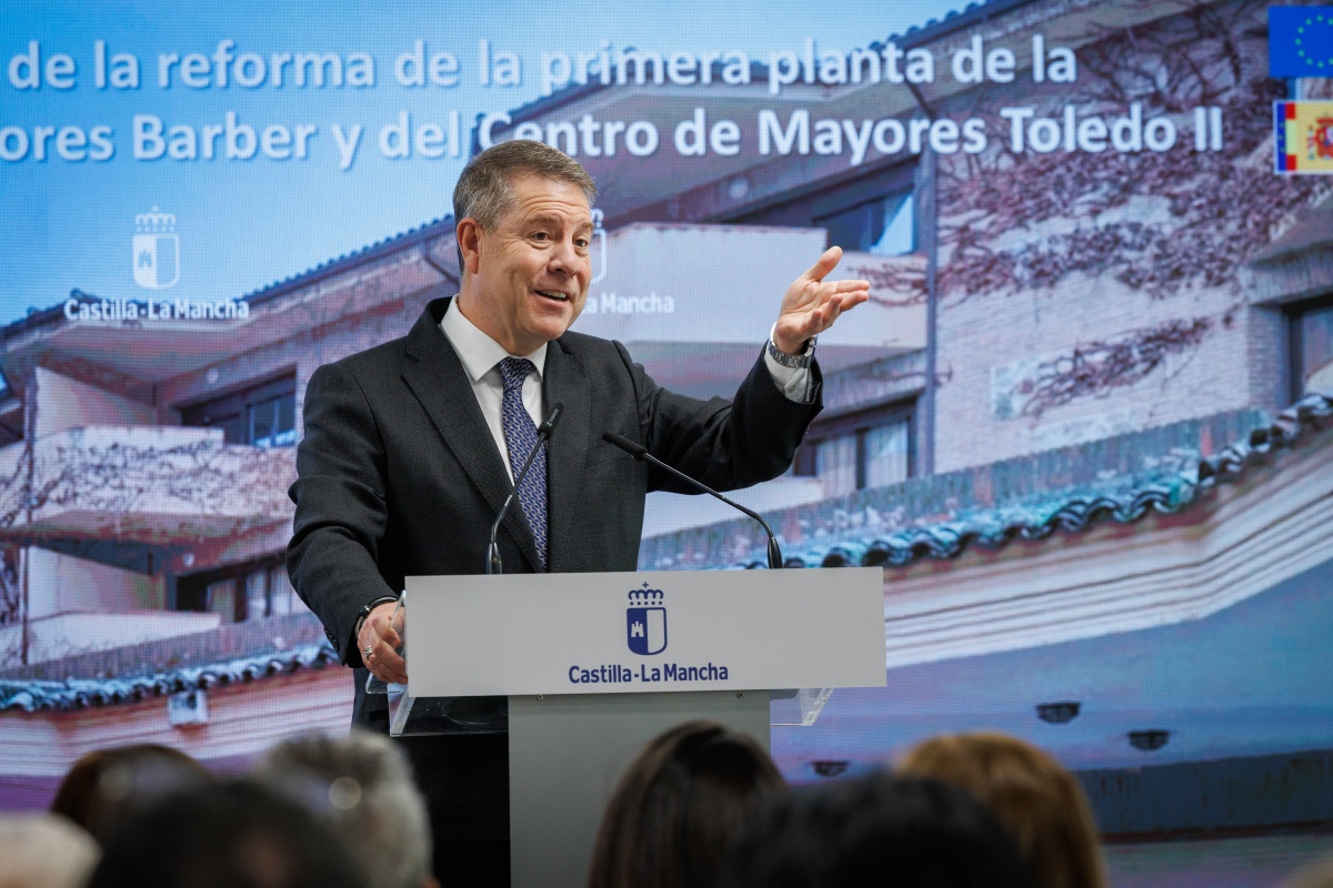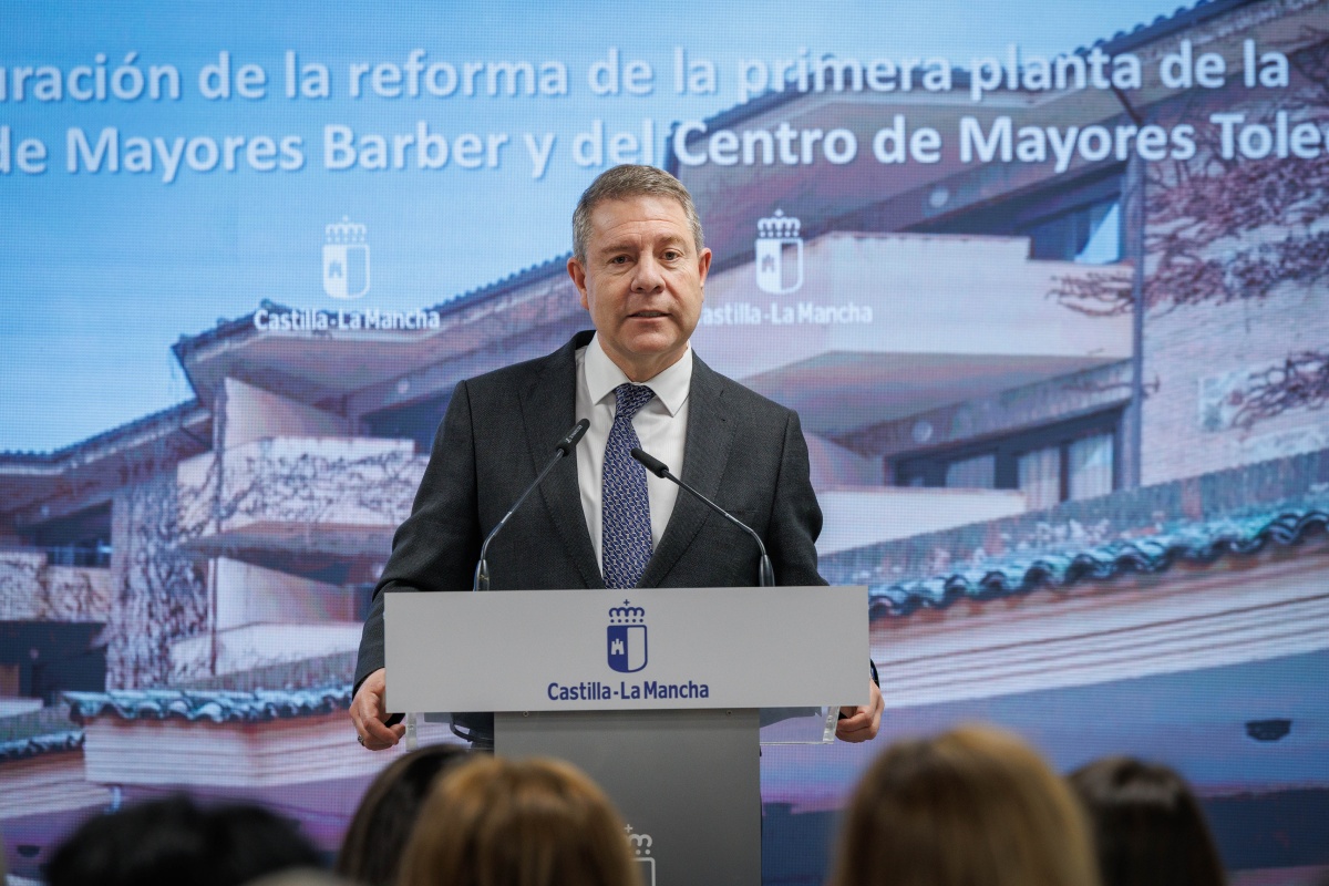 El presidente de Castilla-La Mancha, Emiliano García-Page, ha inaugurado este lunes en Toledo la reforma integral de la primera planta de la Residencia de Mayores ‘Barber’ y la modernización del Centro de Mayores Toledo II, dos actuaciones en las que el Gobierno regional ha invertido más de 3,3 millones de euros para reforzar la red pública de atención a las personas mayores en la capital regional.