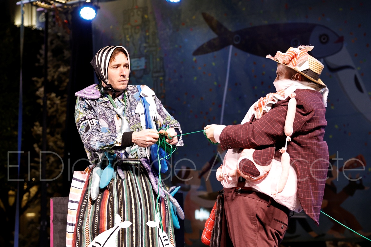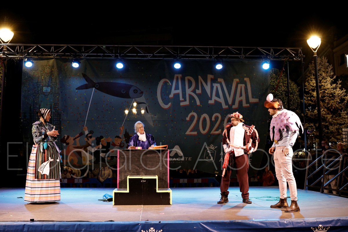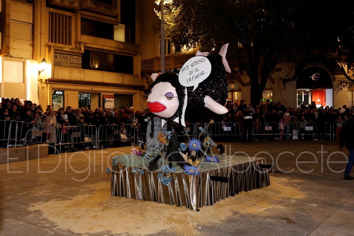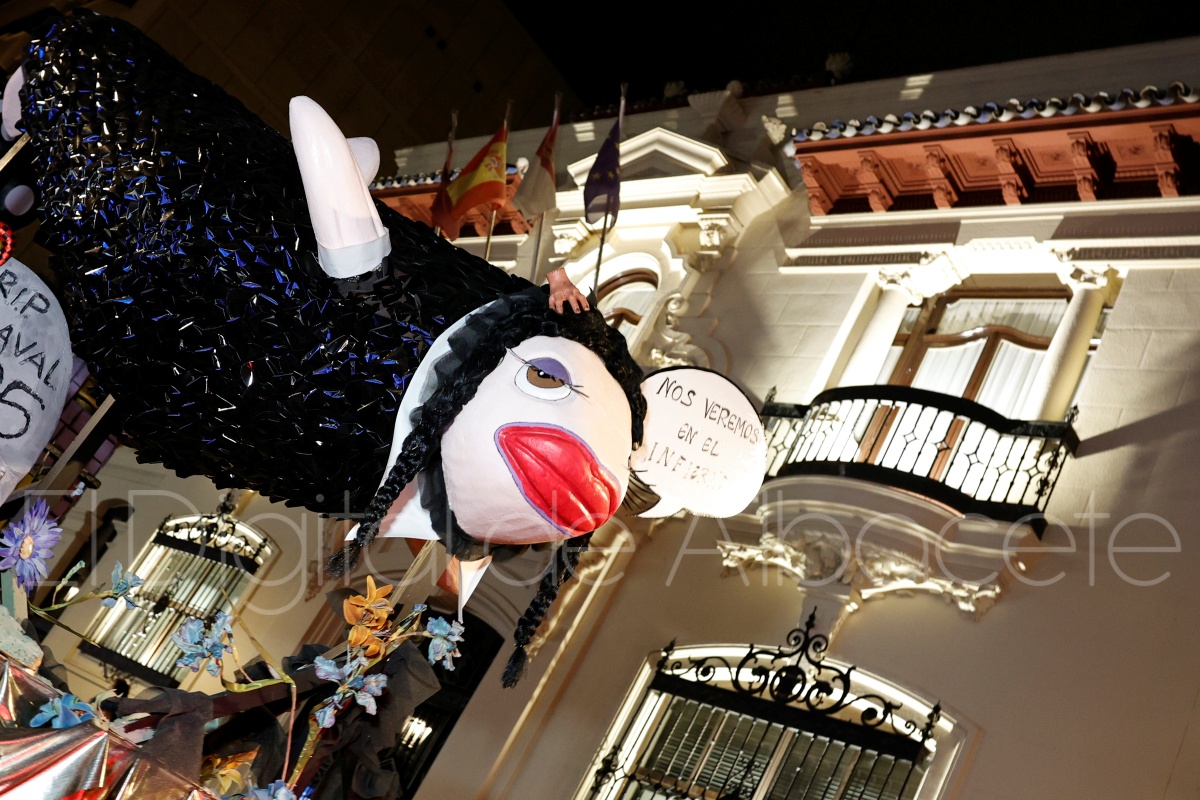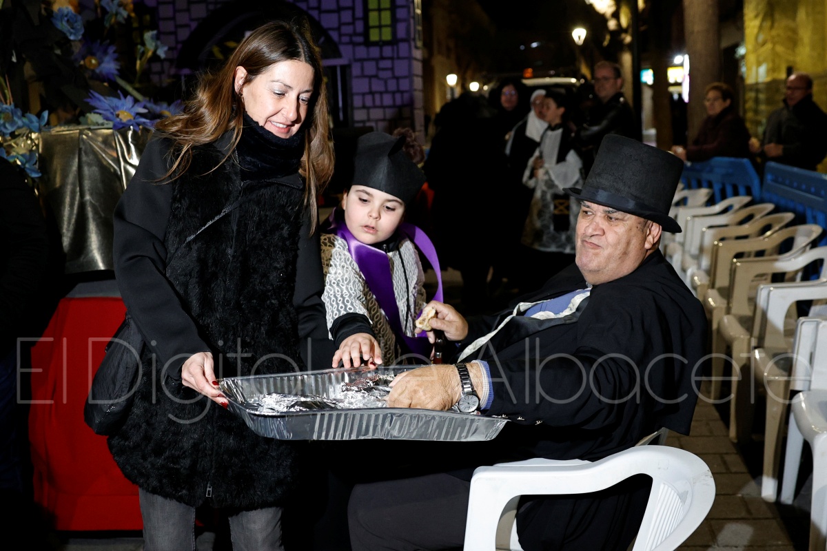 Posteriormente, al filo de las 20:30 horas, el cortejo recorría las céntricas calles Tesifonte Gallego y Marqués de Molins. De riguroso luto y compungidos por el Entierro la Sardina, los participantes se dirigían hasta la Plaza del Altozano, donde se celebrará el juicio, sentencia y quema de Doña Sardina, a cargo de la Compañía La Brava.