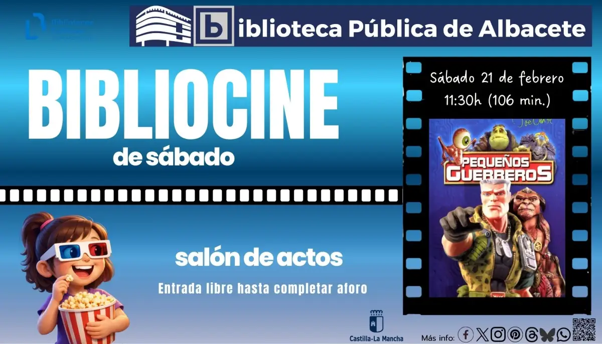 El ciclo Bibliocine continúa ofreciendo propuestas de cine familiar en la biblioteca cada sábado, pensadas para disfrutar en familia y compartir historias y emociones. El sábado, 21 de febrero, a las 11:30 horas se proyectará la película ‘Pequeños Guerreros’, una entretenida mezcla de acción y comedia apta para todos los públicos.