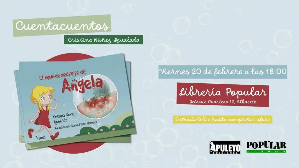 El Cuentacuentos ‘El mundo secreto de Ángela’ llega este viernes, 20 de febrero a la Librería Popular a partir de las 18:00 horas. Ángel les una niña a la que le encanta leer antes de ir a dormir, sin embargo un día descubre que bajo el jardín de su casa viven unos seres diminutos que tienen un enorme problema.