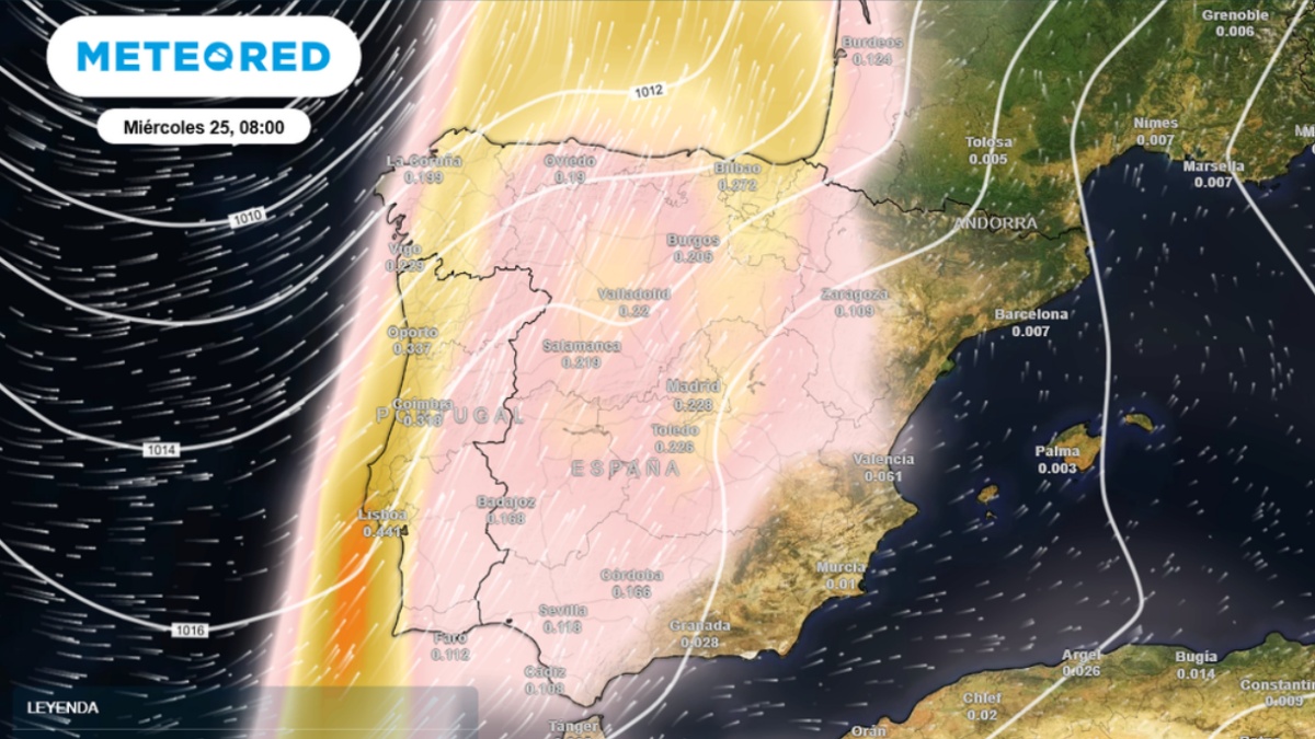 El avance del frente se verá frenado por la dorsal situada en el Mediterráneo occidental y por el ascenso del anticiclón de las Azores, provocando que la vaguada se estire sobre la Península. Finalmente, el miércoles terminará separándose al suroeste, dando lugar a una DANA que se desplazará hacia Canarias, donde se esperan aguaceros localmente intensos desde el jueves.