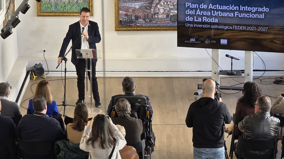 El presidente de la Diputación de Albacete, Santi Cabañero, ha presentado este lunes, en la Posada del Sol de La Roda, el Plan de Actuación Integrado (PAI) del Área Urbana Funcional de La Roda que, financiado con fondos europeos FEDER y con aportación de la propia Diputación, movilizará 7.150.660 euros en ocho municipios de la comarca.