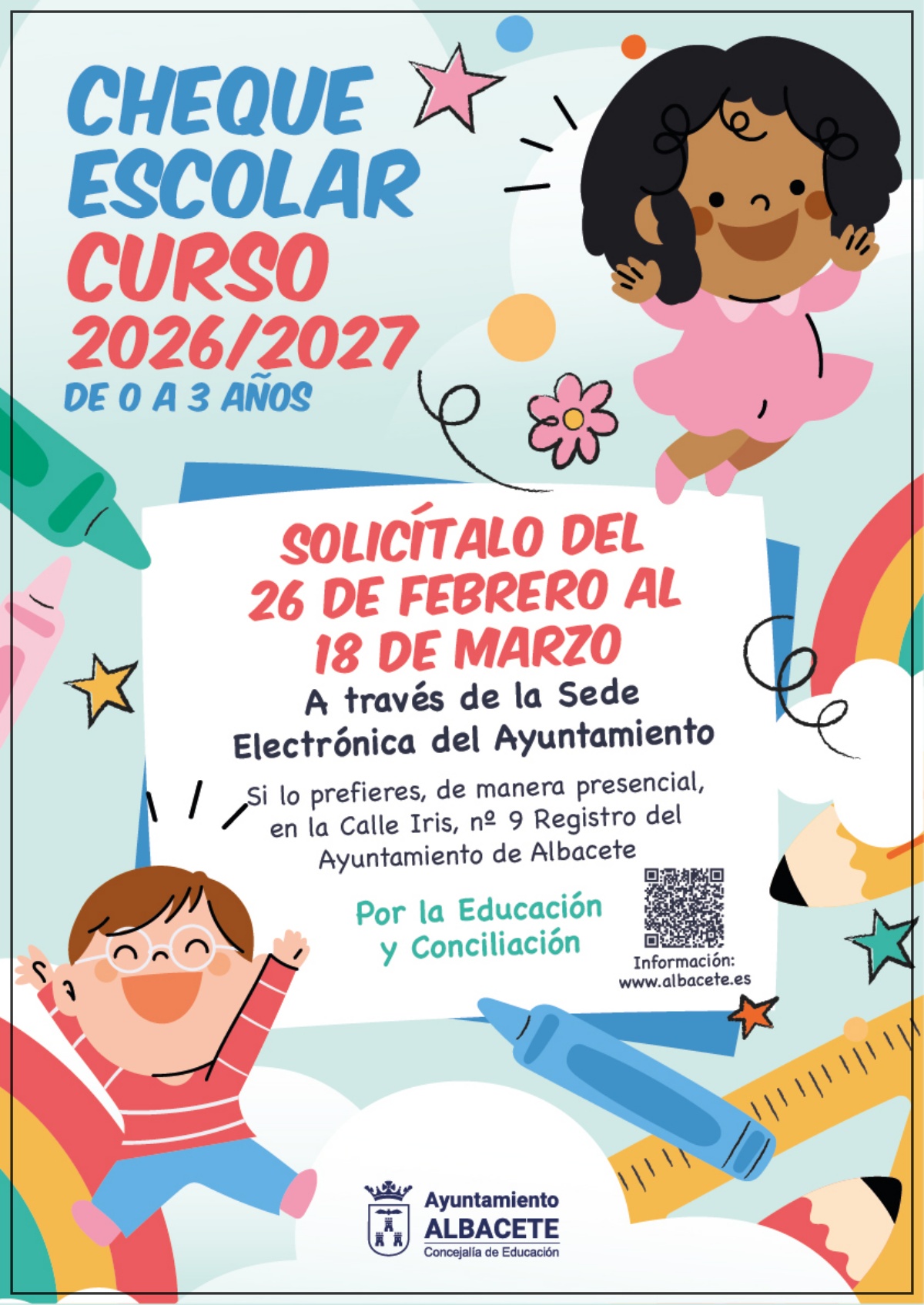 Para más información sobre las bases reguladoras de la convocatoria y acceder al modelo de solicitud presencial, pueden dirigirse a la siguiente dirección: https://www.albacete.es/es/noticias/cheque-escolar-curso-20262027.