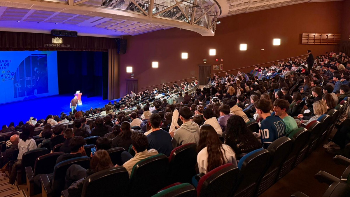 La concejala de Juventud, Gala de la Calzada, ha destacado el firme compromiso que el Equipo de Gobierno mantiene con la población juvenil de Albacete y el intenso trabajo que realiza durante todo el año para dar respuesta a sus necesidades, garantizar su participación, poner a su disposición actividades de ocio alternativo y fomentar hábitos de vida saludable a través de iniciativas como la conferencia ‘Comer saludable en un mundo de redes sociales’ que hoy ha impartido el dietista y nutricionista Aitor Sánchez a más de 600 escolares de 3º y 4º de la ESO de los centros Federico García Lorca; Don Bosco; Escuelas Pías; Bachiller Sabuco; Tomás Navarro Tomás; Pinar de Salomón; y Alto de los Molinos.