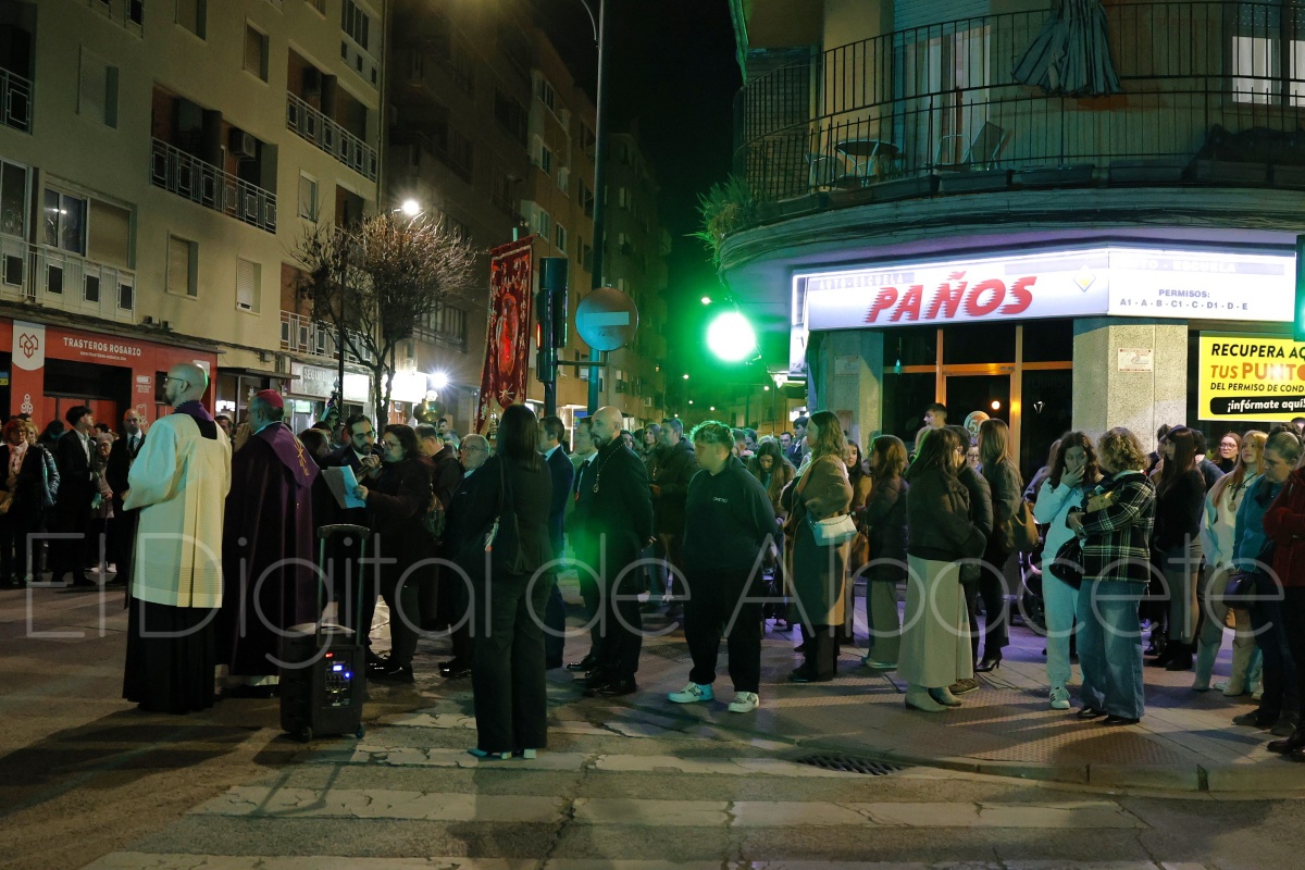 Este viernes la ciudad de Albacete vivió uno de los momentos más significativos de la Cuaresma 2026 con la celebración del Vía Crucis de las Cofradías, un acto de fe y tradición que, por primera vez, se celebró en las calles de la ciudad. La procesión, organizada por la Junta de Cofradías y Hermandades de la Semana Santa de Albacete, contó con la presencia de 15 cofradías locales y tuvo como protagonista la imagen del Santísimo Cristo de la Esperanza, que salió desde la parroquia de Franciscanos para recorrer varias calles emblemáticas del barrio con la presencia del Obispo de Albacete, Ángel Román.