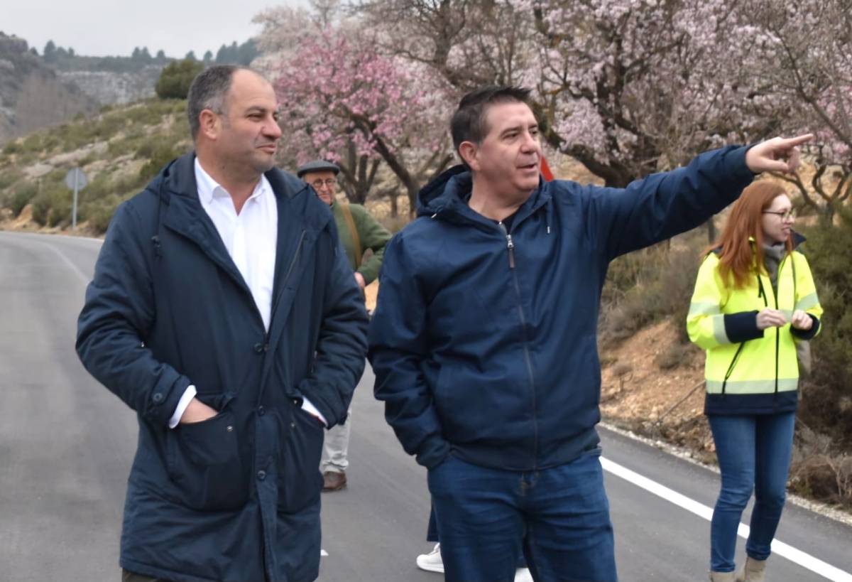 El presidente de la Diputación de Albacete, Santi Cabañero, acompañado por el alcalde de Nerpio, José Antonio Gómez, han visitado este lunes las obras de reparación integral de la carretera AB-5014, ya finalizadas.