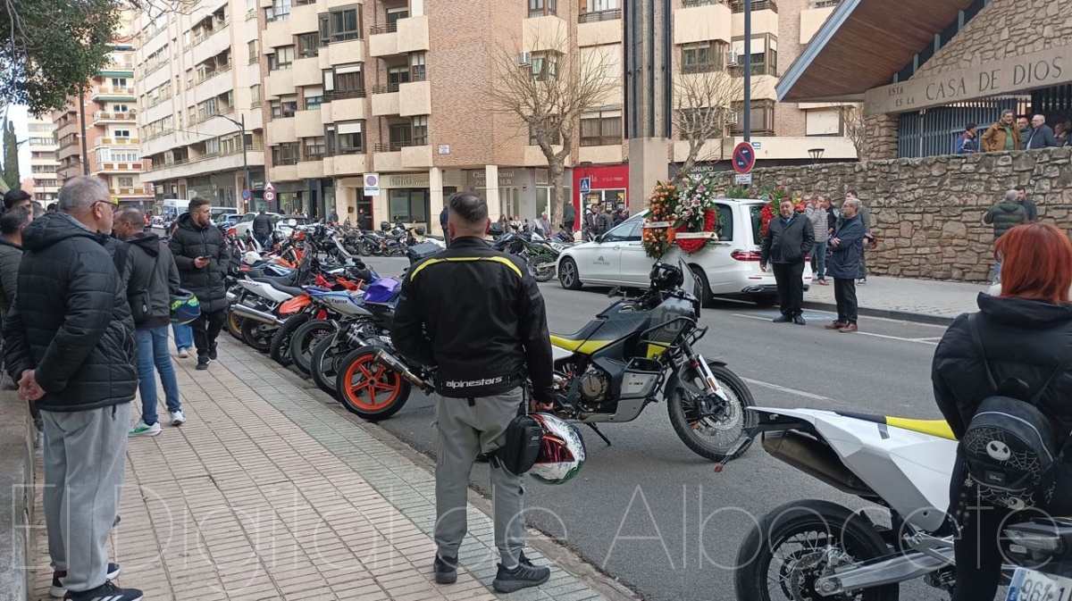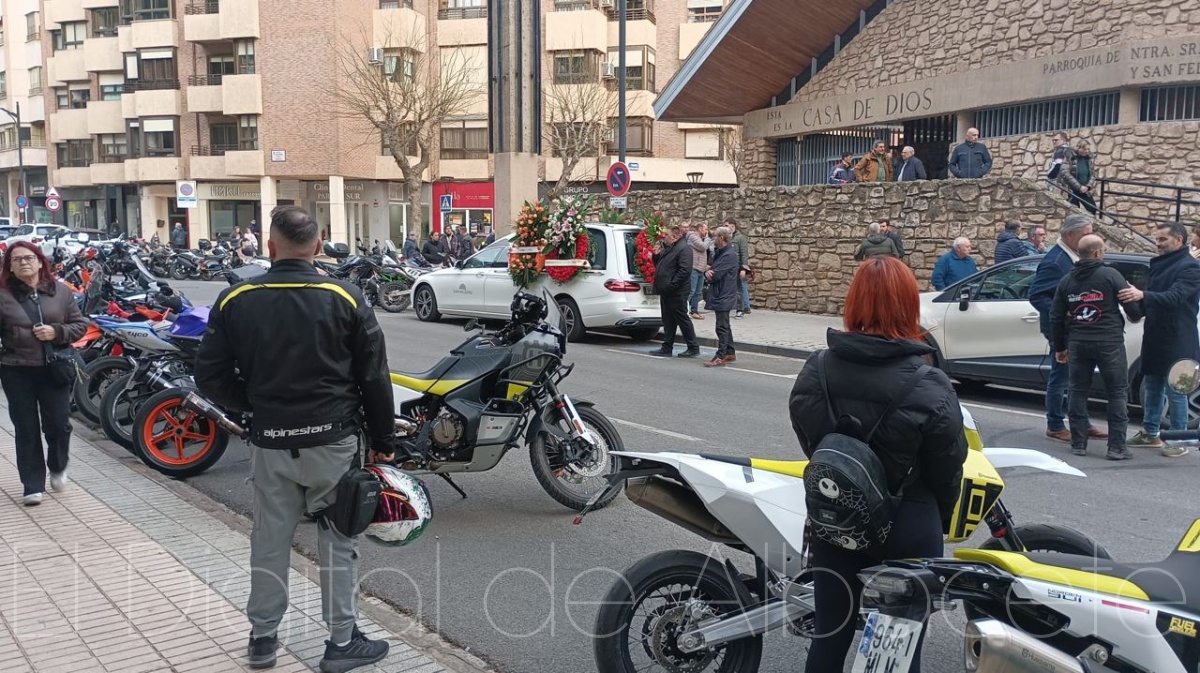 El funeral se ha celebrado este martes, 3 de marzo, a las 18:00 horas, en la Parroquia de Nuestra Señora de las Angustias y San Felipe Neri de Albacete, hasta donde se han desplazado personas llegadas de distintos puntos, muchas de ellas vinculadas al mundo de las dos ruedas. Antes, en el Tanatorio de Albacete, una multitud de motocicletas se ha congregado para acompañar a José Luis en su último viaje: con los motores sonando al unísono y lanzando ráfagas al cielo, como símbolo de hermandad y abrazo colectivo en una tarde de lágrimas contenidas.