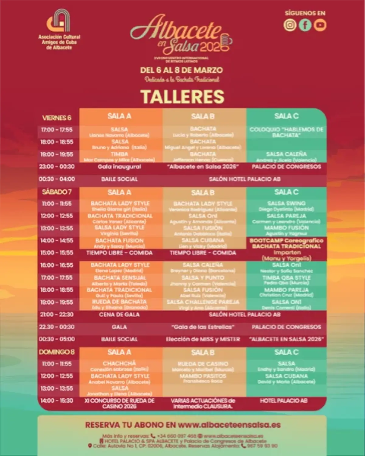 Puedes consultar toda la programación de esta cita con los ritmos latinos y precios para asistir a los diferentes talleres y espectáculos en el siguiente enlace.
