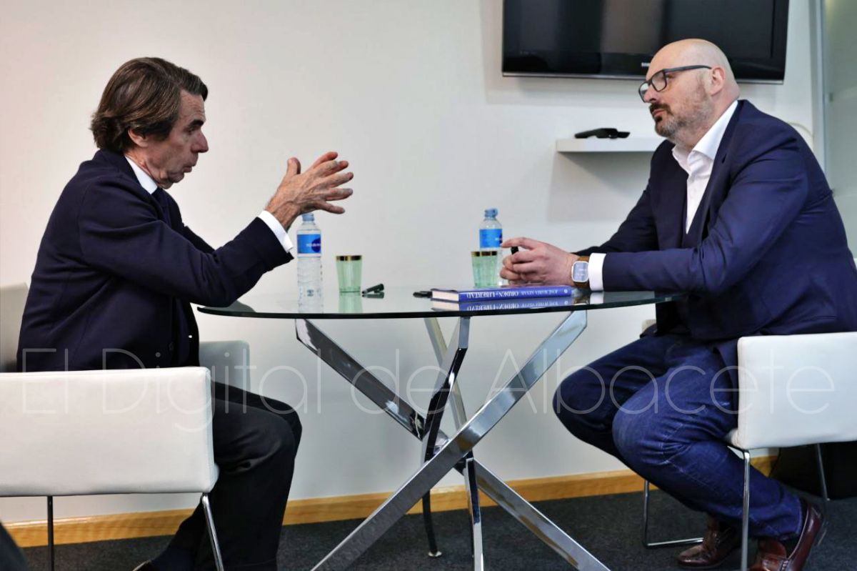 El expresidente del Gobierno José María Aznar ha visitado Albacete para presentar su libro Orden y libertad, una obra en la que reflexiona sobre el nuevo escenario internacional, el futuro de la democracia liberal y los desafíos políticos que, a su juicio, afrontan España y Europa. Con motivo de esta visita, el director de El Digital de Albacete, El Digital de Cuenca e INFOCLM, Javier Romero, ha mantenido una entrevista en la que Aznar analiza la situación política nacional e internacional, la relación de España con sus aliados, el papel de la monarquía, la presencia de Bildu en la política española y el estado de las libertades en el país.