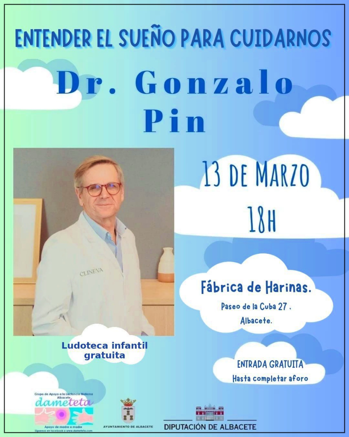 Así las cosas, Albacete acogerá el próximo viernes 13 de marzo de 2026, a las 18.00 horas, una charla sobre sueño infantil a cargo del doctor Gonzalo Pin Arboledas, uno de los especialistas más reconocidos en este ámbito en España. La actividad se celebrará en la Fábrica de Harinas, situada en el Paseo de la Cuba, 27, y será de acceso gratuito.