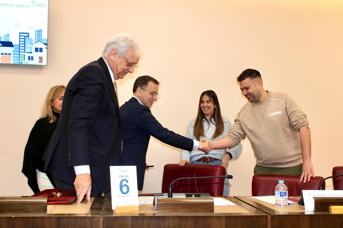 El alcalde de Albacete, Manuel Serrano, continúa haciendo entrega de las llaves de esta promoción municipal, construida a través de Urvial, conforme los adjudicatarios completan la firma de las escrituras hipotecarias y de compraventa. Con las 11 entregadas este lunes, ya son 69 las viviendas adjudicadas dentro de una actuación que busca facilitar el acceso a una vivienda digna en un contexto marcado por las dificultades del mercado residencial.