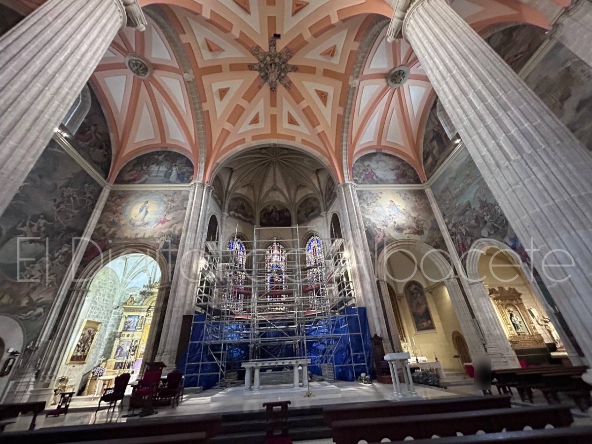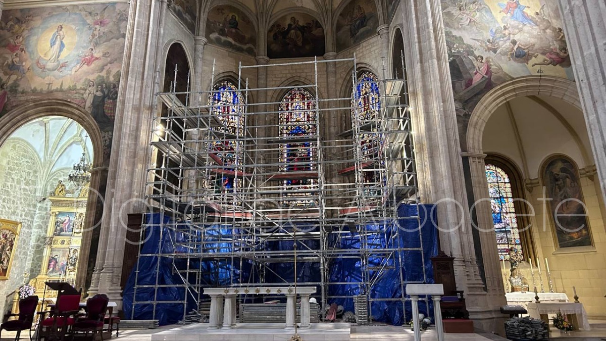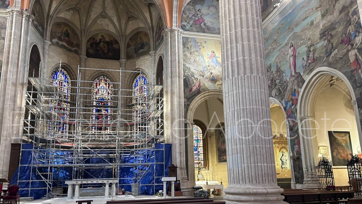 Según confirmaban fuentes oficiales a El Digital de Albacete el motivo por el que se ha comenzado a instalar esta plataforma es la restauración del ábside de la Catedral. Una intervención que llega tras la reciente restauración de las grisallas de la sacristía que pueden visitarse de lunes a viernes de 11:30 a 12:30 horas y de 18:00 a 19:00, suspendiéndose las visitas durante las celebraciones litúrgicas.