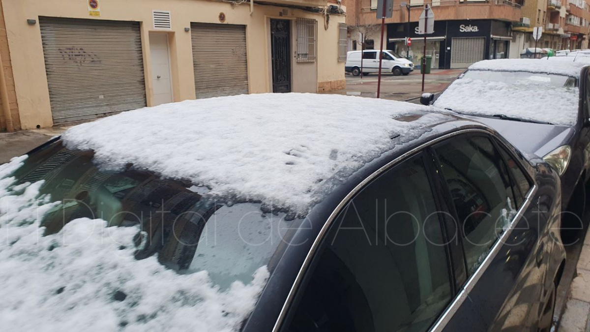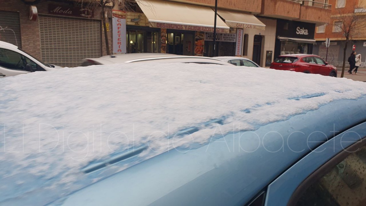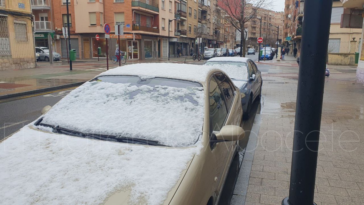 La ciudad de Albacete ha amanecido este martes con una inesperada estampa invernal después de que, durante la pasada madrugada, se registrara una ligera nevada que ha cubierto de blanco coches, tejados y zonas ajardinadas.