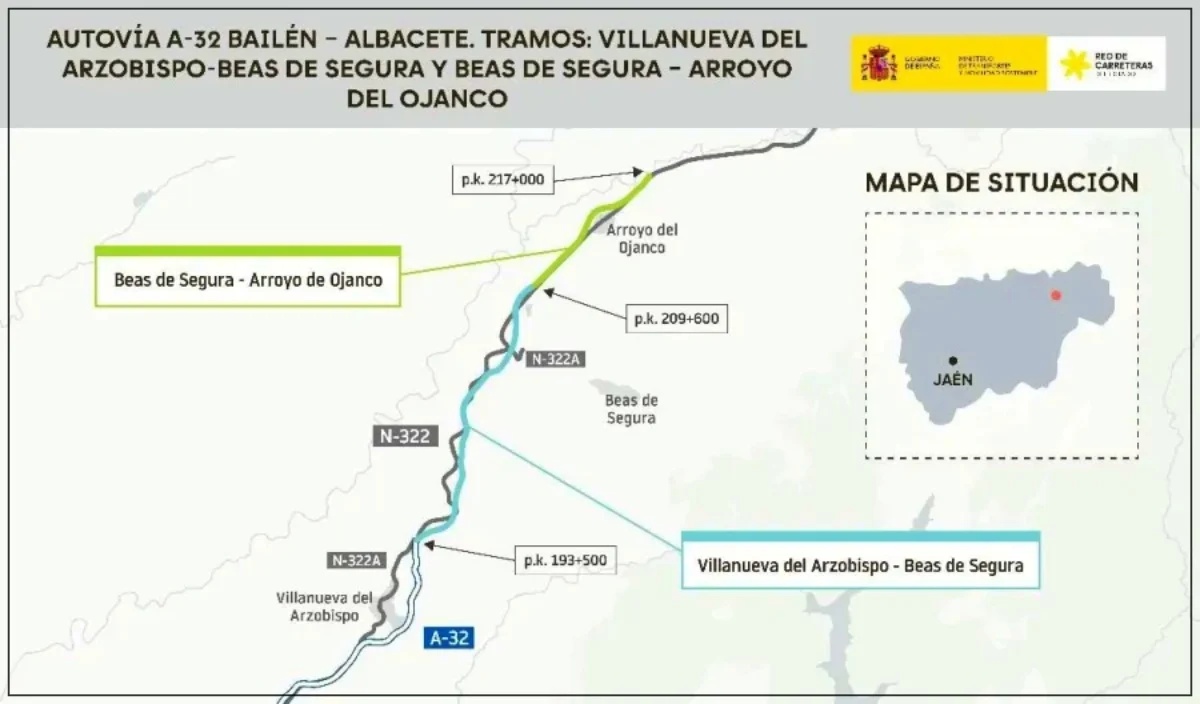 Uno de estos tramos, el comprendido entre Villanueva del Arzobispo y Beas de Segura, cuenta por sí solo con un presupuesto cercano a los 198 millones de euros y forma parte del avance progresivo del corredor hacia el norte, acercando la continuidad de la autovía hasta Castilla-La Mancha.