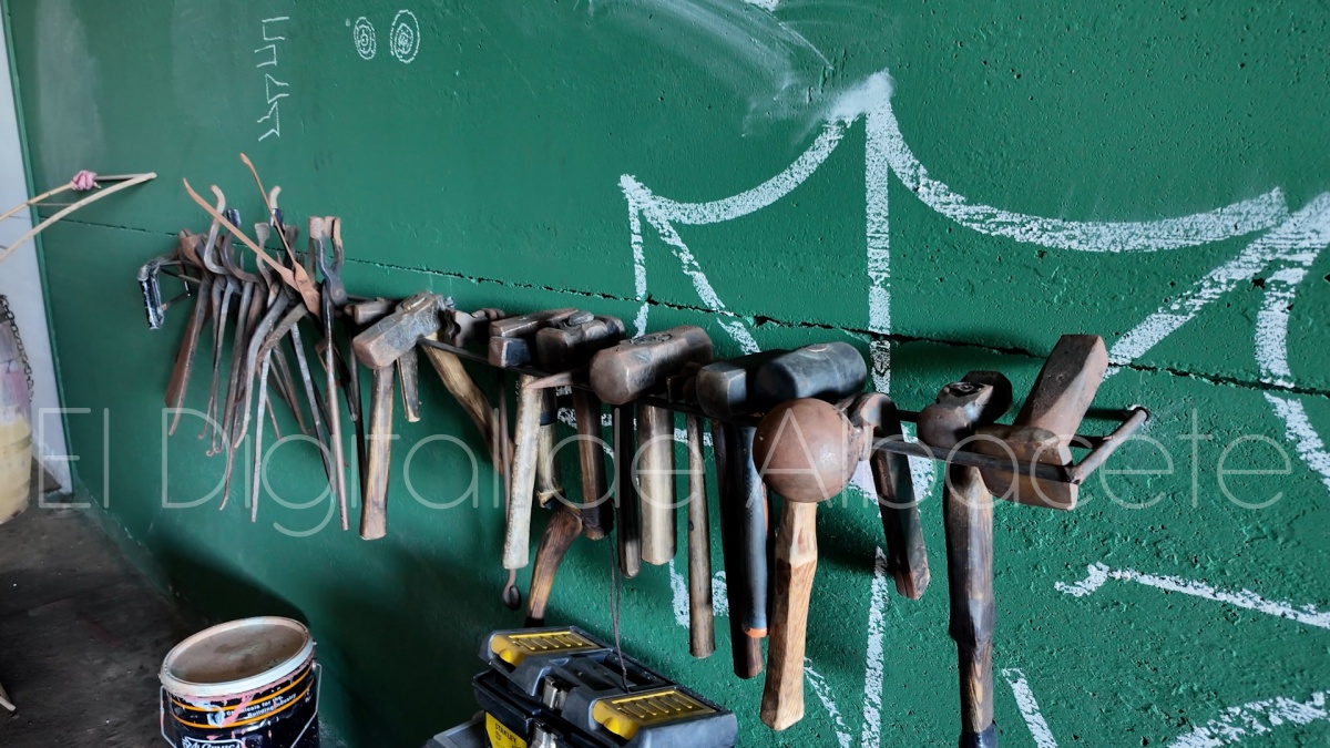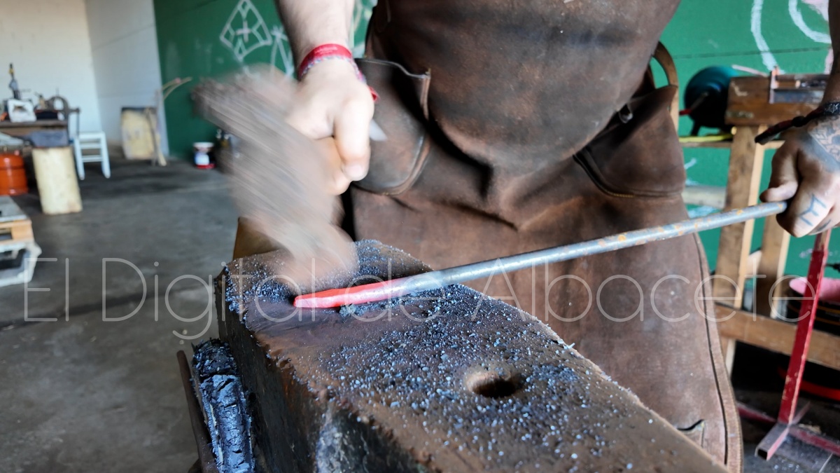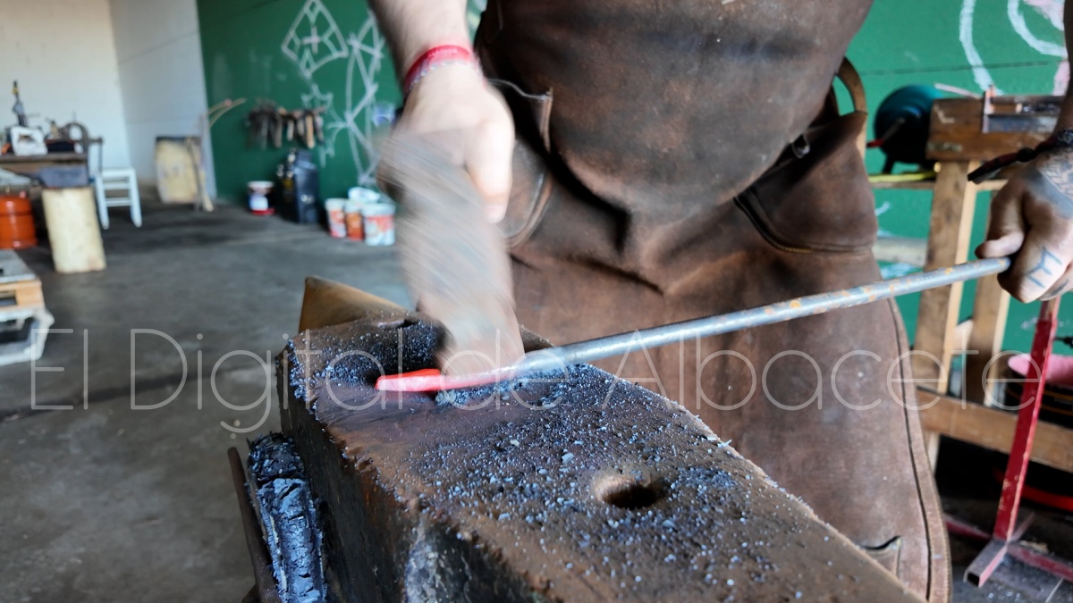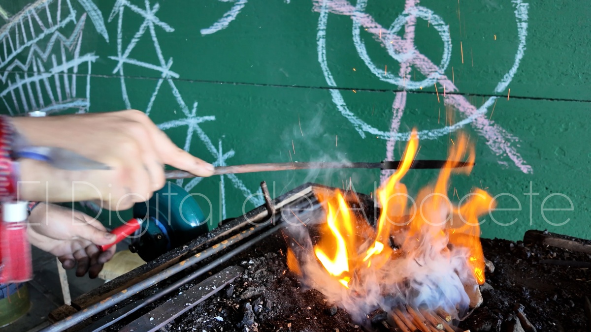 Cuatro años después, al terminar sus estudios, decidió montar una fragua en Casas Ibáñez, el pueblo de sus abuelos. “Desde que nací veníamos al pueblo cada fin de semana, y también en vacaciones y eventos festivos, por lo que siempre he relacionado Casas Ibáñez con momentos bonitos y felices de mi vida. Por eso, cuando de pequeño me preguntaba alguien de dónde era, yo me sentía del lugar donde me sentía libre, donde no me preocupaba por nada, y donde podía salir a la calle las horas que yo quisiera a jugar y a estar con mis amigos. Ese lugar era Casas Ibáñez. Siempre me ha gustado la idea de recuperar la tradición de la forja, los conocimientos que nuestros ancestros nos han ido transmitiendo a lo largo de los años, y de paso poder difundir las técnicas tradicionales, así que me vine al pueblo convencido de que era una gran oportunidad de poder hacerlo, y también de emprender un proyecto desde cero, y así poder ver que me deparaba el futuro”, señala.
