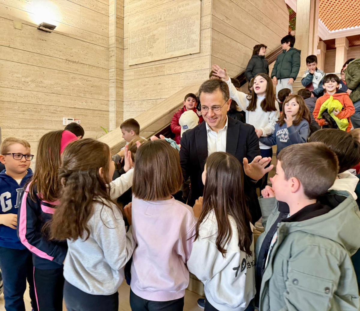 Medio centenar de alumnos y alumnas de 3º y 4º de primaria del Colegio Mª Llanos Martínez han estado en el Ayuntamiento antes de ir a la Catedral, al Parque Abelardo Sánchez, la biblioteca de Simón Abril y el Parque de bomberos. El alcalde ha agradecido la colaboración de los profesores, y ha animado a los chavales a “disfrutar de su ciudad y a conocerla mejor, porque conocer algo es siempre el primer paso para amarlo y valorarlo, y todos debemos amar y valorar nuestra ciudad, que es Albacete. Espero que esto os haga sentiros aún más orgullosos de nuestra ciudad, una ciudad que nuestros mayores nos legaron y que nosotros debemos hacer aún mejor”.
