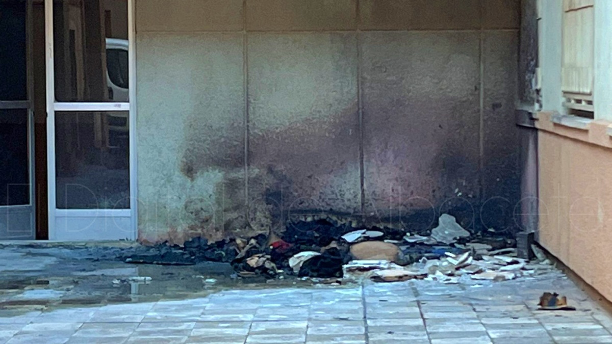 Los hechos se localizaron en el número 21 de la calle Industria, en un recoveco del Centro de Salud situado frente a la Comandancia de la Guardia Civil de Albacete. A primera hora de este lunes, la escena presentaba claros vestigios del incendio: enseres calcinados, restos esparcidos por el suelo y una pared visiblemente ennegrecida por el humo, una imagen que acrecentó la alarma entre quienes transitan habitualmente por este punto del barrio.