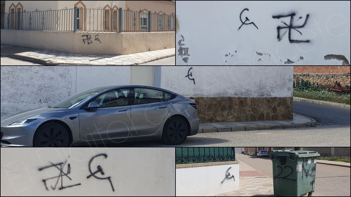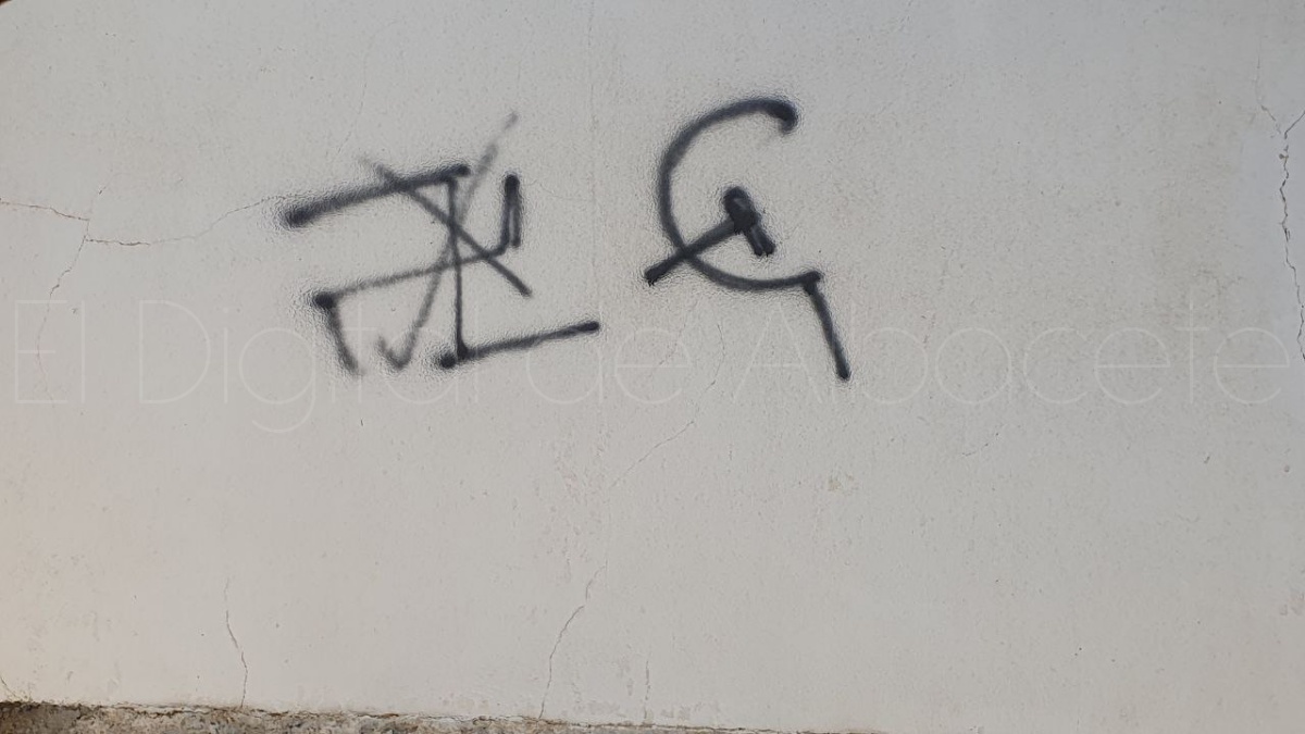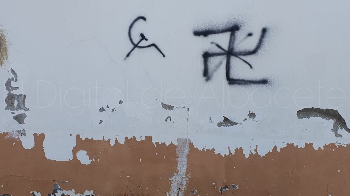 Y es que, Mahora (Albacete) ha amanecido en las últimas jornadas con diversas pintadas vandálicas repartidas por distintos puntos del municipio, generando preocupación entre vecinos y autoridades locales. Los grafitis, realizados con spray negro, muestran símbolos asociados al comunismo, así como representaciones de esvásticas tachadas, en una combinación que ha suscitado interpretaciones diversas.
