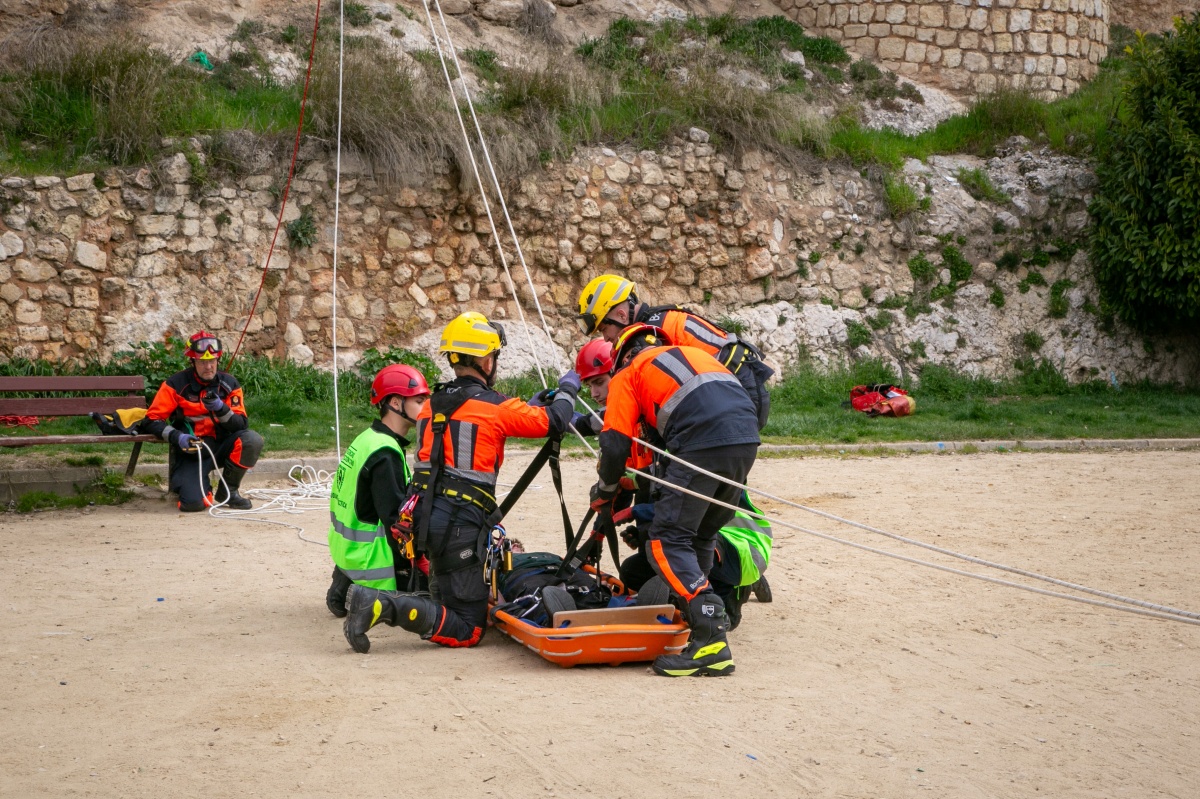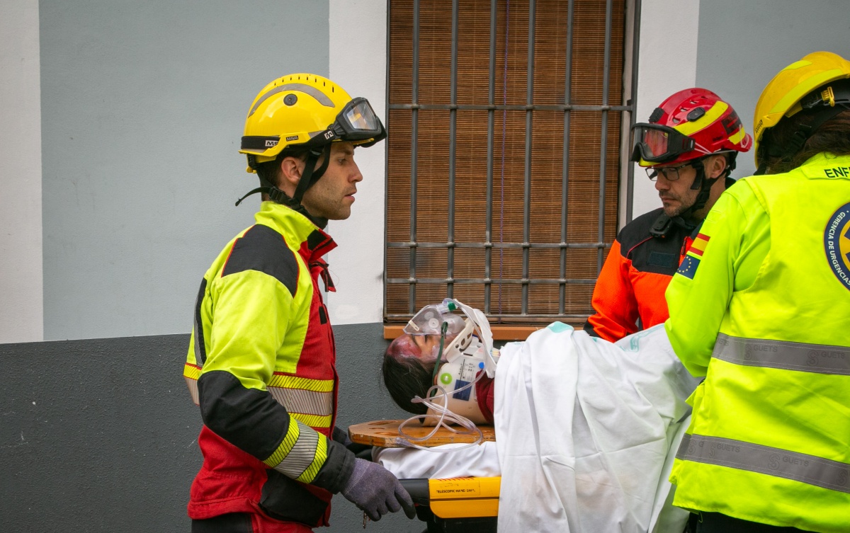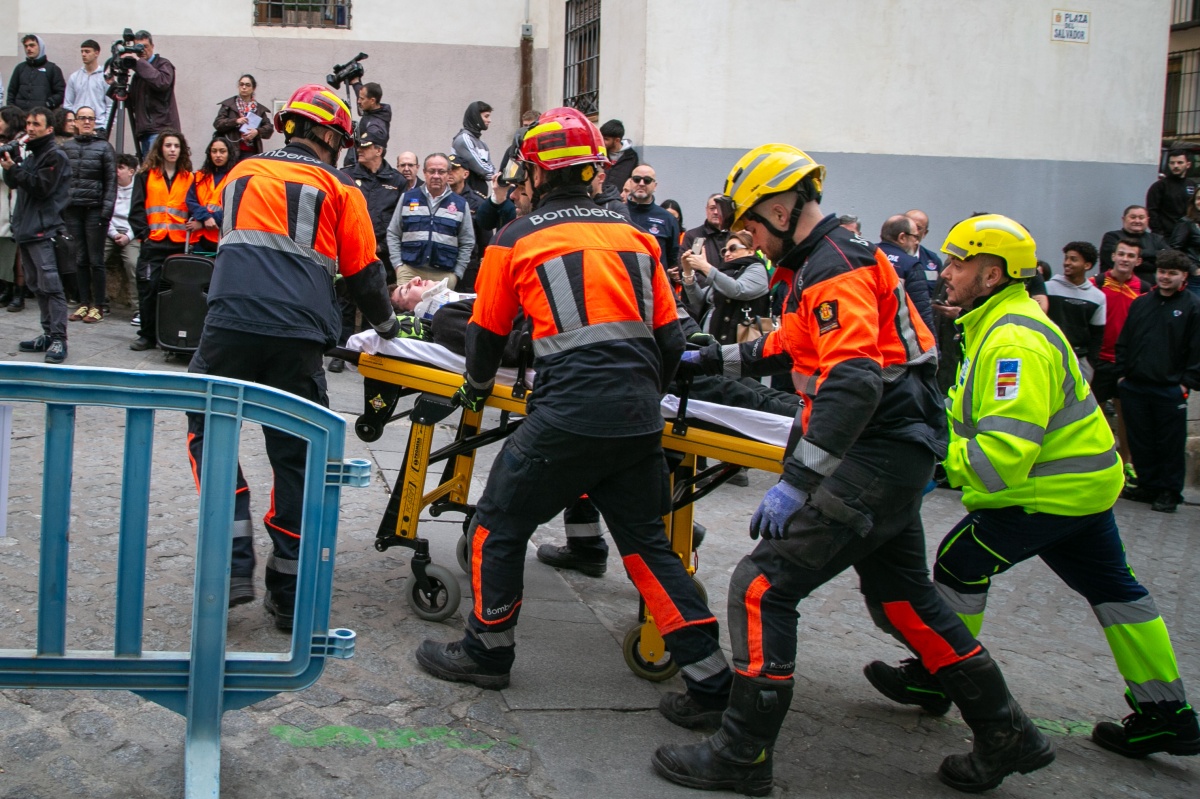 Entre las intervenciones más destacadas, se ha recreado el derrumbe de un edificio en la plaza del Salvador durante la espera de una procesión, con personas atrapadas y heridos por avalanchas. También se ha evacuado una residencia de mayores afectada por el agua, con rescates en plantas superiores.