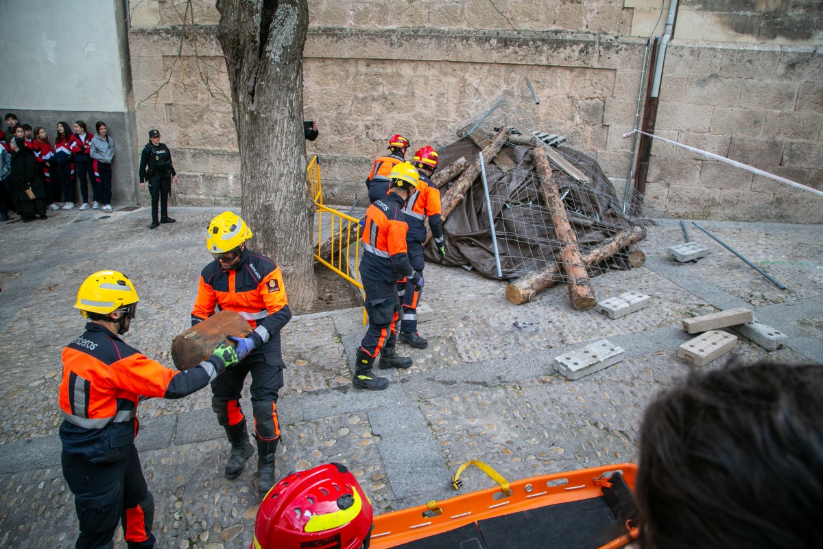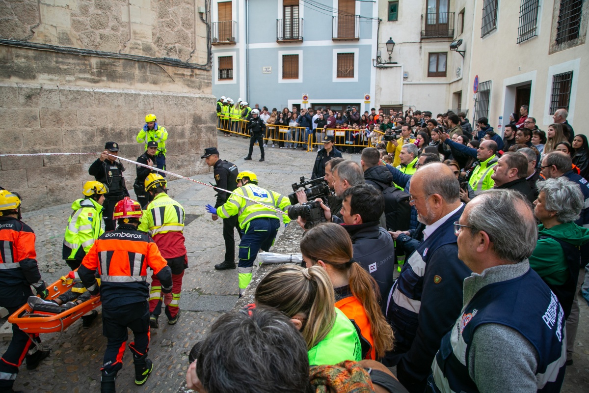 En el operativo han participado cerca de 200 efectivos, entre ellos Policía Nacional, Policía Local, Bomberos, INFOCAM, SESCAM, Protección Civil, Cruz Roja, técnicos especializados y estudiantes del ciclo de Emergencias del IES Fernando Zóbel, además de representantes institucionales y de la Semana Santa conquense.