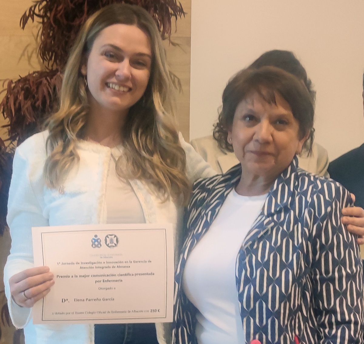El palmarés de la jornada se completó con el segundo premio para el trabajo sobre el control del dolor en pacientes quirúrgicos, presentado por María José Caballero García, y el premio al mejor póster para Eva Malagón Martínez, ambos vinculados a la mejora de los cuidados sanitarios.