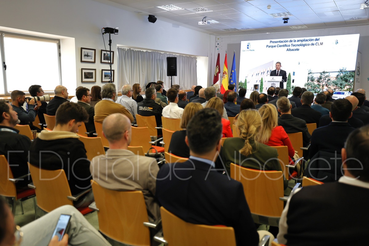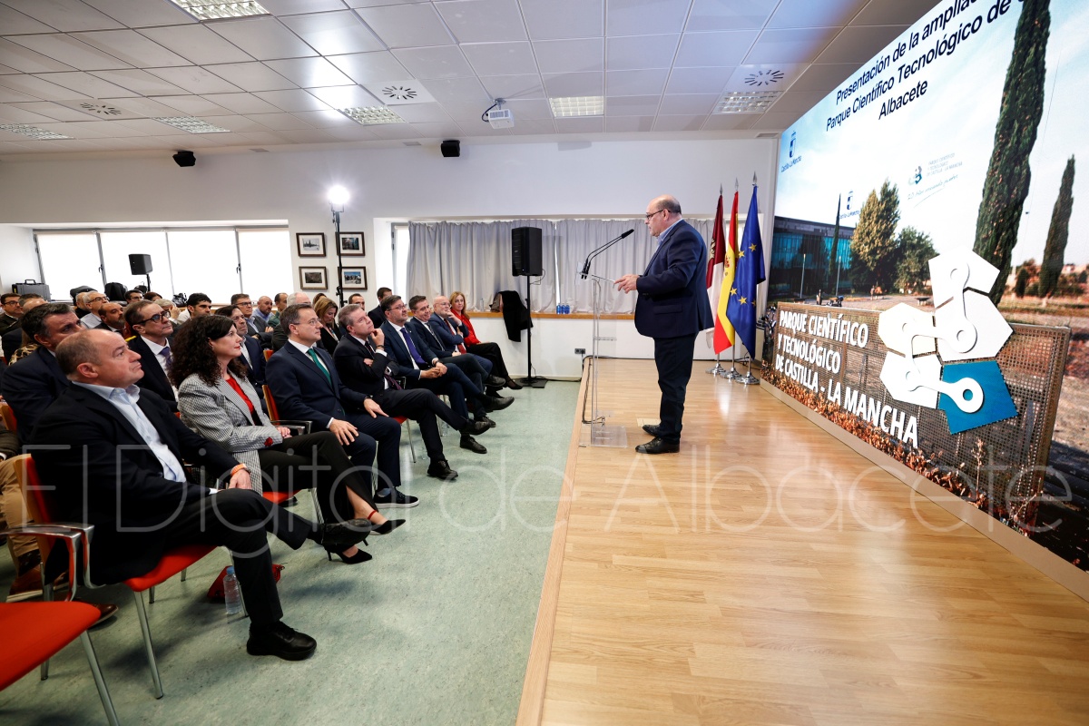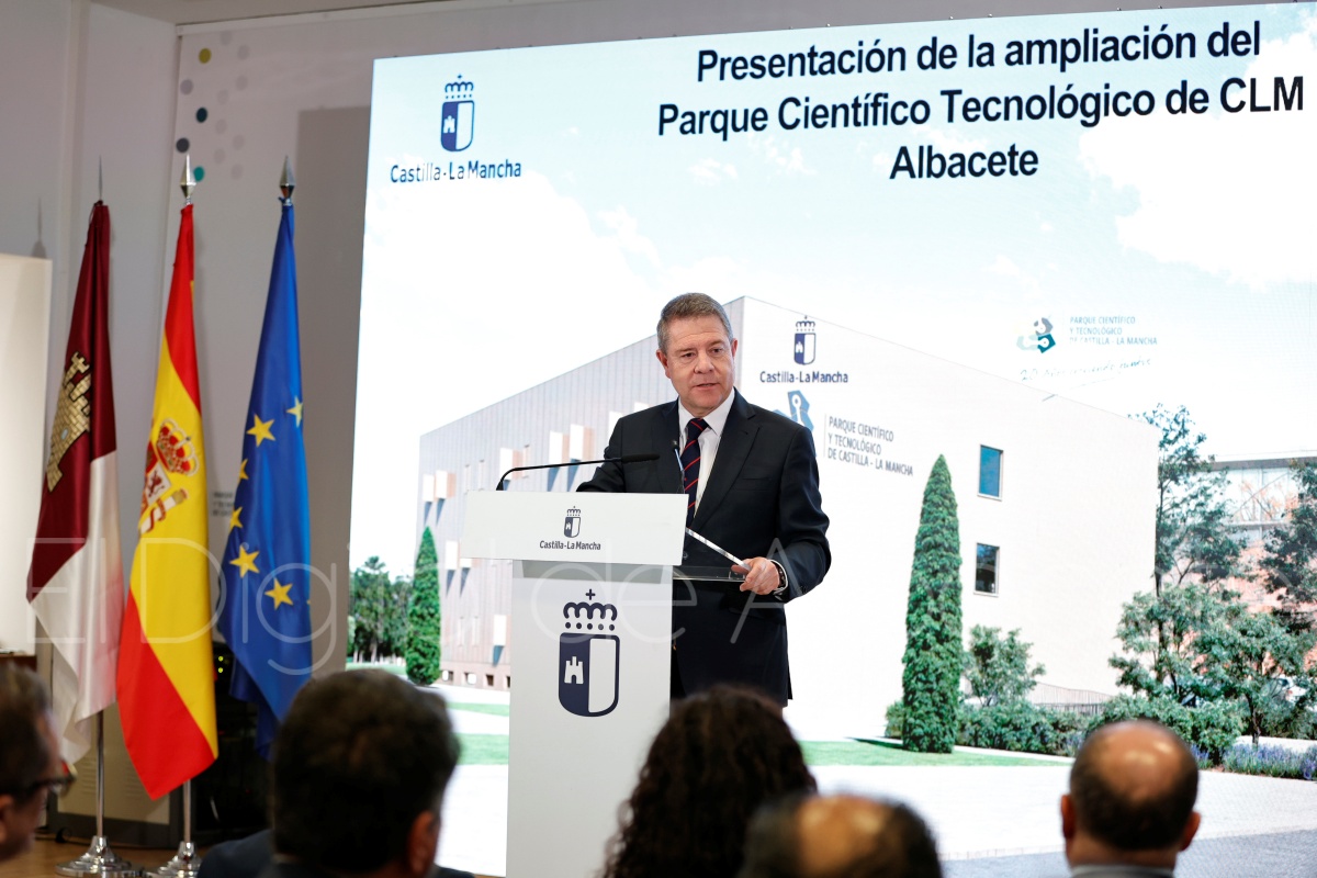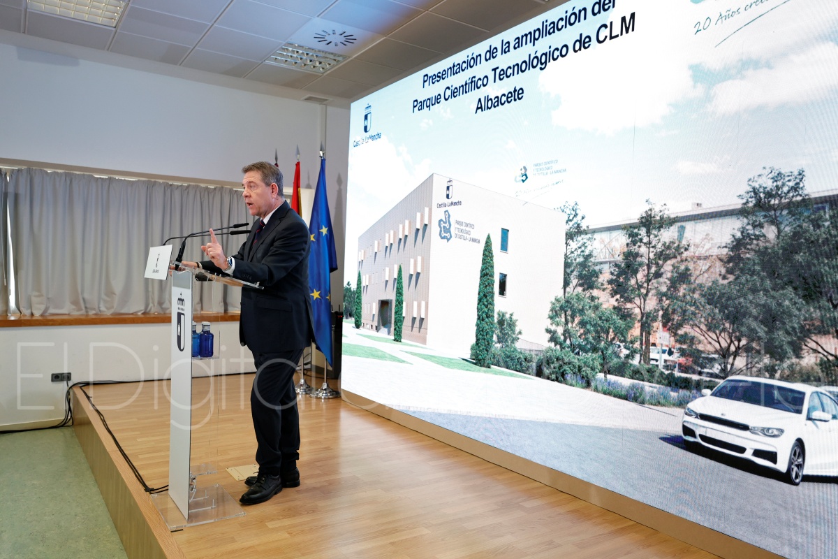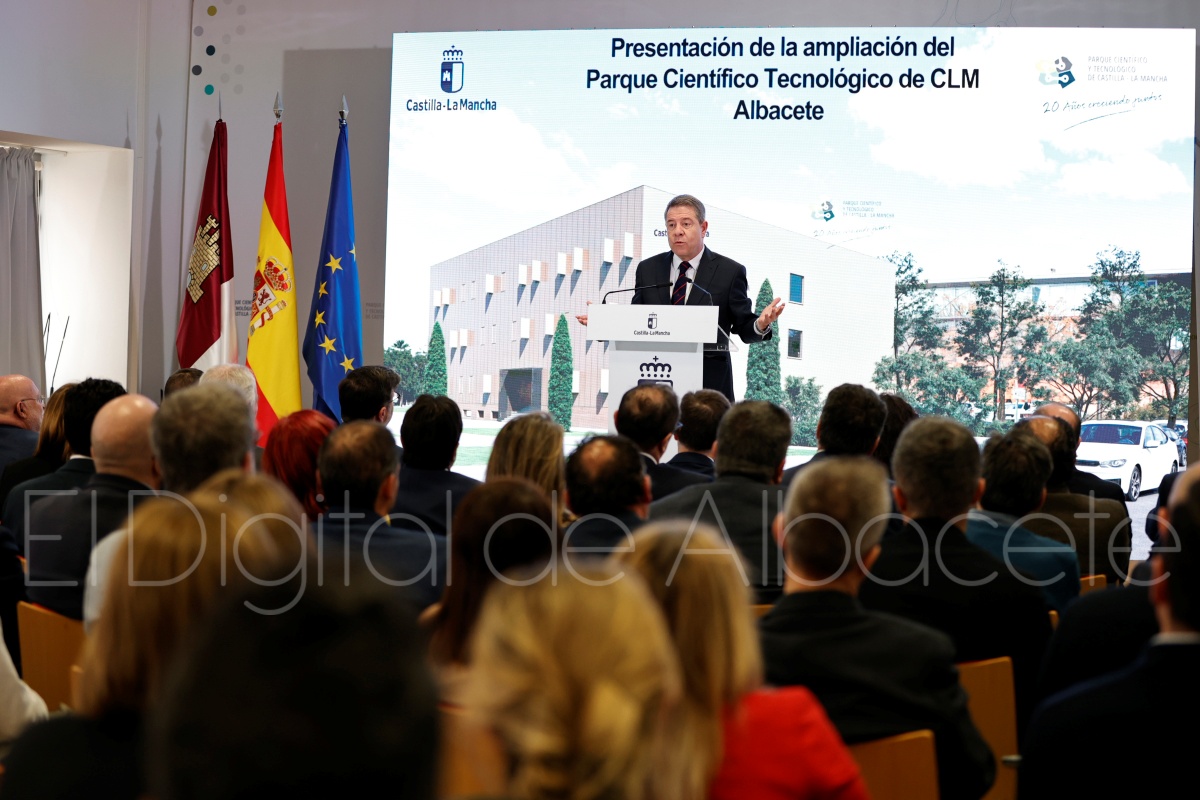 El presidente de Castilla-La Mancha, Emiliano García-Page, presentaba este jueves, 19 de marzo, en Albacete el proyecto de ampliación del Parque Científico y Tecnológico de Castilla-La Mancha (PCTCLM), una actuación que supondrá un incremento del 60% en la capacidad actual del recinto gracias a una inversión cercana a los diez millones de euros.