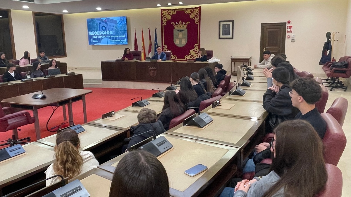 El concejal de Educación Pascual Molina ha recibido en el Salón de Plenos del Ayuntamiento a un grupo de alumnos y alumnas procedentes de un centro educativo de Catanzaro (Italia), que participan en un intercambio del programa Erasmus+ en el IES Andrés de Vandelvira.