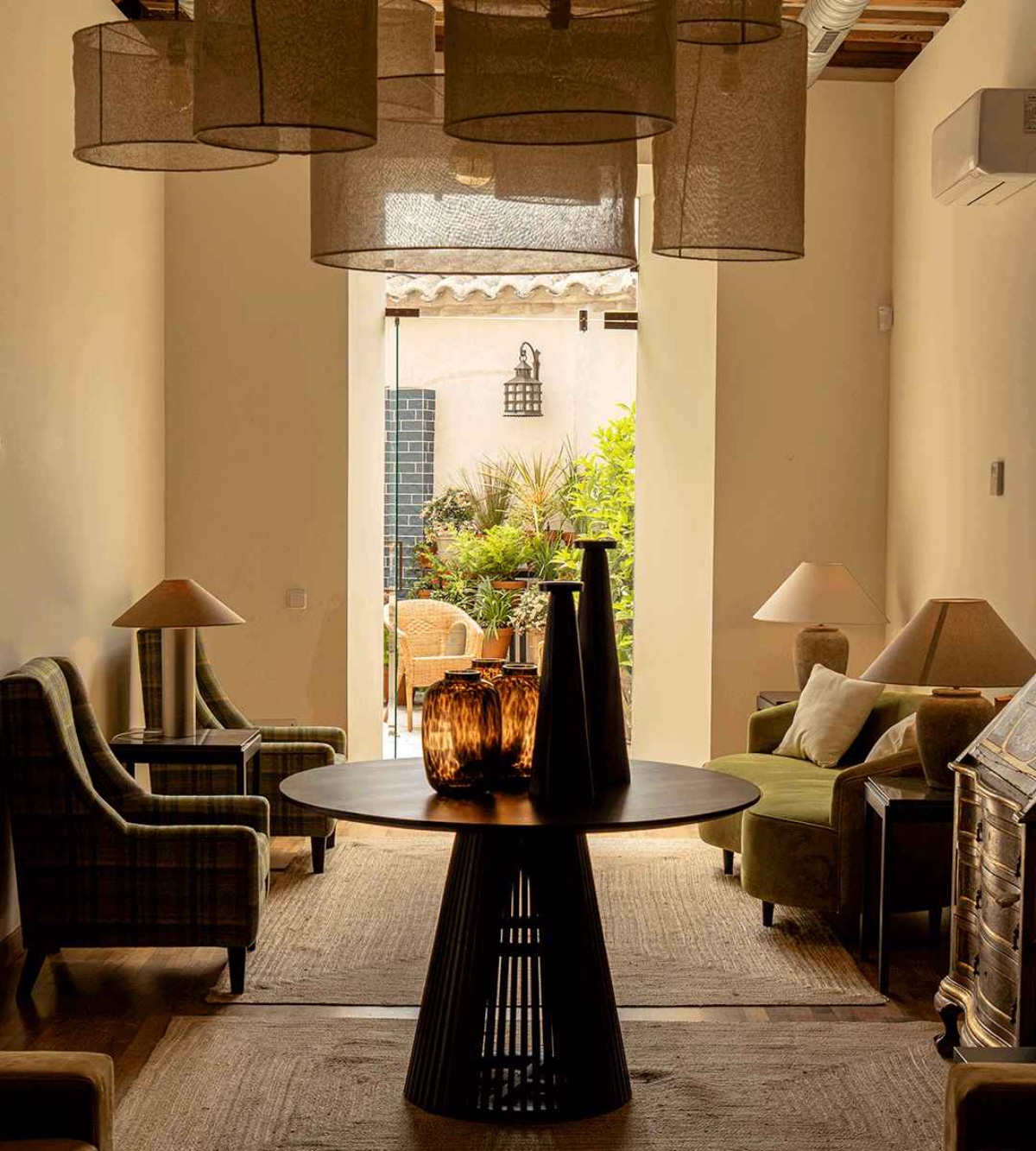 El comedor interior abierto al patio central y con ventanales al jardín es una de las estancias más funcionales del hotel. Un espacio ideal para desayunos, brunch, almuerzos o cenas, pero también perfecto para reuniones, pequeñas exposiciones o encuentros. El amplio patio trasero, presidido por una higuera centenaria, la imponente fachada de grandes balcones y sobrias ornamentaciones con yeserías en jambas y aleros, el elegante hall de bienvenida con policromías en paredes y techos de claras reminiscencias art déco, y el patio interior coronado por una espectacular claraboya de hierro y cristal convierten este edificio en un espacio que invita a descubrir cada uno de sus rincones. Una casa señorial que ha sido, es y seguirá siendo una auténtica seña de identidad para la localidad, testigo vivo de su historia y su carácter.