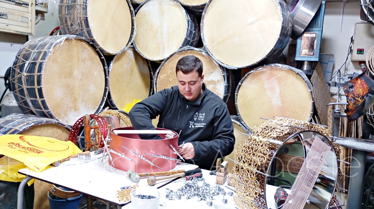 Detrás de cada tambor hay años de experiencia y un conocimiento transmitido de generación en generación. Tambores Román surgió como una iniciativa familiar con el objetivo de preservar la esencia del tambor tradicional, adaptándolo a las nuevas demandas sin perder su autenticidad. Raúl Román, 4ª generación de ‘Tambores Román’, nos cuenta que “todo comenzó en 1952, y desde entonces han pasado ya 72 años, y 4 generaciones. Comenzó el tío de mi abuelo con un pequeño taller en el que cada pieza era elaborada manualmente. Luego siguió mi abuelo con el negocio, después mi padre, y ahora sigo aprendiendo a su lado, hasta que me quede yo al frente. Lo bueno es que, con el paso del tiempo, aunque la empresa haya evolucionado, seguimos manteniendo ese carácter artesanal que define nuestro trabajo. Toda la vida me he criado entre tambores, y es algo que he vivido desde que nací, así que se podría decir que lo llevo en la sangre”.