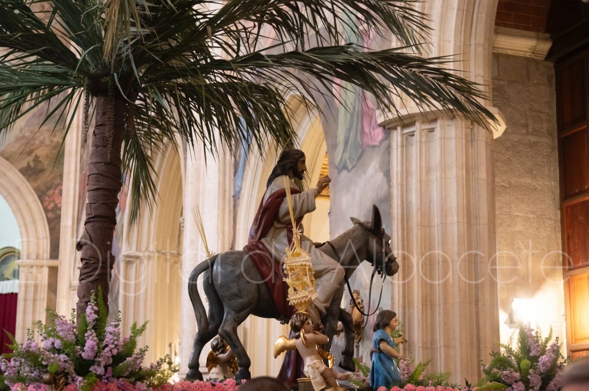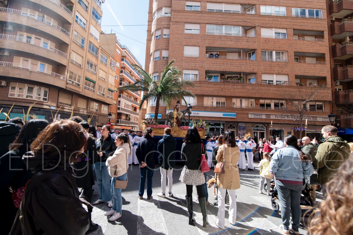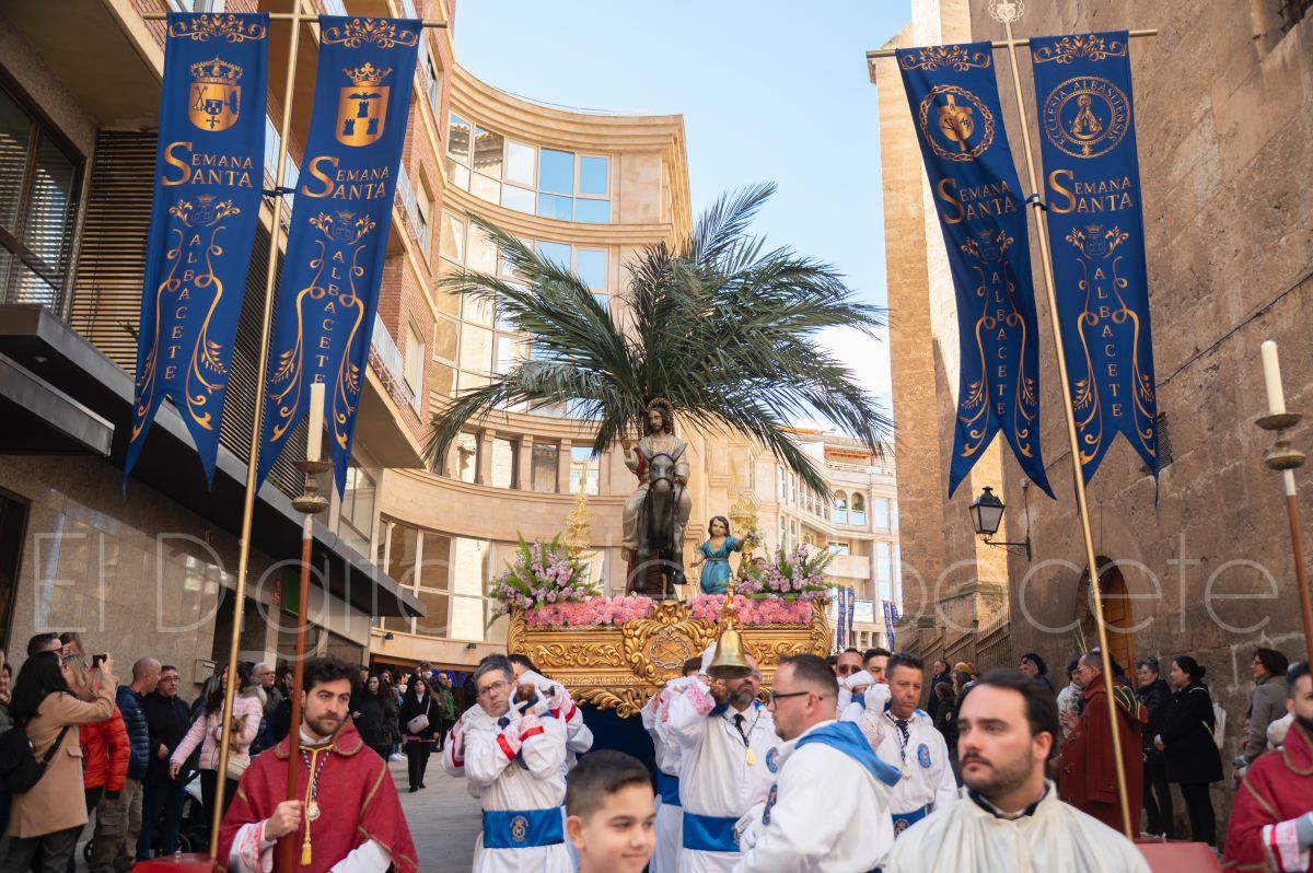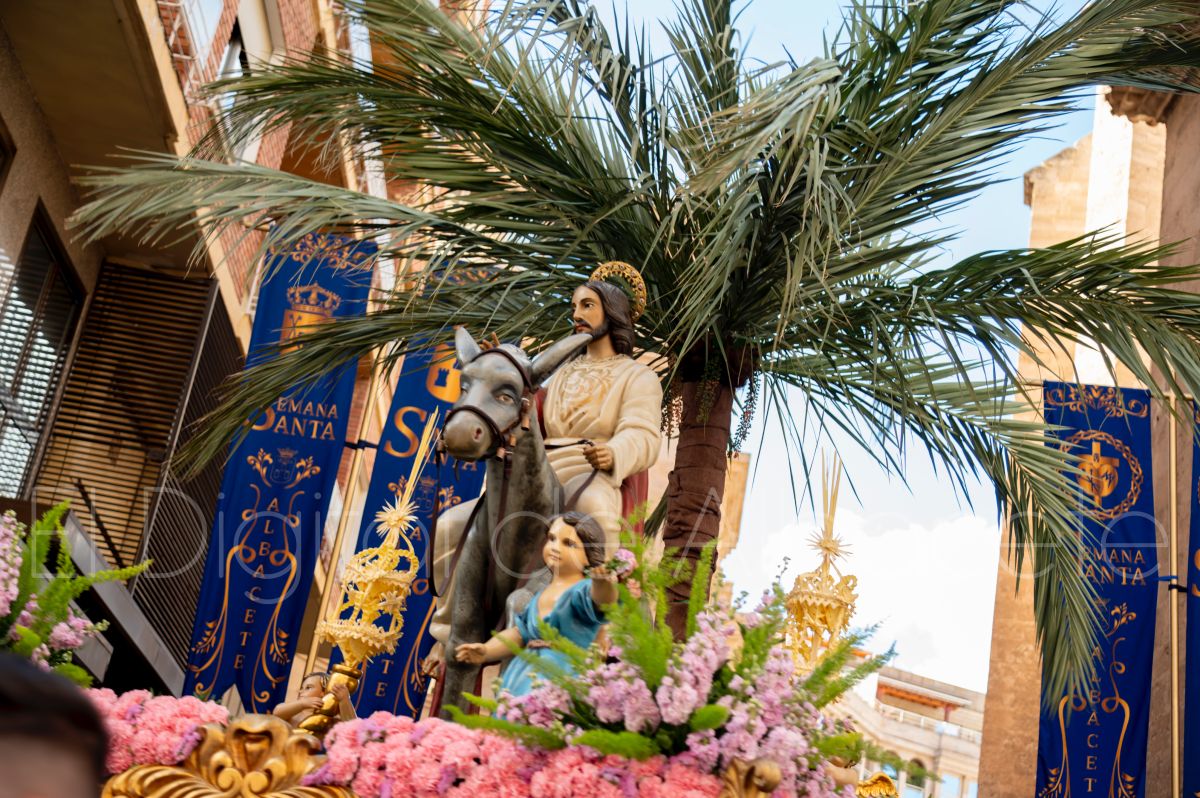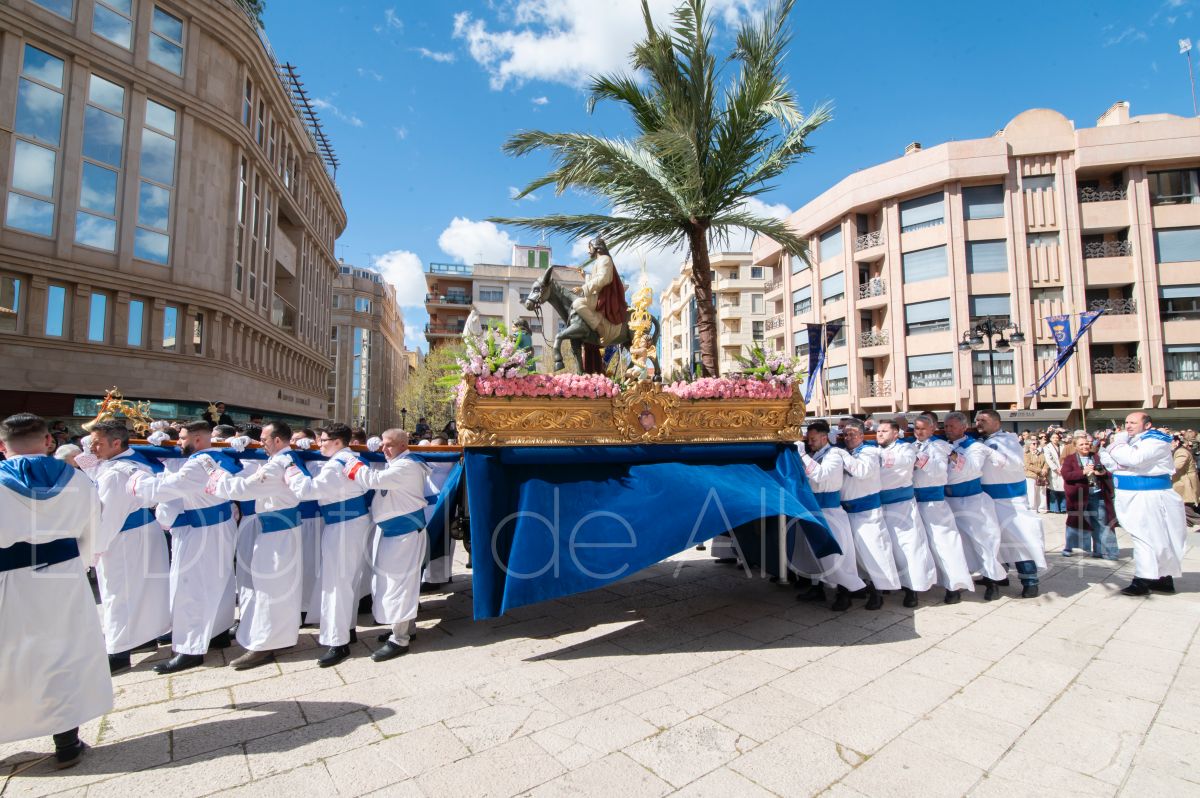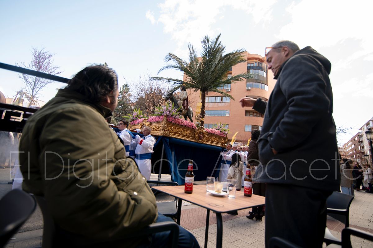 La Entrada Triunfal de Jesús en Jerusalén salía desde la Catedral de Albacete y recorría las calles Martínez Villena, Rosario, Caba, Blasco Ibáñez, San Juan de Dios, San Luis, Hermanos Jiménez, Arcipreste Gálvez hasta la parroquia de Fátima.