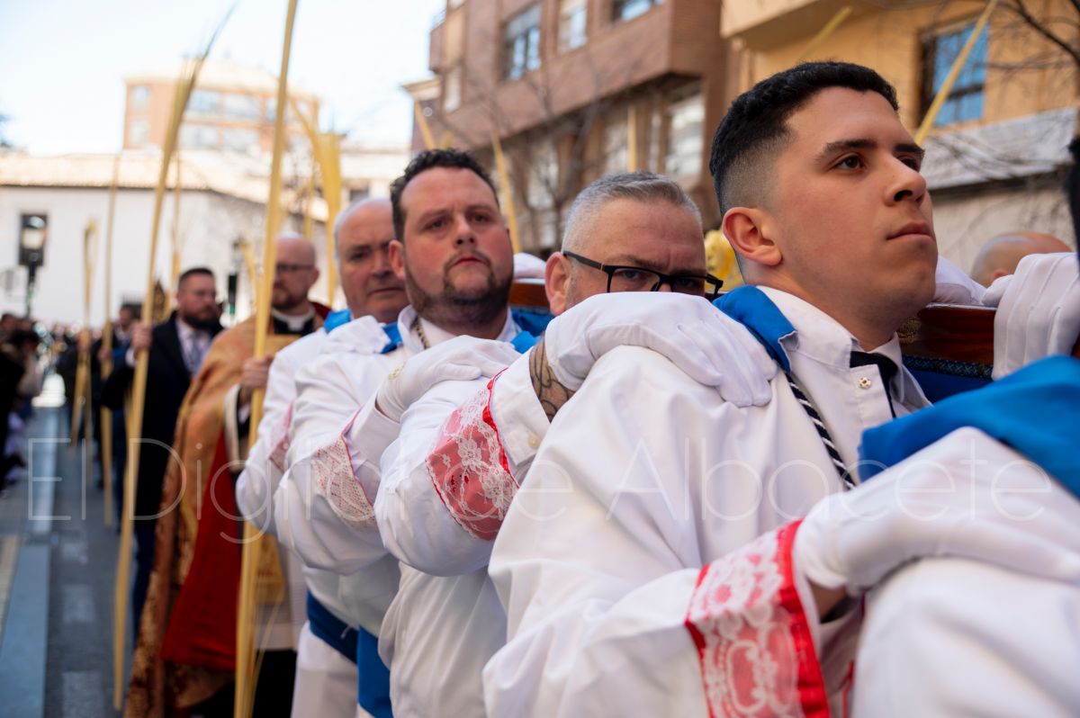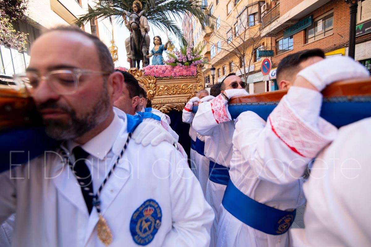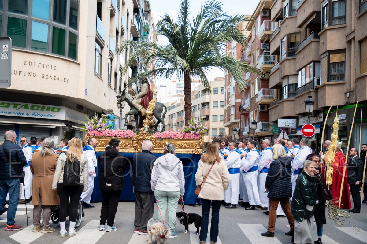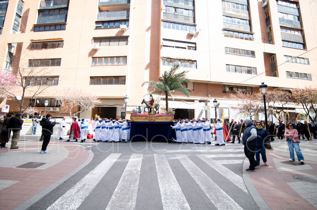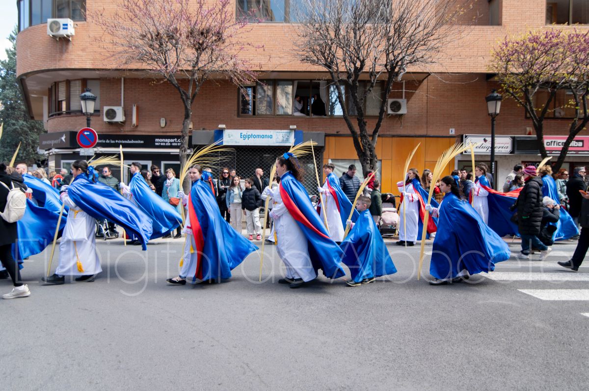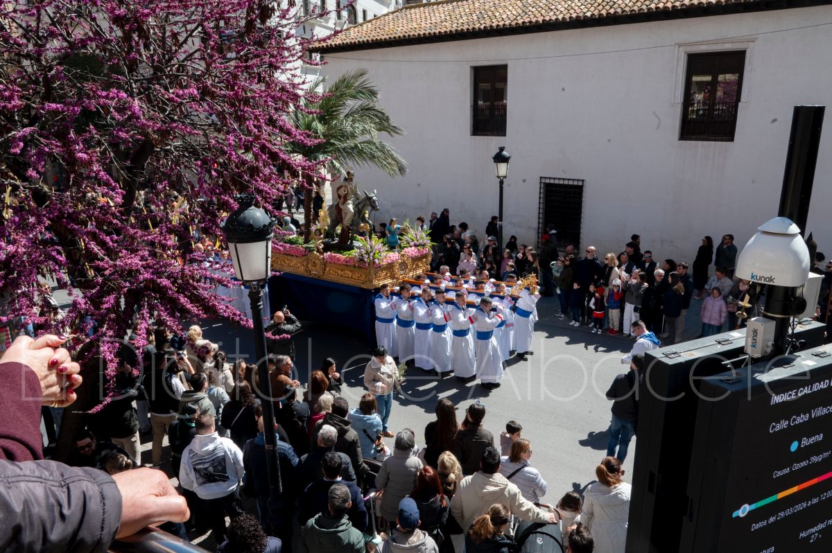 La Entrada Triunfal de Jesús en Jerusalén salía desde la Catedral de Albacete y recorría las calles Martínez Villena, Rosario, Caba, Blasco Ibáñez, San Juan de Dios, San Luis, Hermanos Jiménez, Arcipreste Gálvez hasta la parroquia de Fátima.