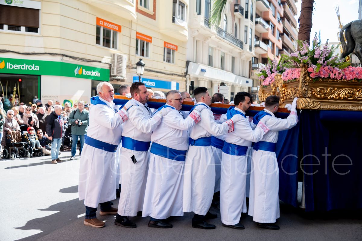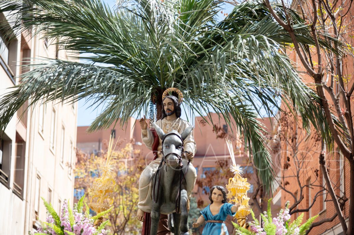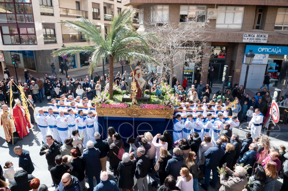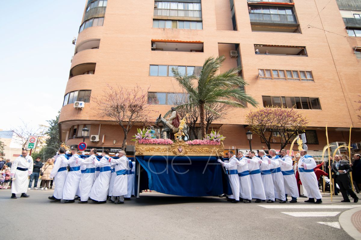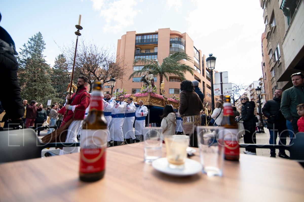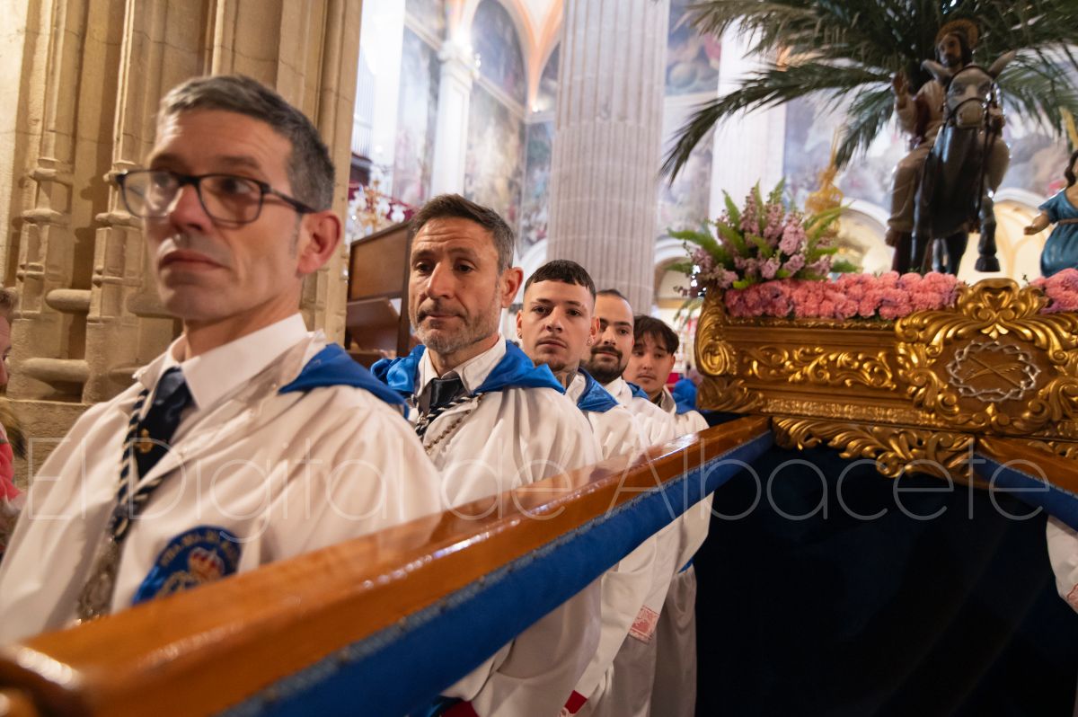 La Entrada Triunfal de Jesús en Jerusalén salía desde la Catedral de Albacete y recorría las calles Martínez Villena, Rosario, Caba, Blasco Ibáñez, San Juan de Dios, San Luis, Hermanos Jiménez, Arcipreste Gálvez hasta la parroquia de Fátima.