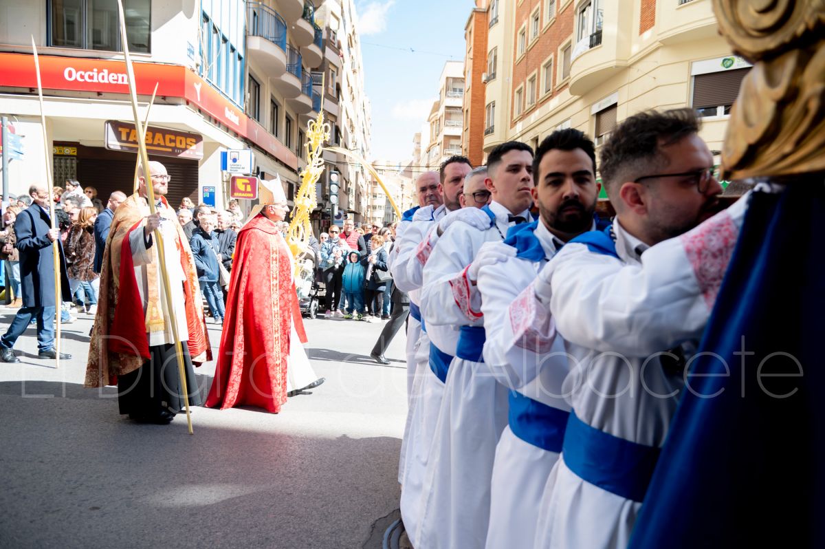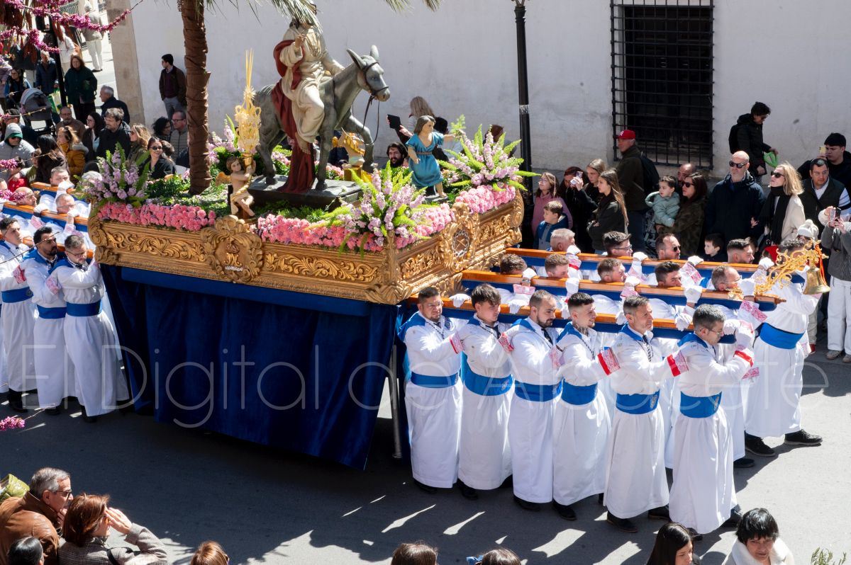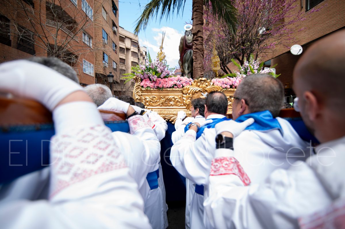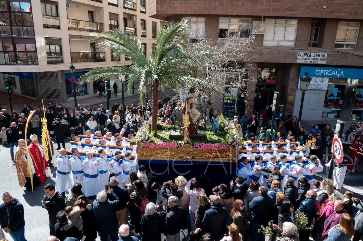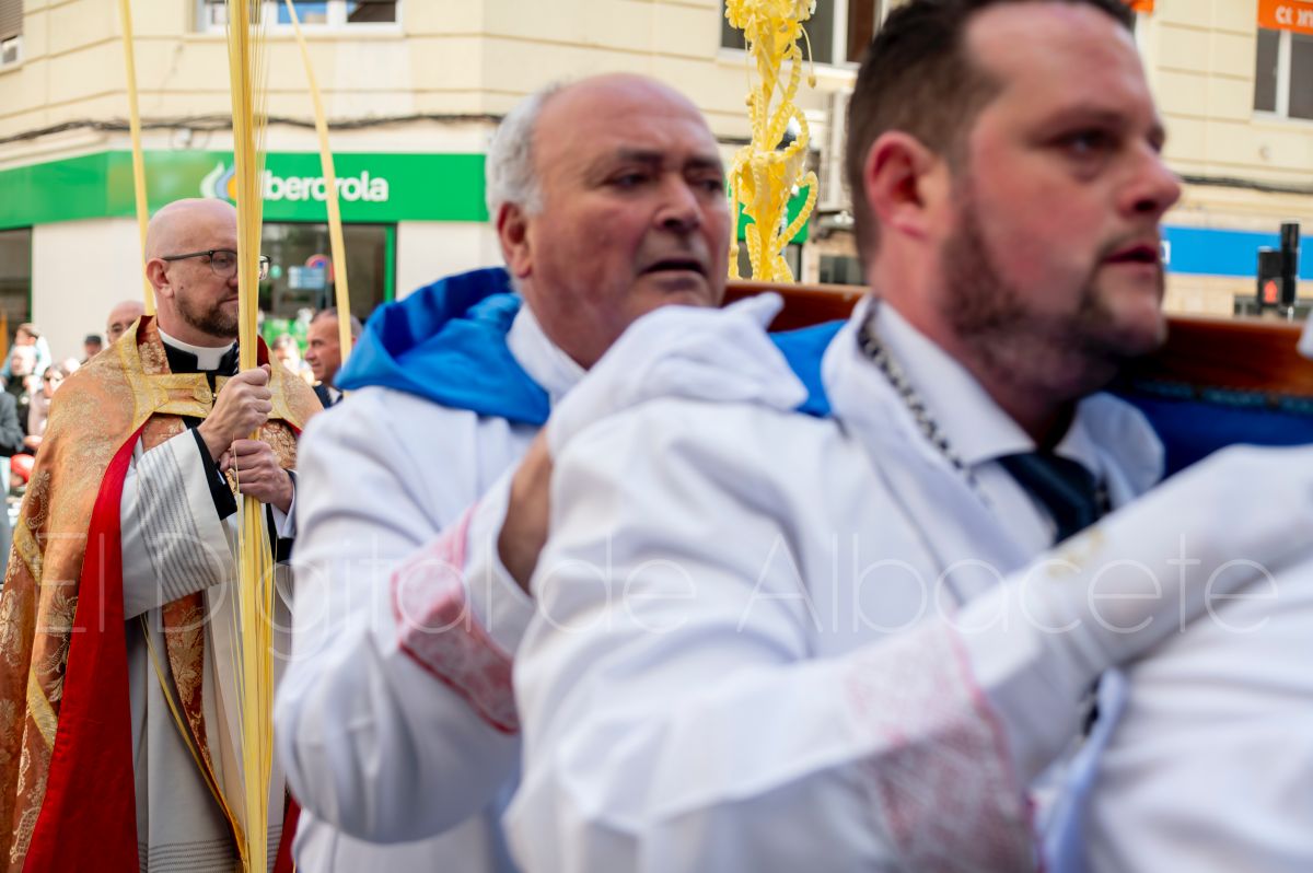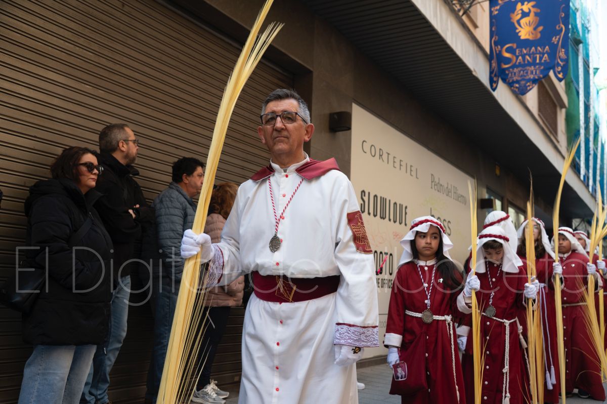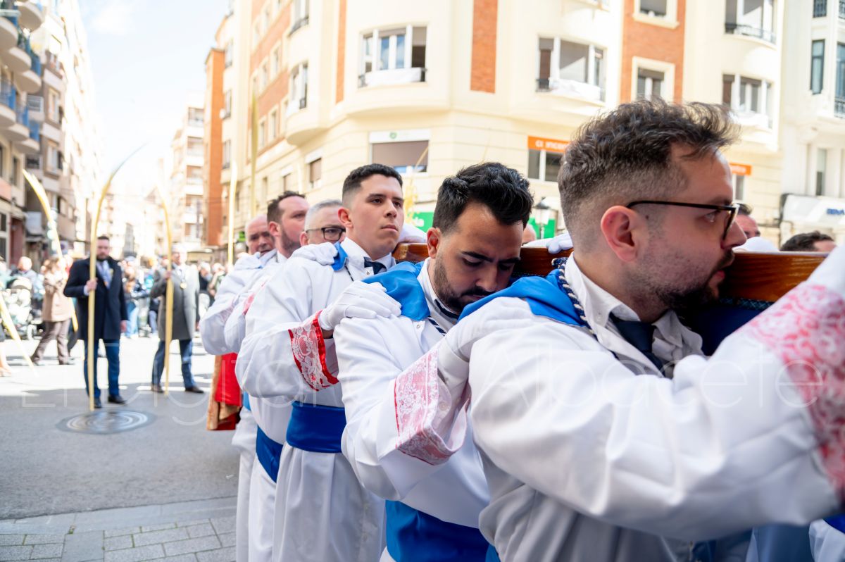 La Entrada Triunfal de Jesús en Jerusalén salía desde la Catedral de Albacete y recorría las calles Martínez Villena, Rosario, Caba, Blasco Ibáñez, San Juan de Dios, San Luis, Hermanos Jiménez, Arcipreste Gálvez hasta la parroquia de Fátima.
