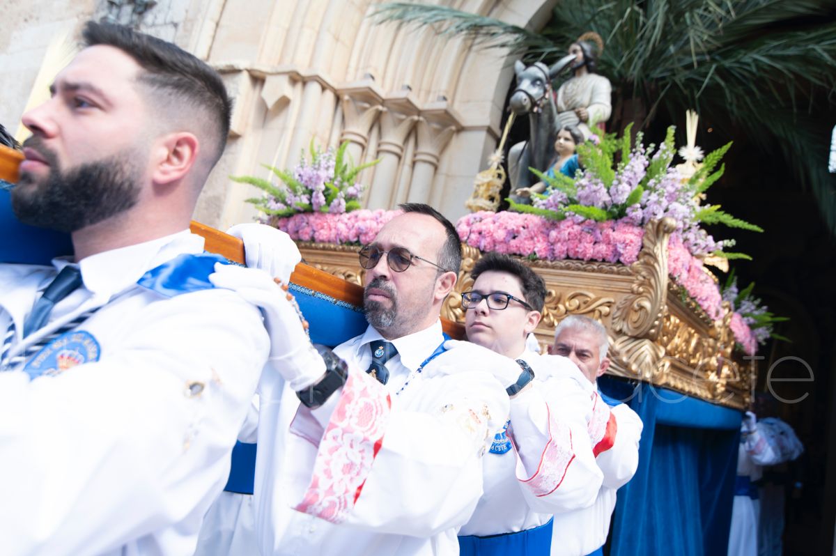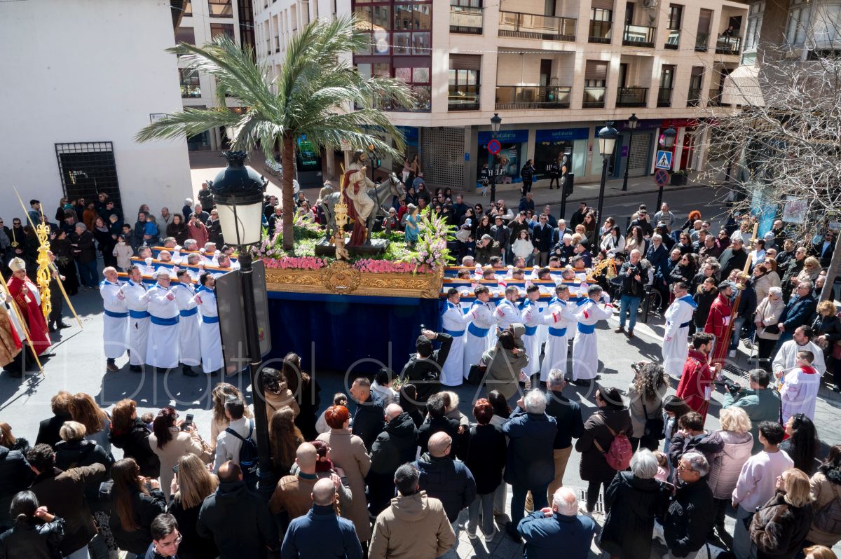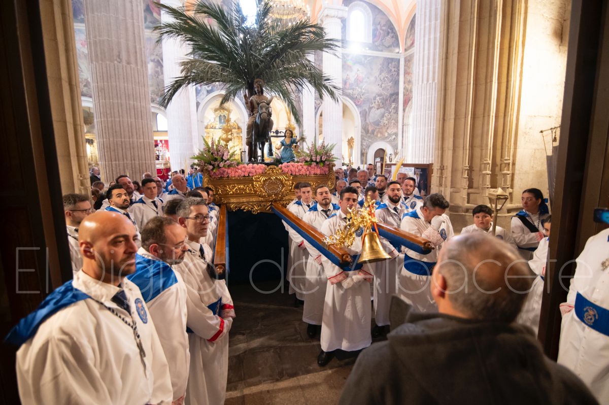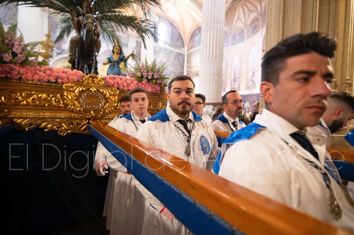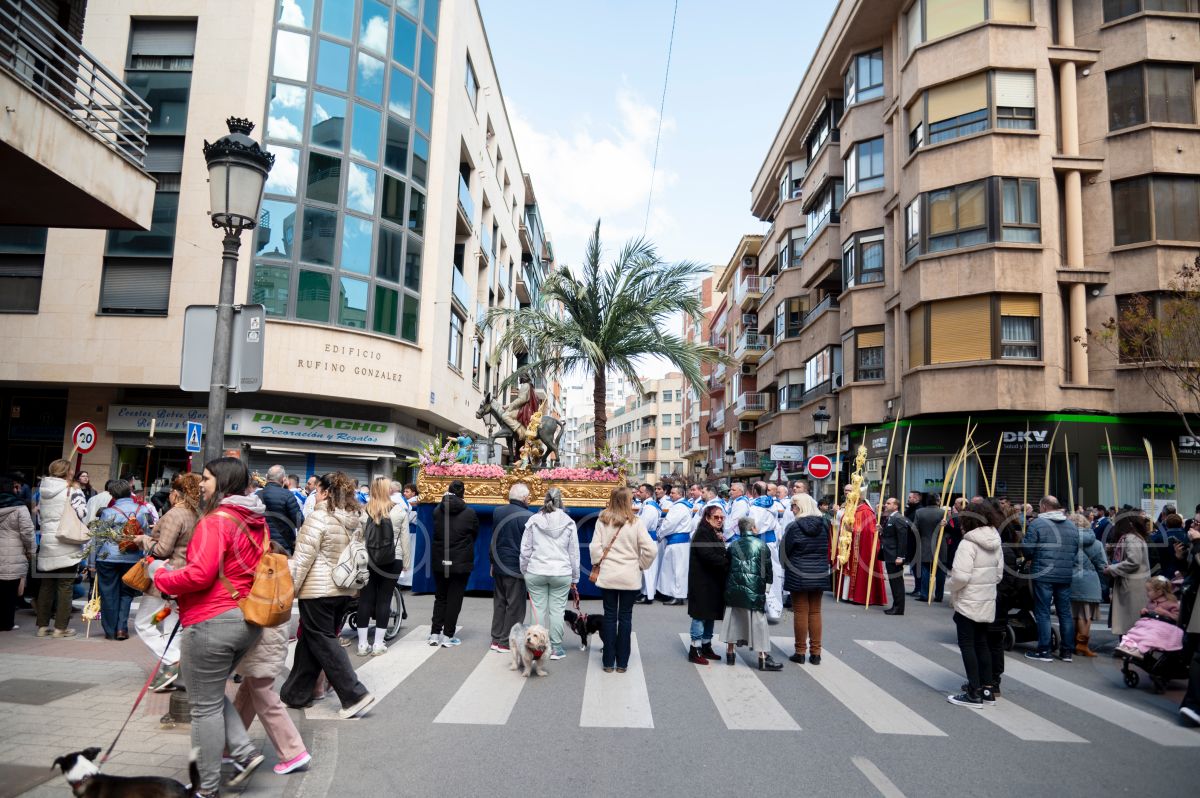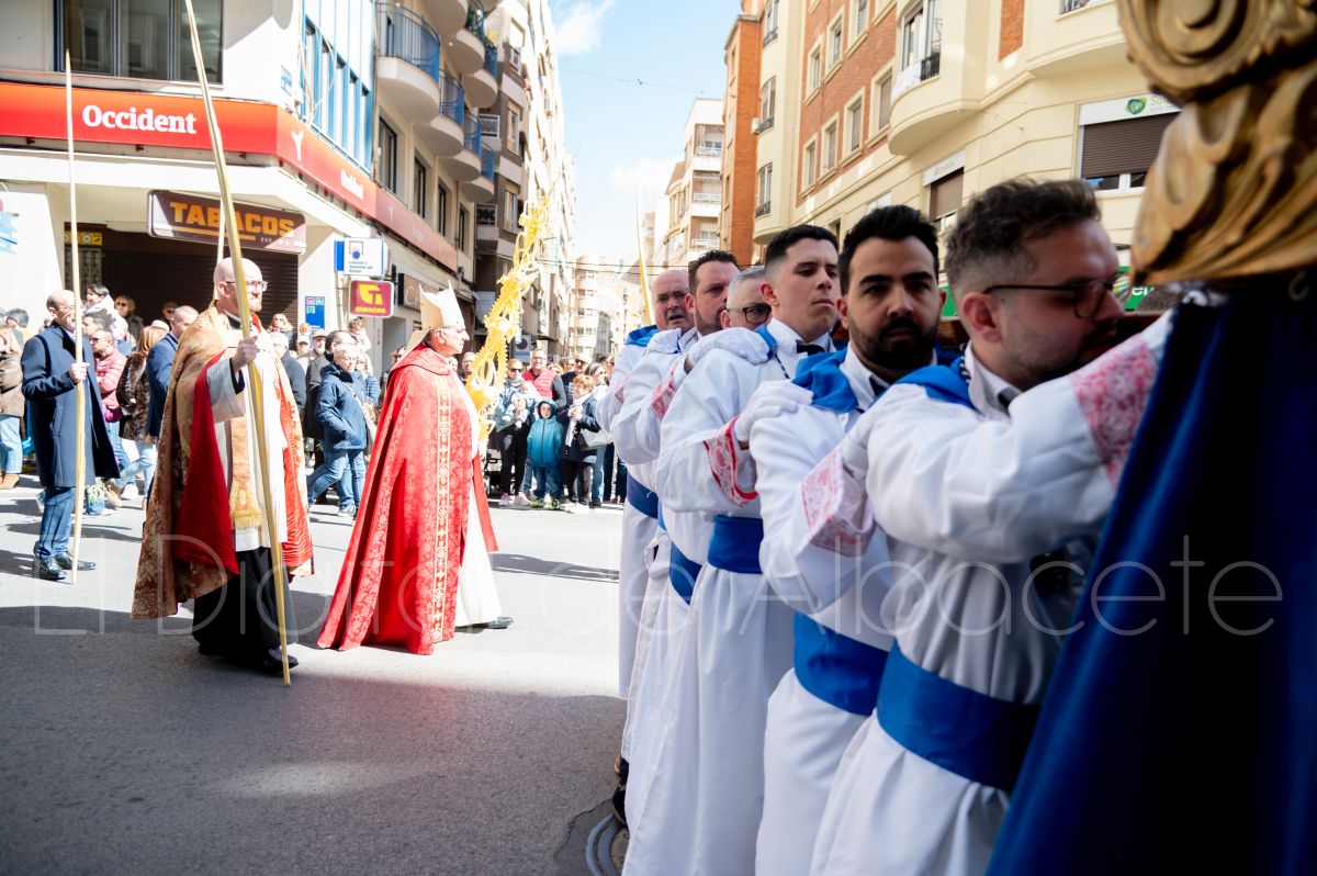 La Entrada Triunfal de Jesús en Jerusalén salía desde la Catedral de Albacete y recorría las calles Martínez Villena, Rosario, Caba, Blasco Ibáñez, San Juan de Dios, San Luis, Hermanos Jiménez, Arcipreste Gálvez hasta la parroquia de Fátima.