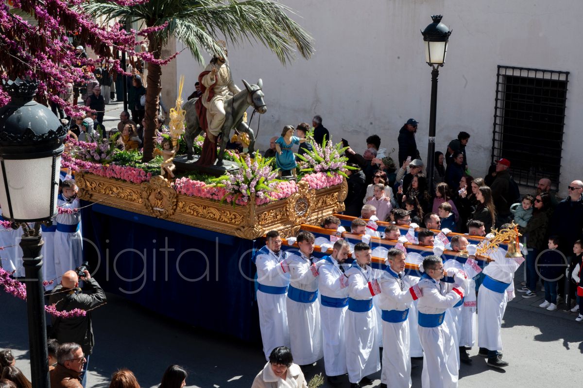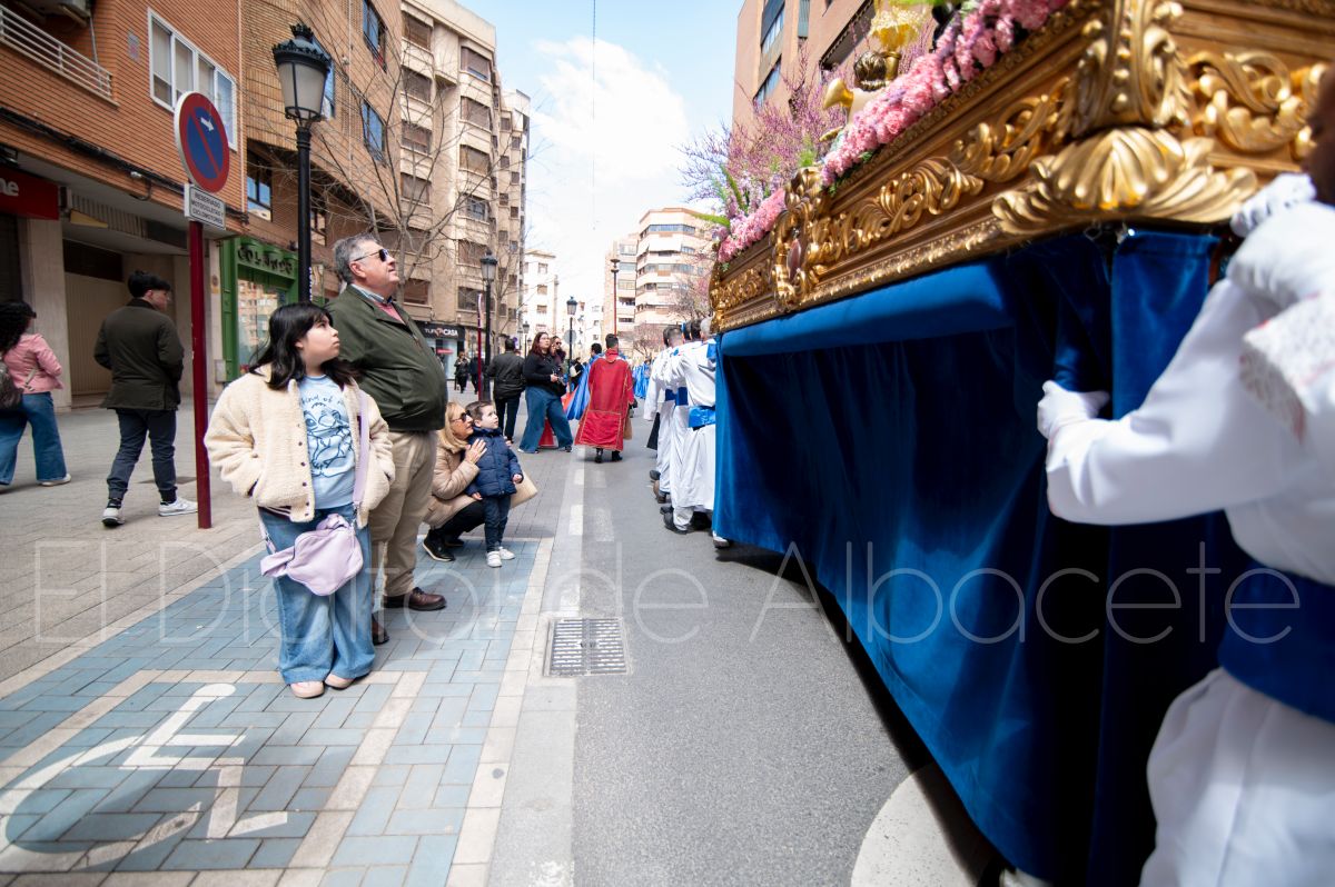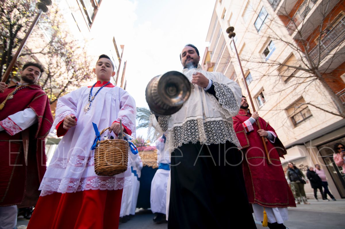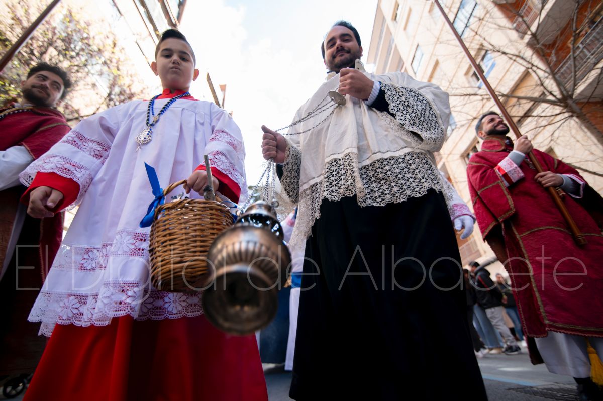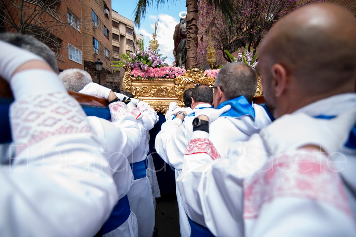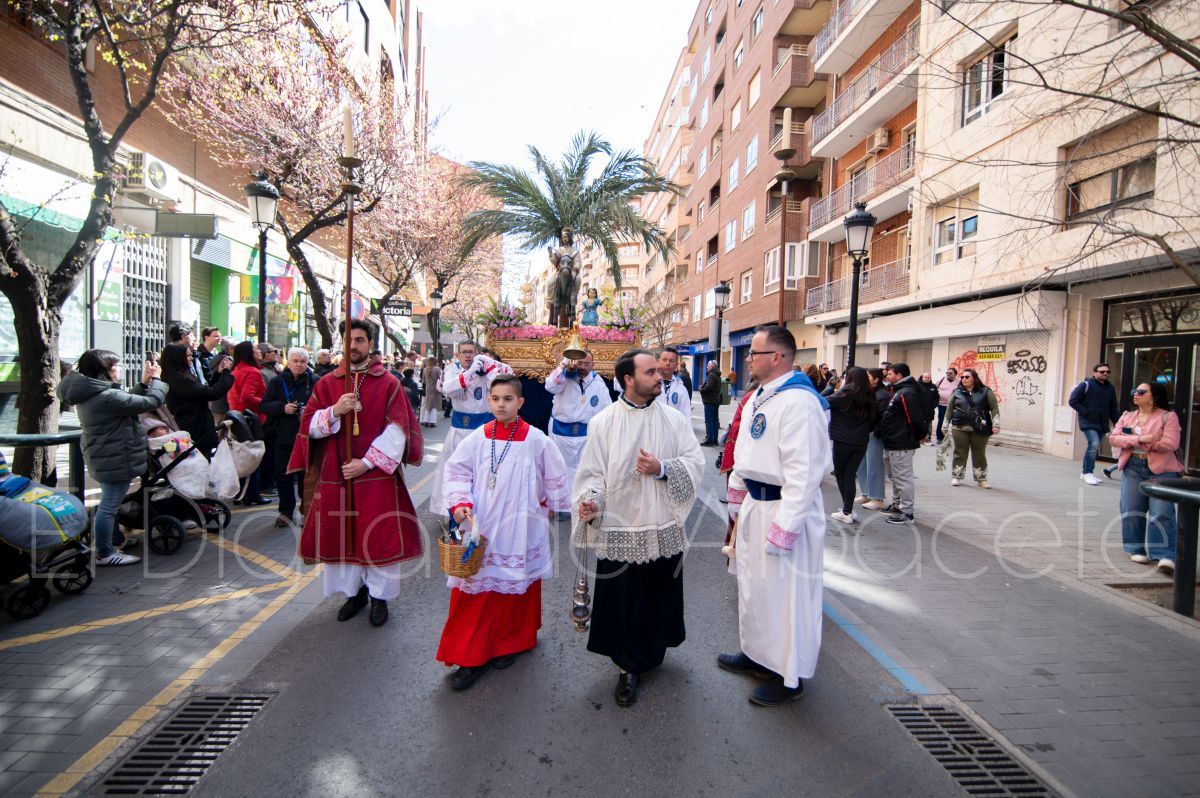 La Entrada Triunfal de Jesús en Jerusalén salía desde la Catedral de Albacete y recorría las calles Martínez Villena, Rosario, Caba, Blasco Ibáñez, San Juan de Dios, San Luis, Hermanos Jiménez, Arcipreste Gálvez hasta la parroquia de Fátima.