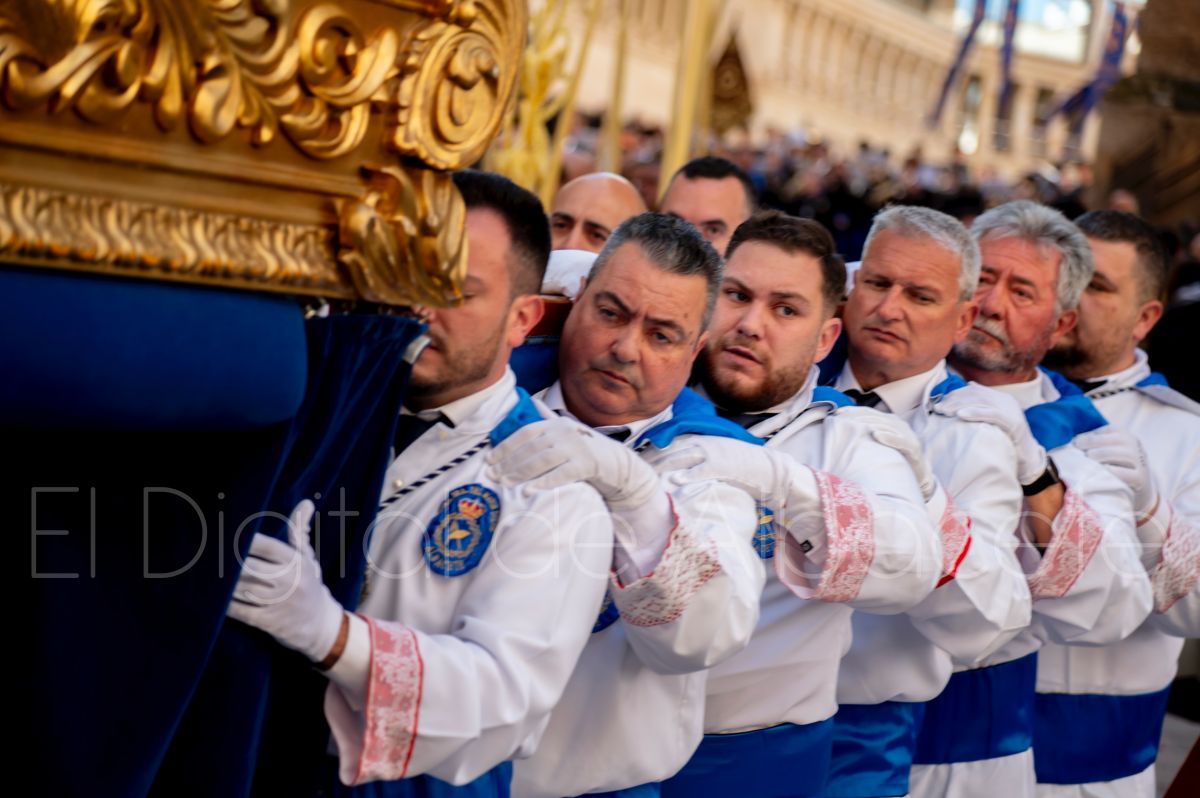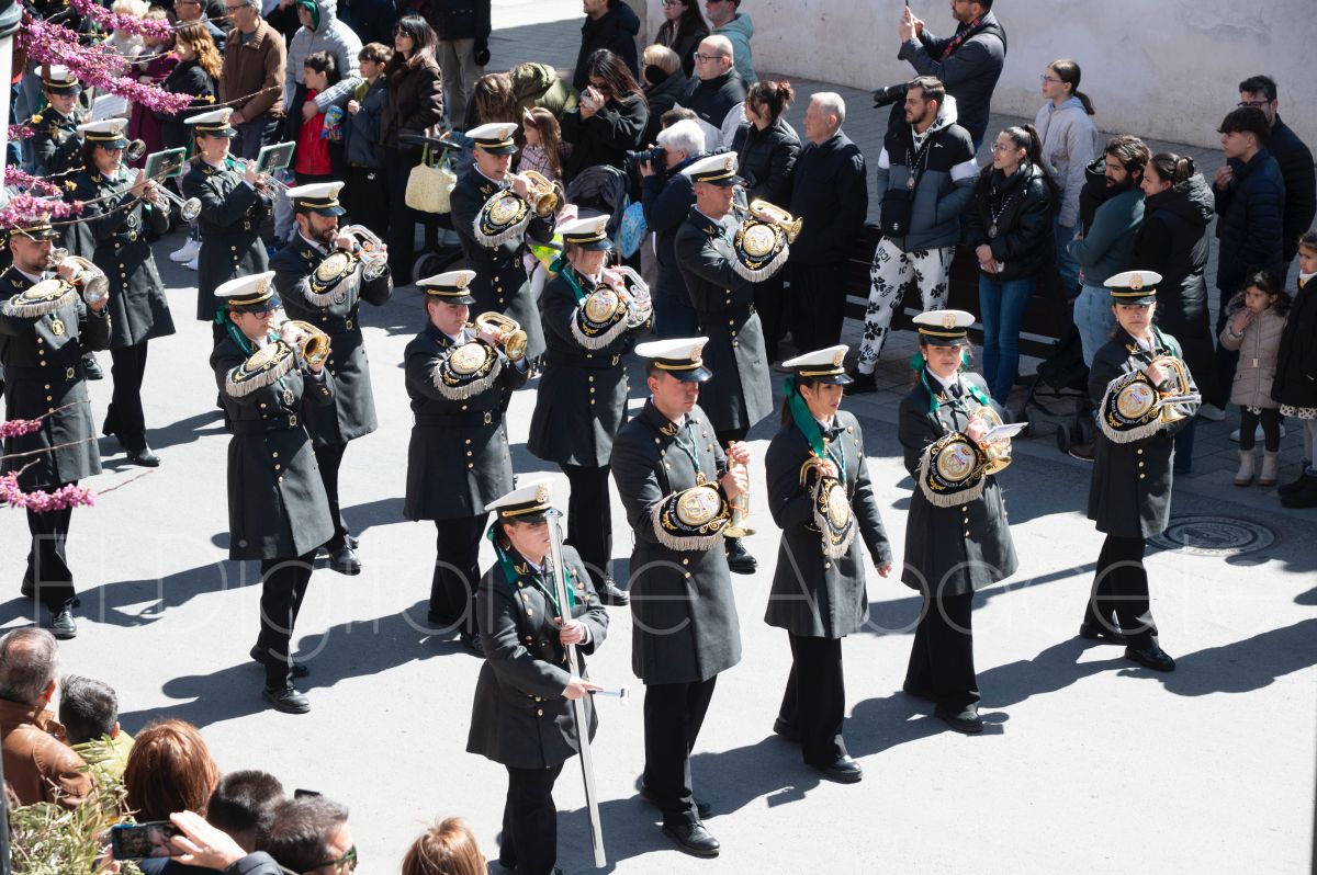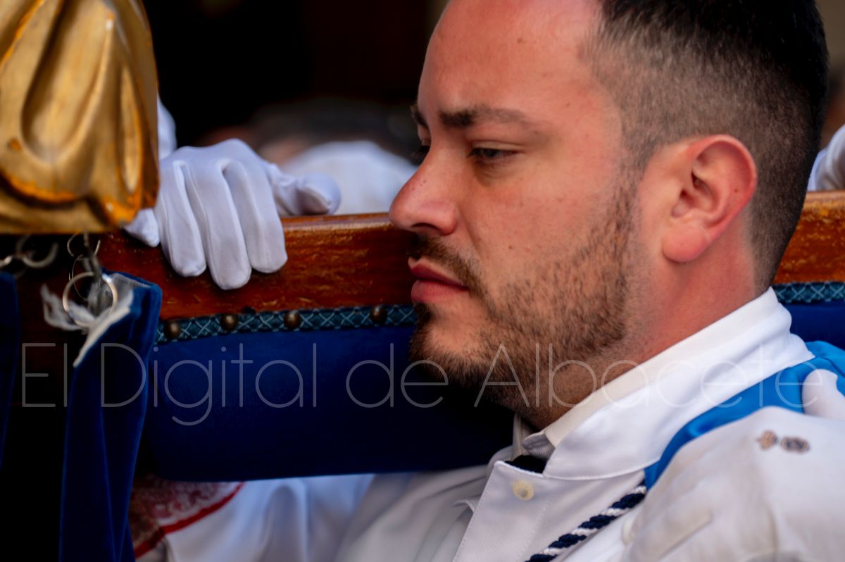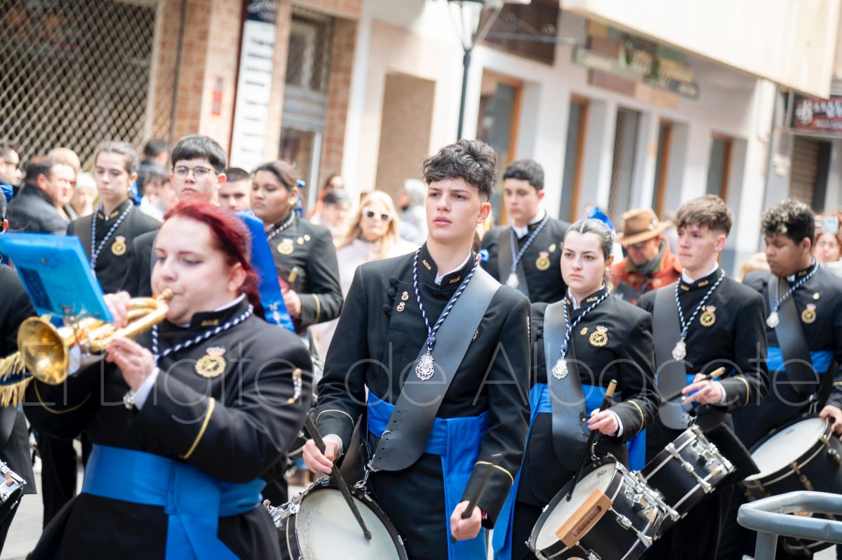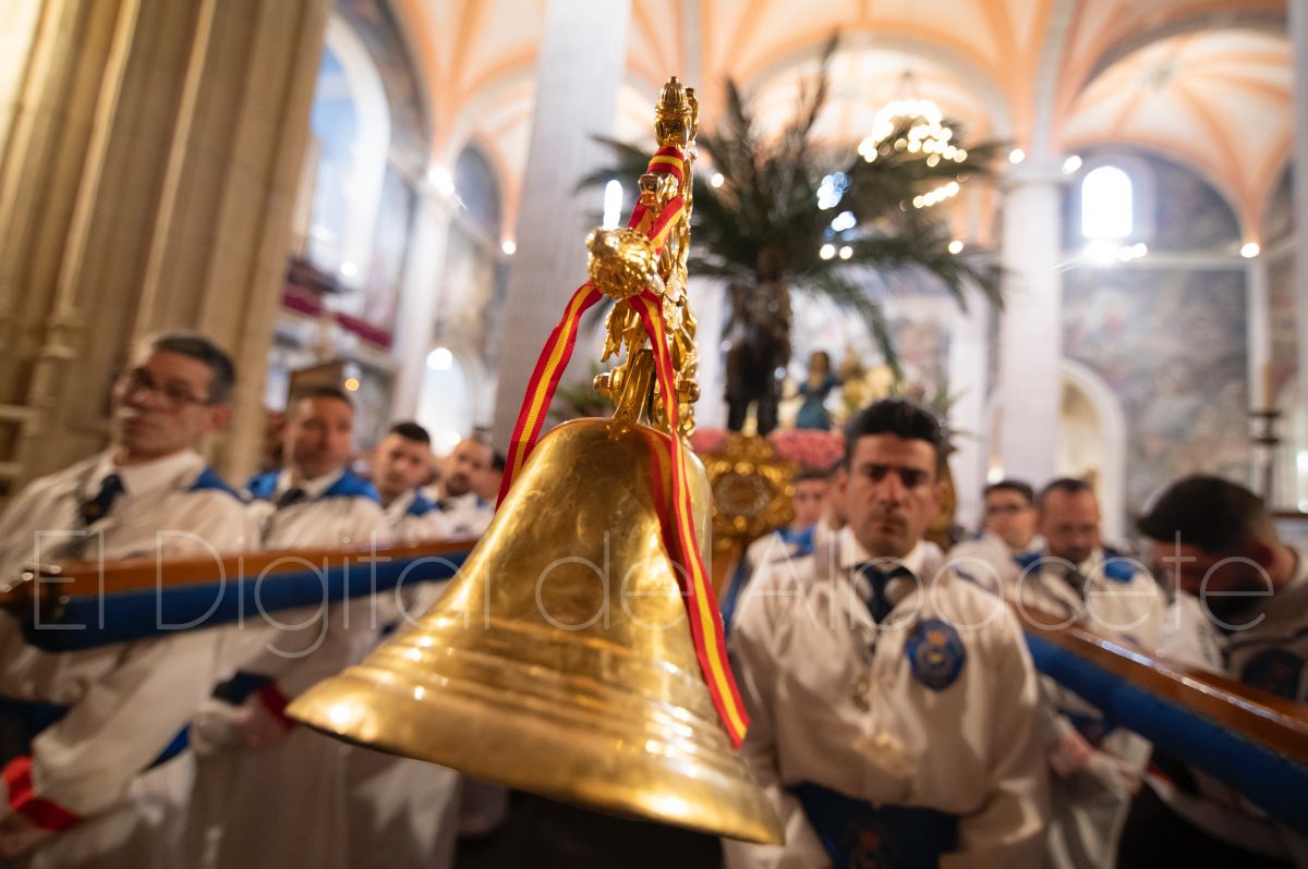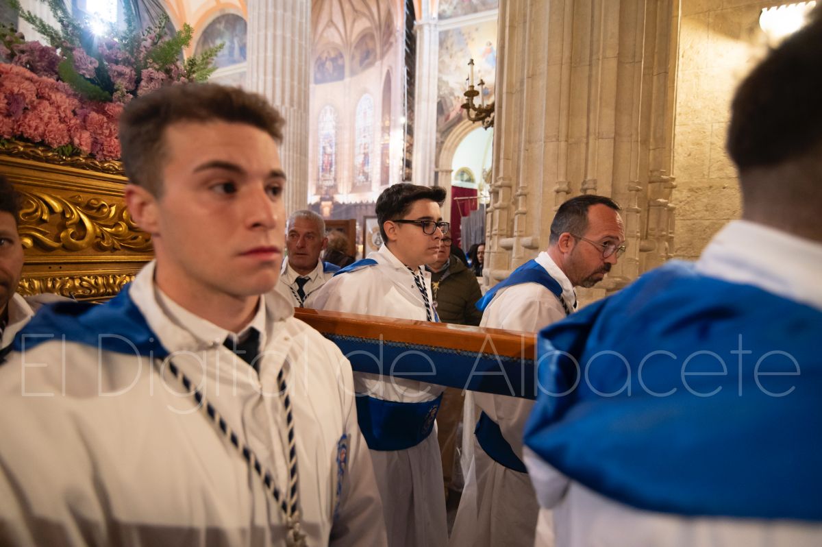 Tras la tradicional bendición de las palmas y ramas de olivo, la imagen de ‘La Borriquita’ salía de la Catedral de Albacete. Así, acompañaban a esta popular imagen en su discurrir por las calles de Albacete nazarenos la Cofradía de Nuestra Señora del Mayor Dolor que prescindían de los tradiciones capuces y mostraban su rostro en esta jornada dominical, conmemorando la entrada de Jesús en Jerusalén.