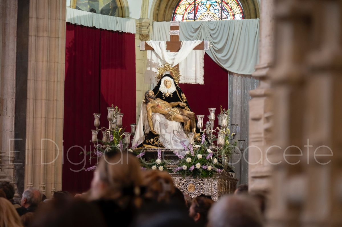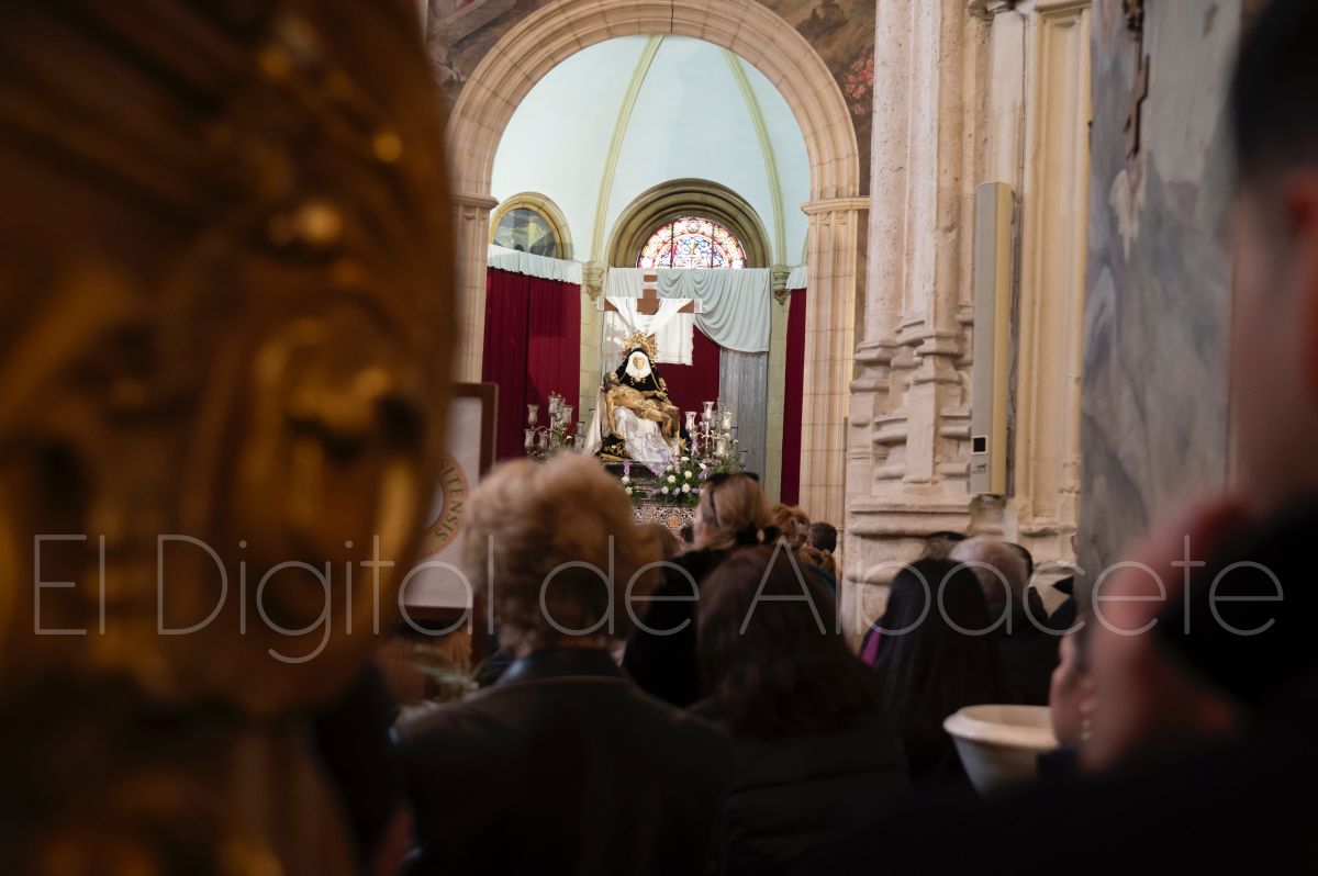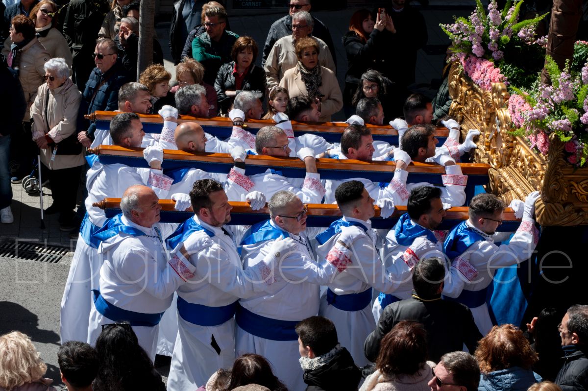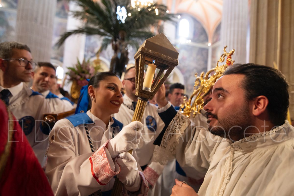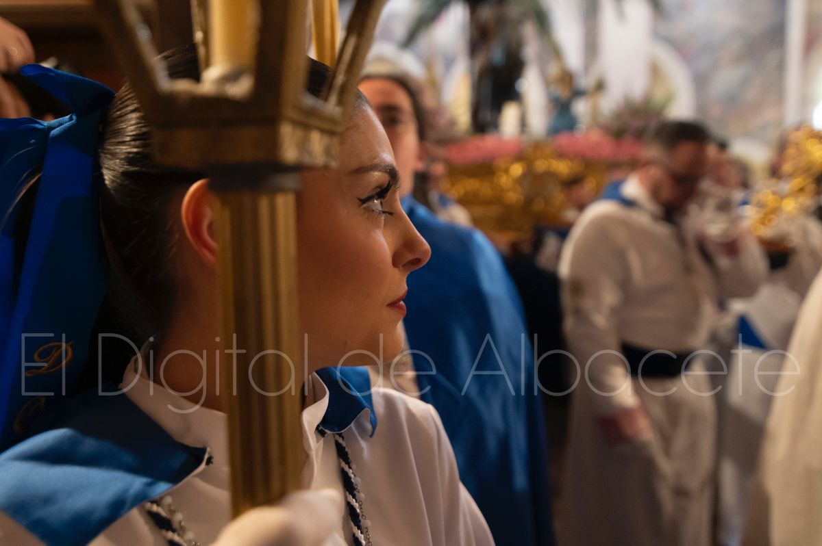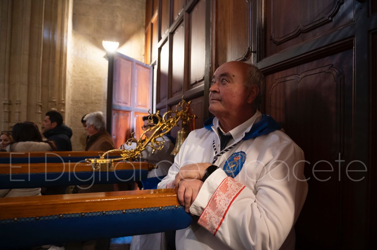 Tras la tradicional bendición de las palmas y ramas de olivo, la imagen de ‘La Borriquita’ salía de la Catedral de Albacete. Así, acompañaban a esta popular imagen en su discurrir por las calles de Albacete nazarenos la Cofradía de Nuestra Señora del Mayor Dolor que prescindían de los tradiciones capuces y mostraban su rostro en esta jornada dominical, conmemorando la entrada de Jesús en Jerusalén.