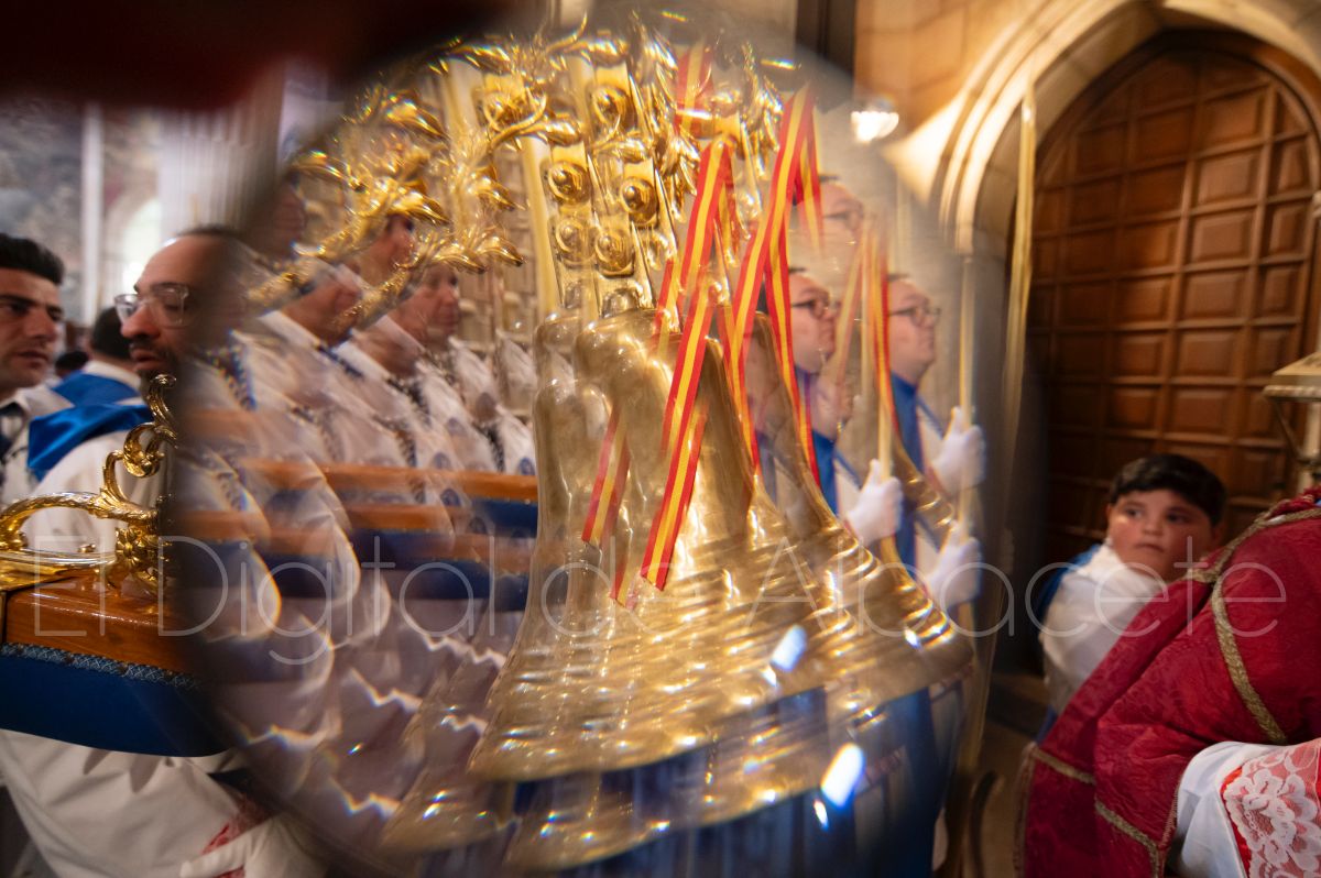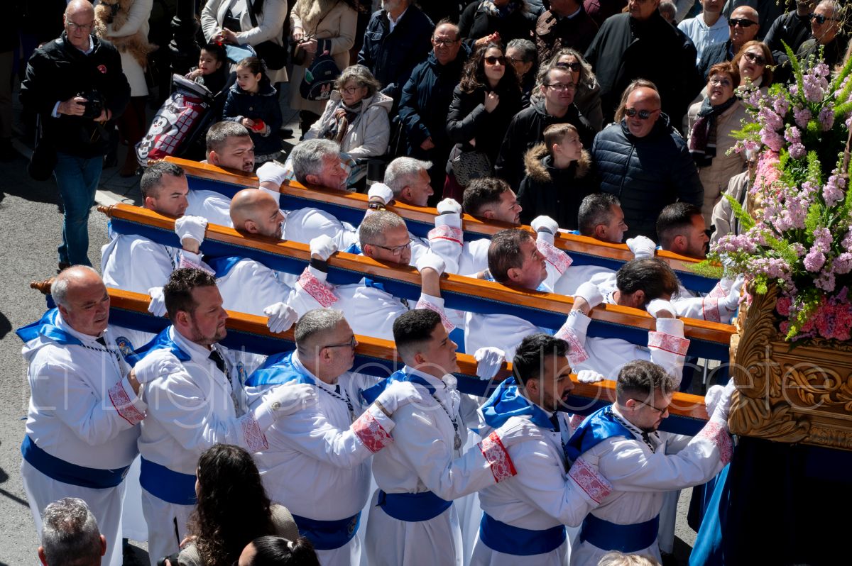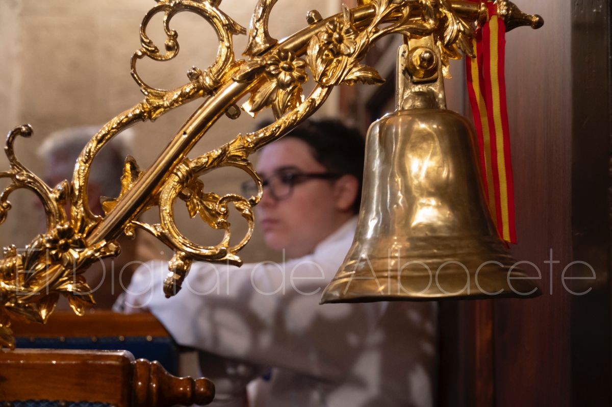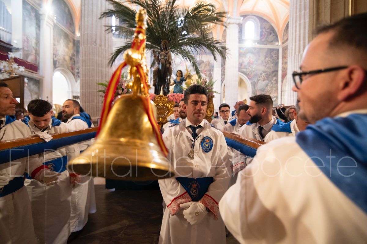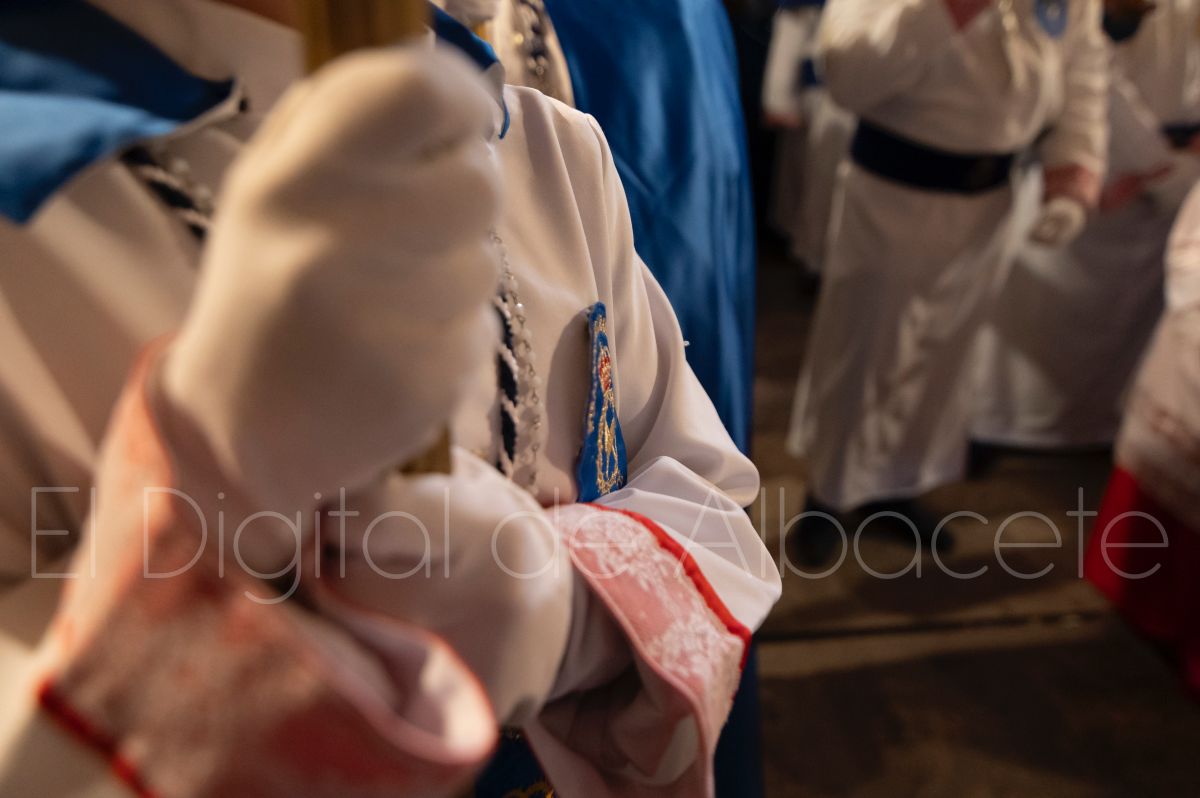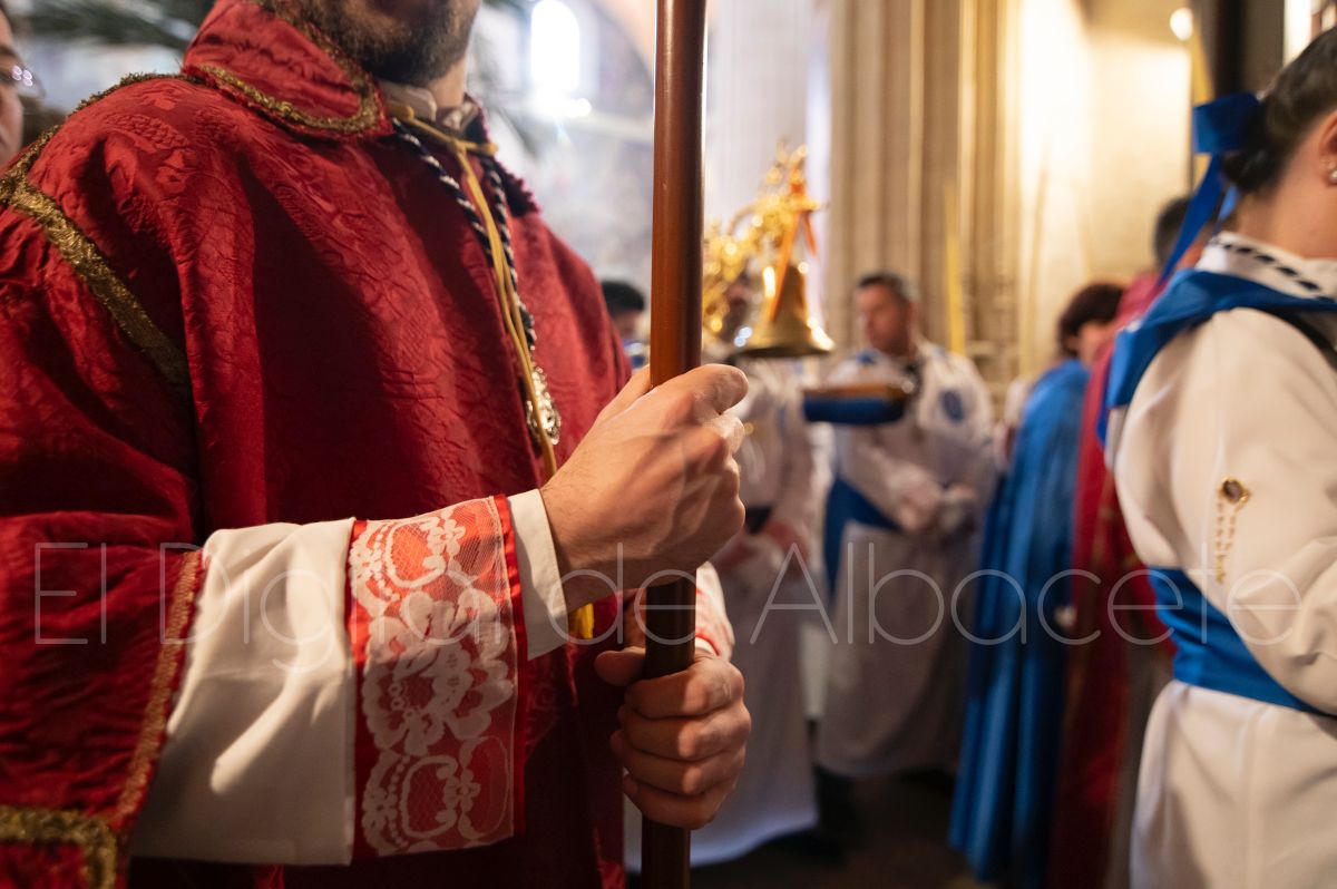 Tras la tradicional bendición de las palmas en la Catedral de Albacete, ‘La Borriquita’ iniciaba su recorrido acompañada por la Cofradía de Nuestra Señora del Mayor Dolor y una nutrida representación de nazarenos de otras cofradías de la Semana Santa albaceteña. Precisamente en esta ocasión, los nazarenos prescindieron del habitual capuz, mostrando sus rostros, en consonancia con el carácter festivo de esta celebración. Un gesto que simboliza la apertura y la alegría propias del Domingo de Ramos.
