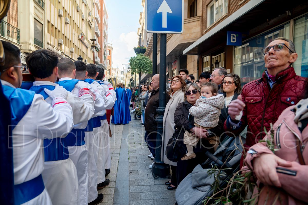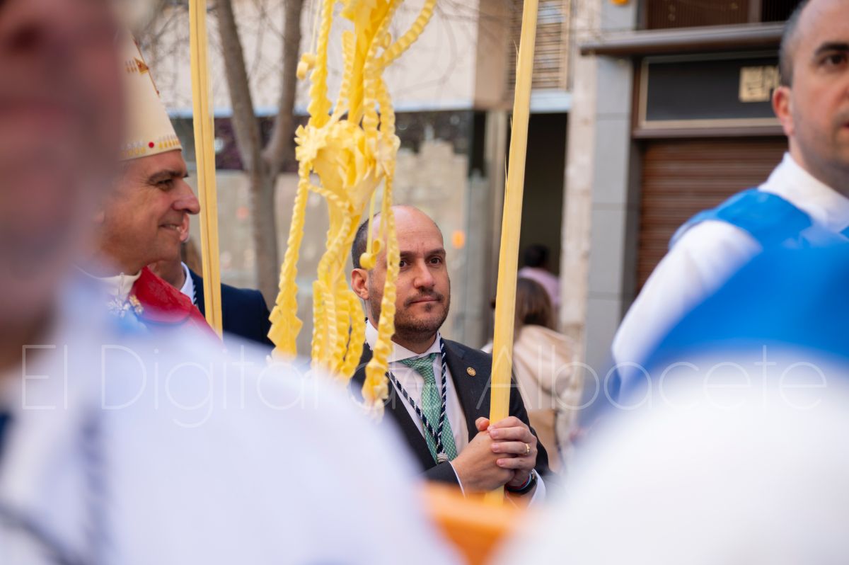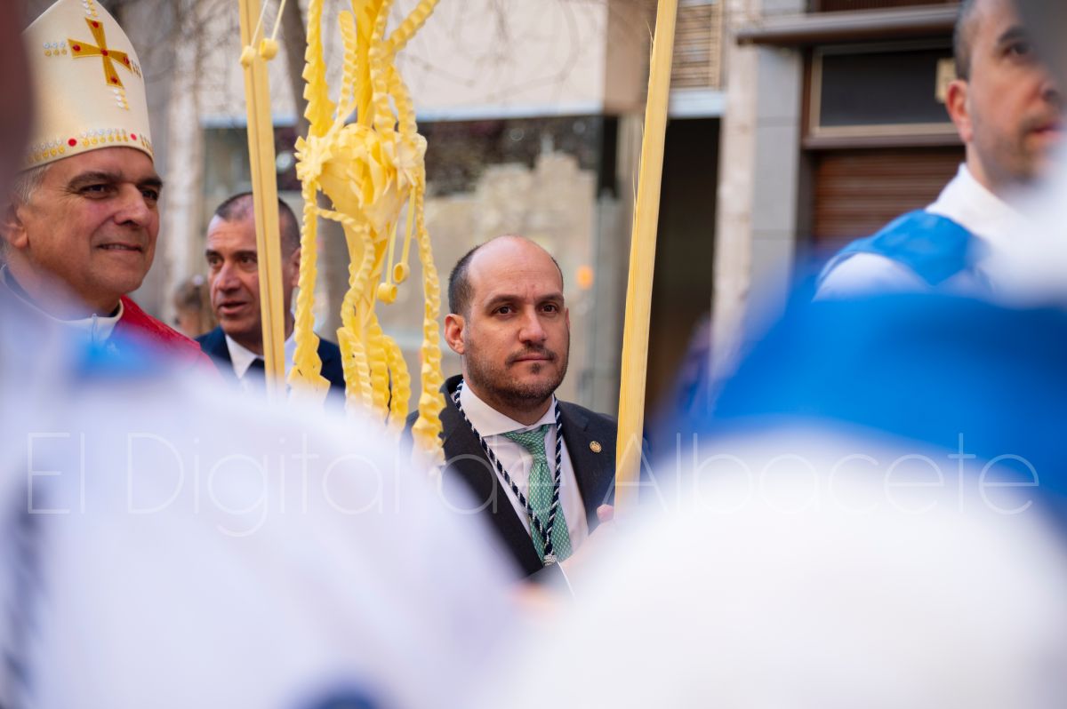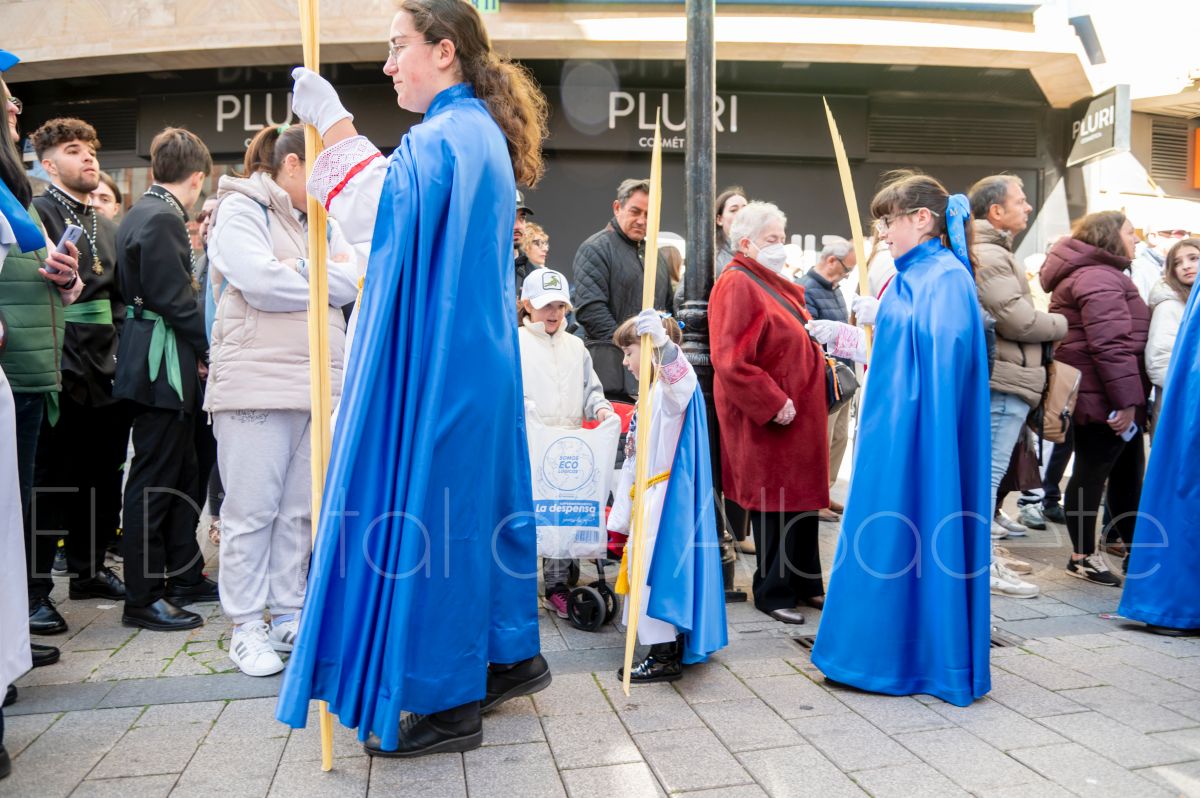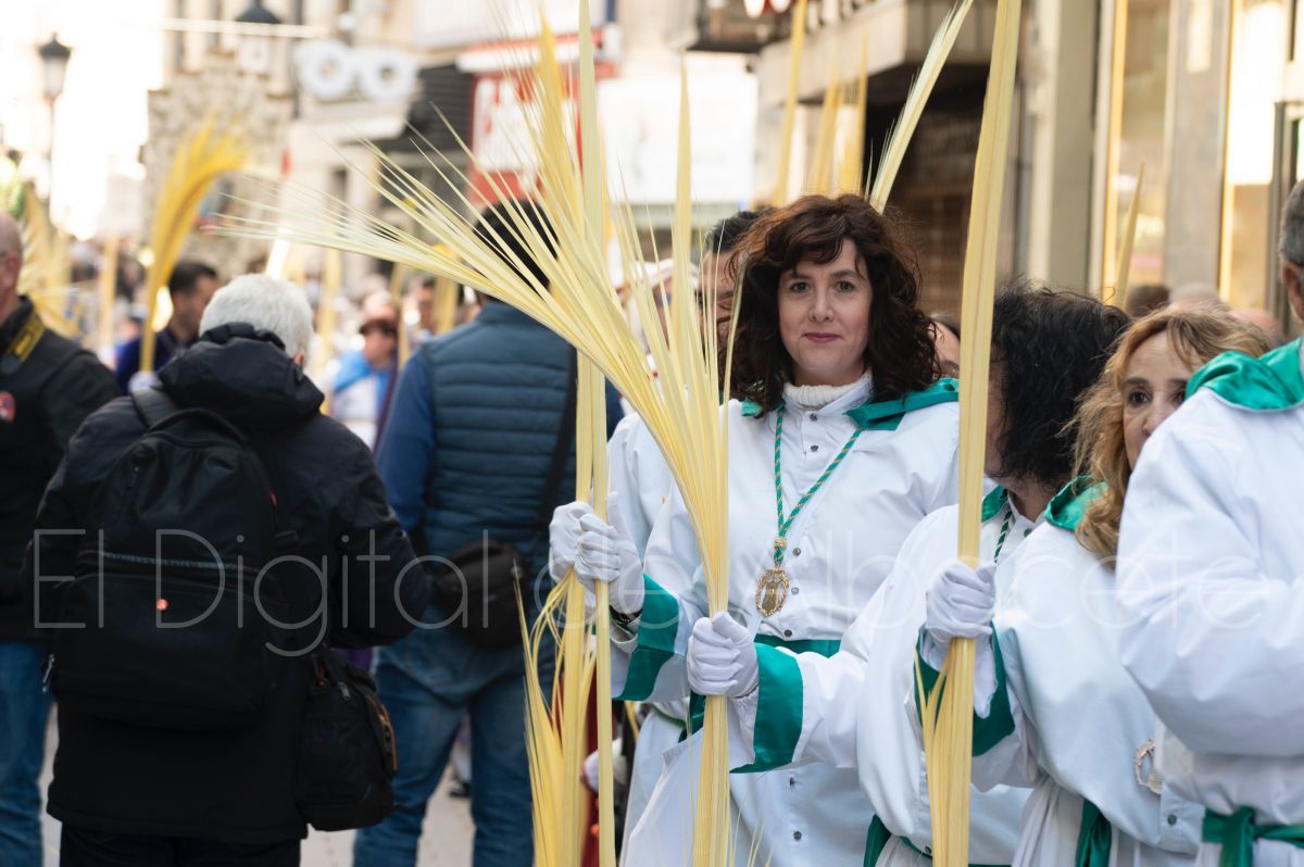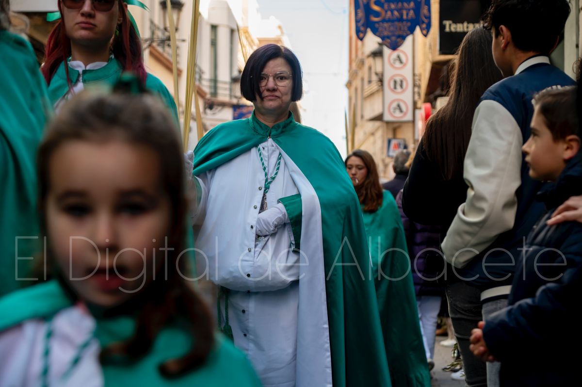 Entre palmas y ramas de olivo discurría la popular imagen de ‘La Borriquita’ por las calles de Albacete. Así, la imagen de la Entrada Triunfal de Jesús en Jerusalén era la protagonista indiscutible de la Procesión de las Palmas celebrada en la mañana de este Domingo de Ramos en la capital albaceteña.