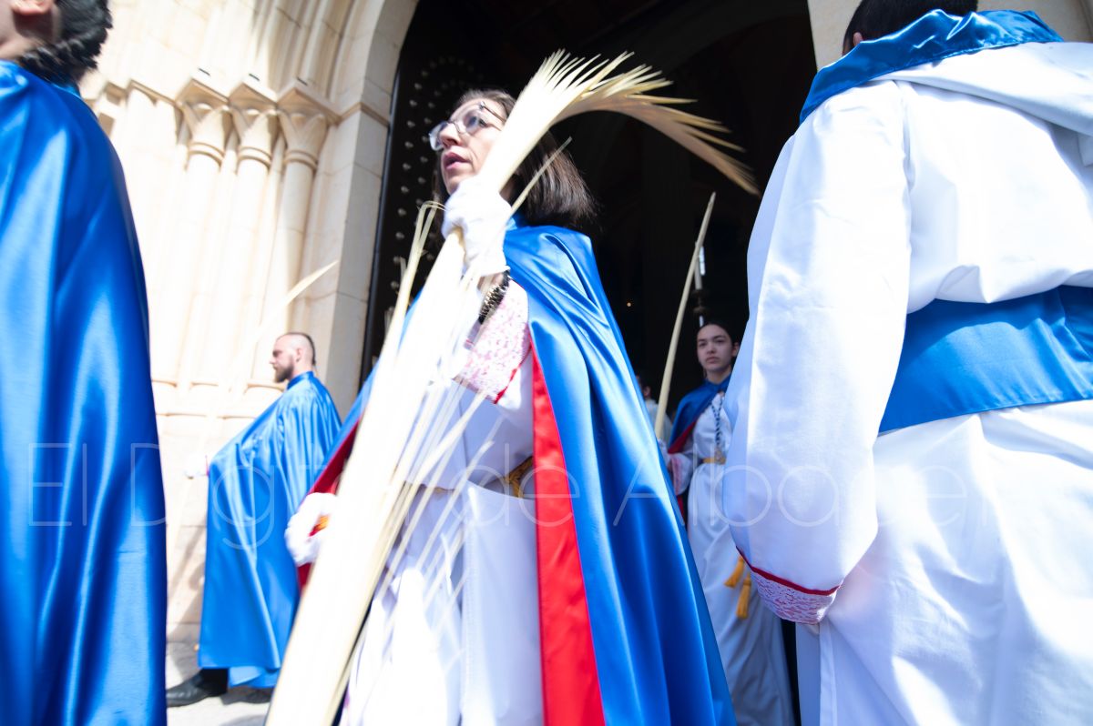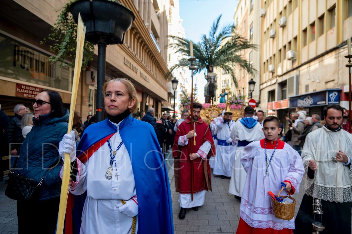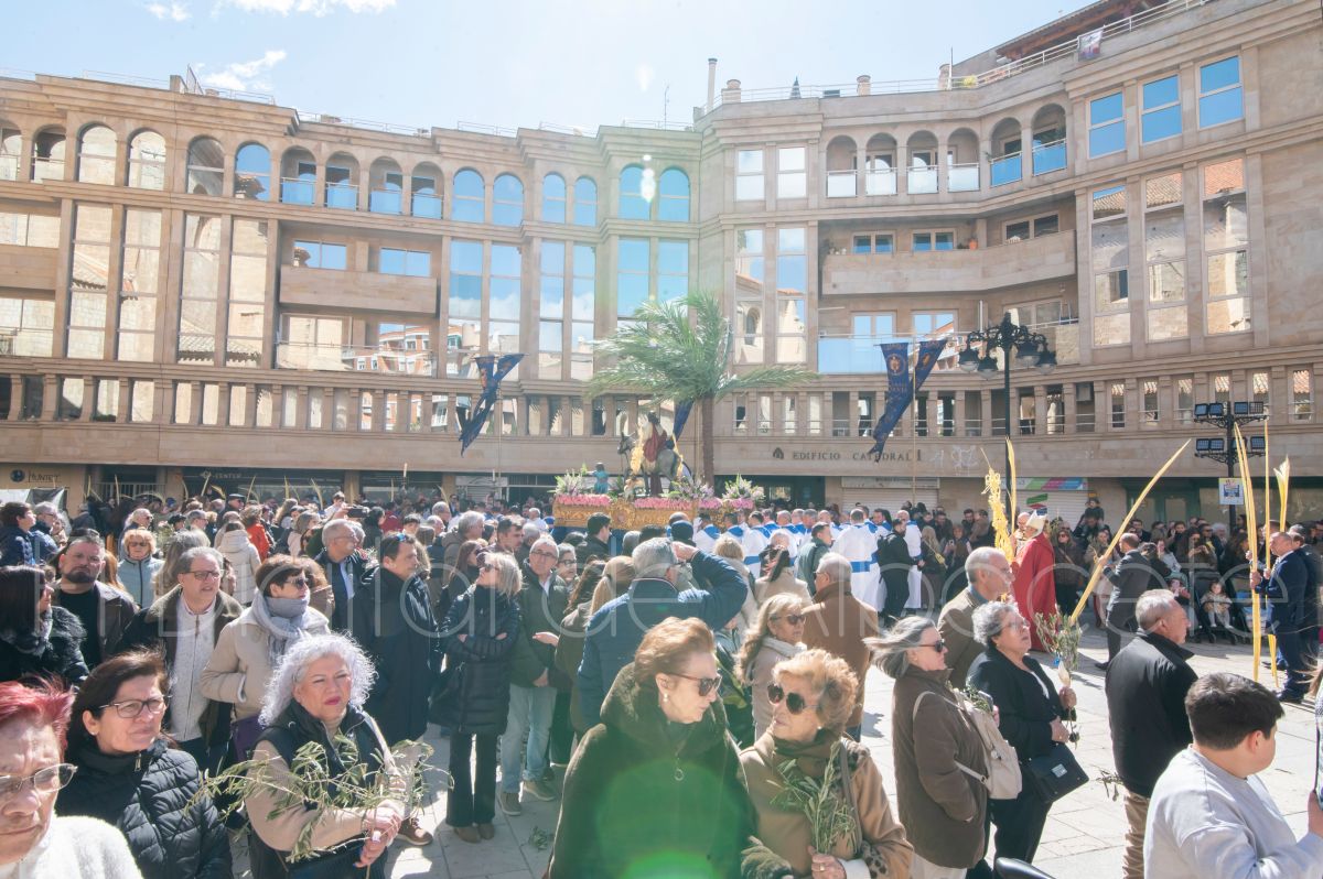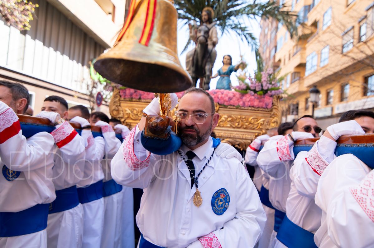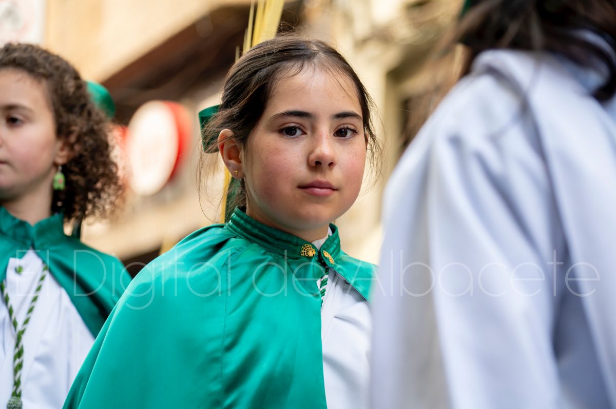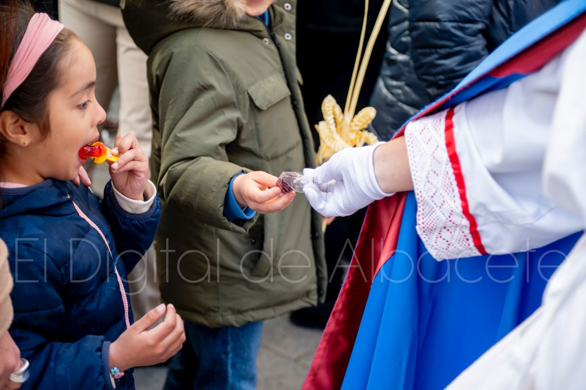 Entre palmas y ramas de olivo discurría la popular imagen de ‘La Borriquita’ por las calles de Albacete. Así, la imagen de la Entrada Triunfal de Jesús en Jerusalén era la protagonista indiscutible de la Procesión de las Palmas celebrada en la mañana de este Domingo de Ramos en la capital albaceteña.