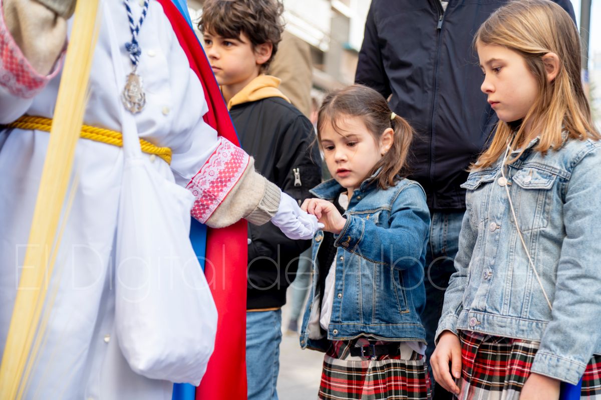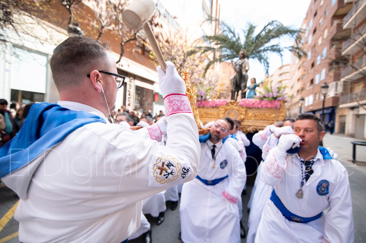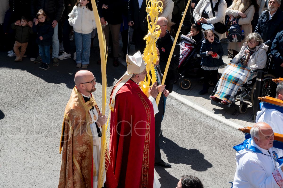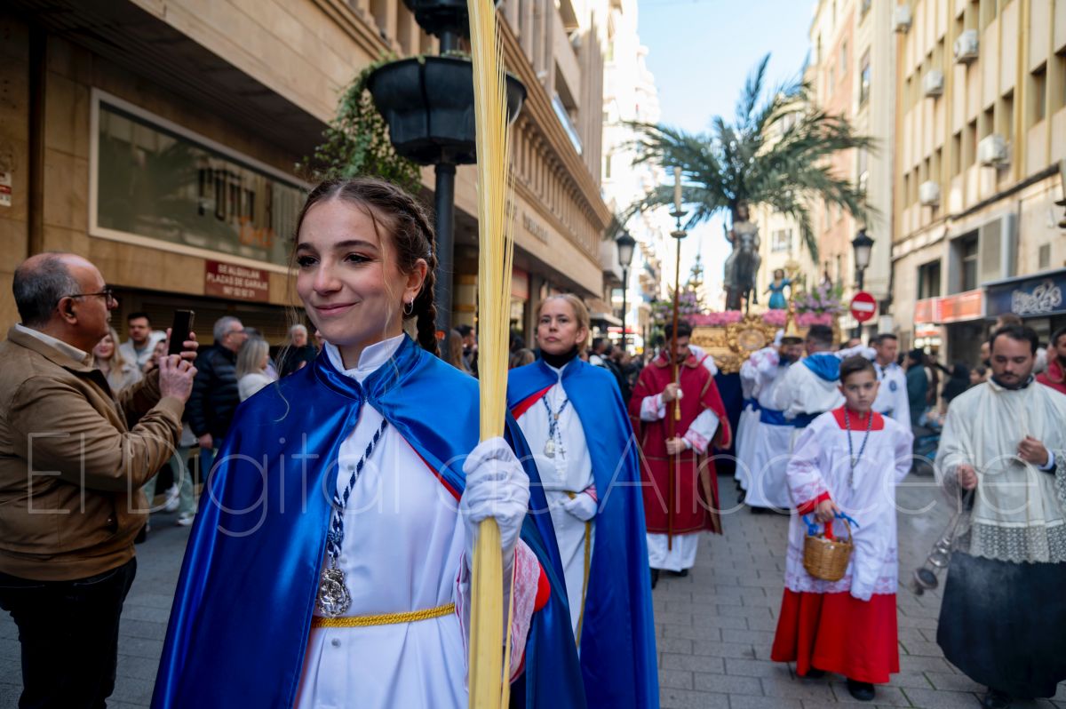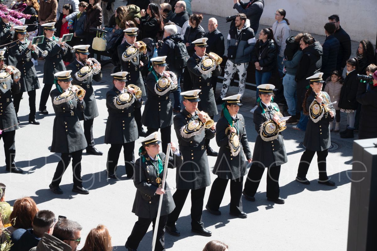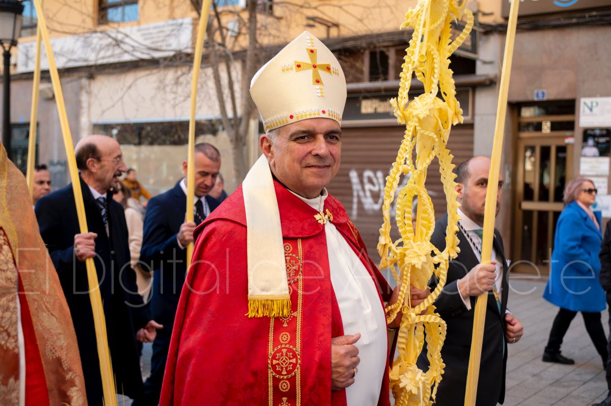 Entre palmas y ramas de olivo discurría la popular imagen de ‘La Borriquita’ por las calles de Albacete. Así, la imagen de la Entrada Triunfal de Jesús en Jerusalén era la protagonista indiscutible de la Procesión de las Palmas celebrada en la mañana de este Domingo de Ramos en la capital albaceteña.