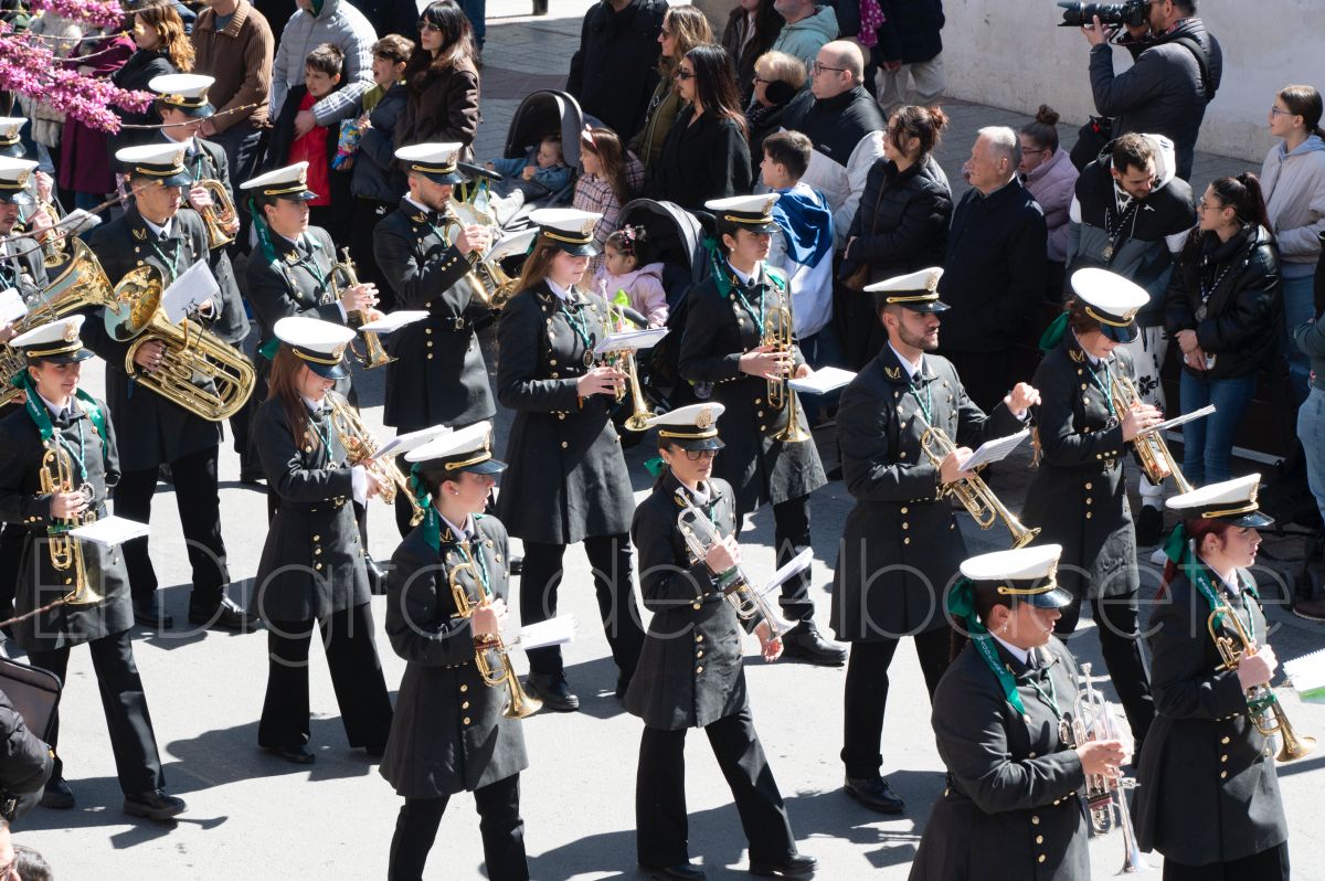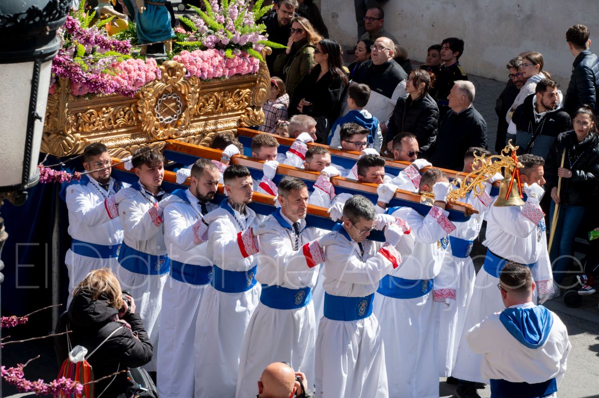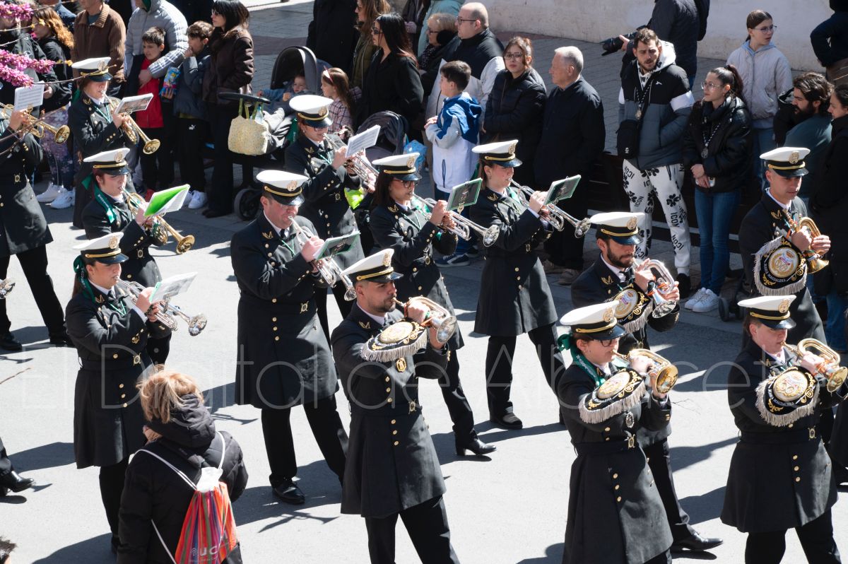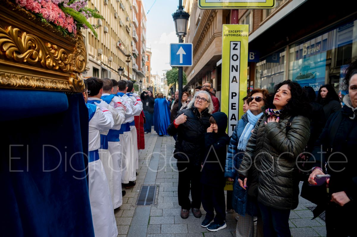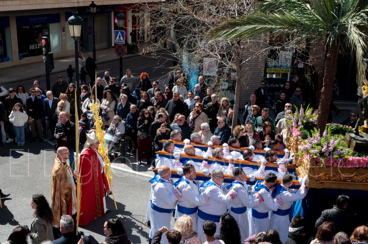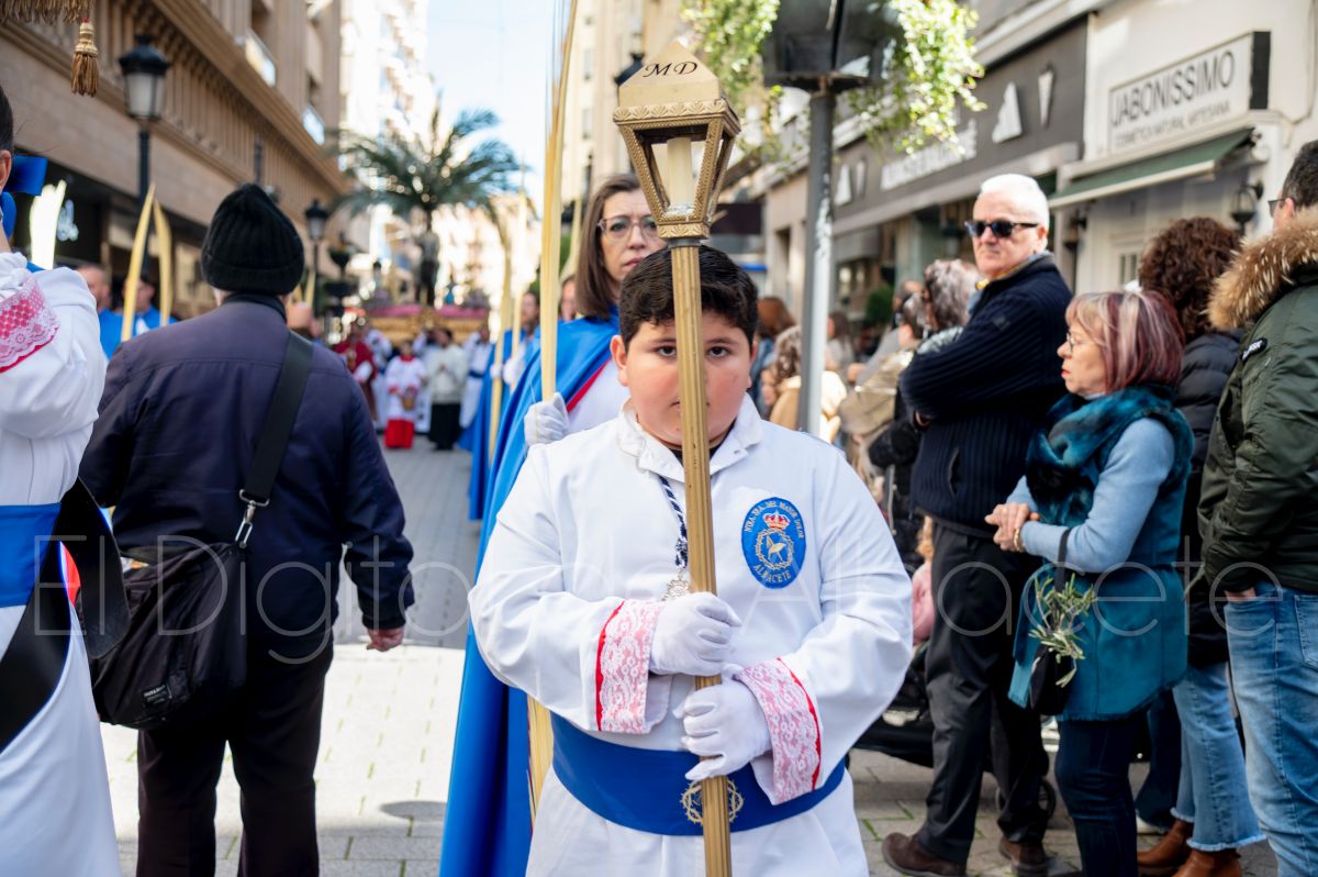 Entre palmas y ramas de olivo discurría la popular imagen de ‘La Borriquita’ por las calles de Albacete. Así, la imagen de la Entrada Triunfal de Jesús en Jerusalén era la protagonista indiscutible de la Procesión de las Palmas celebrada en la mañana de este Domingo de Ramos en la capital albaceteña.