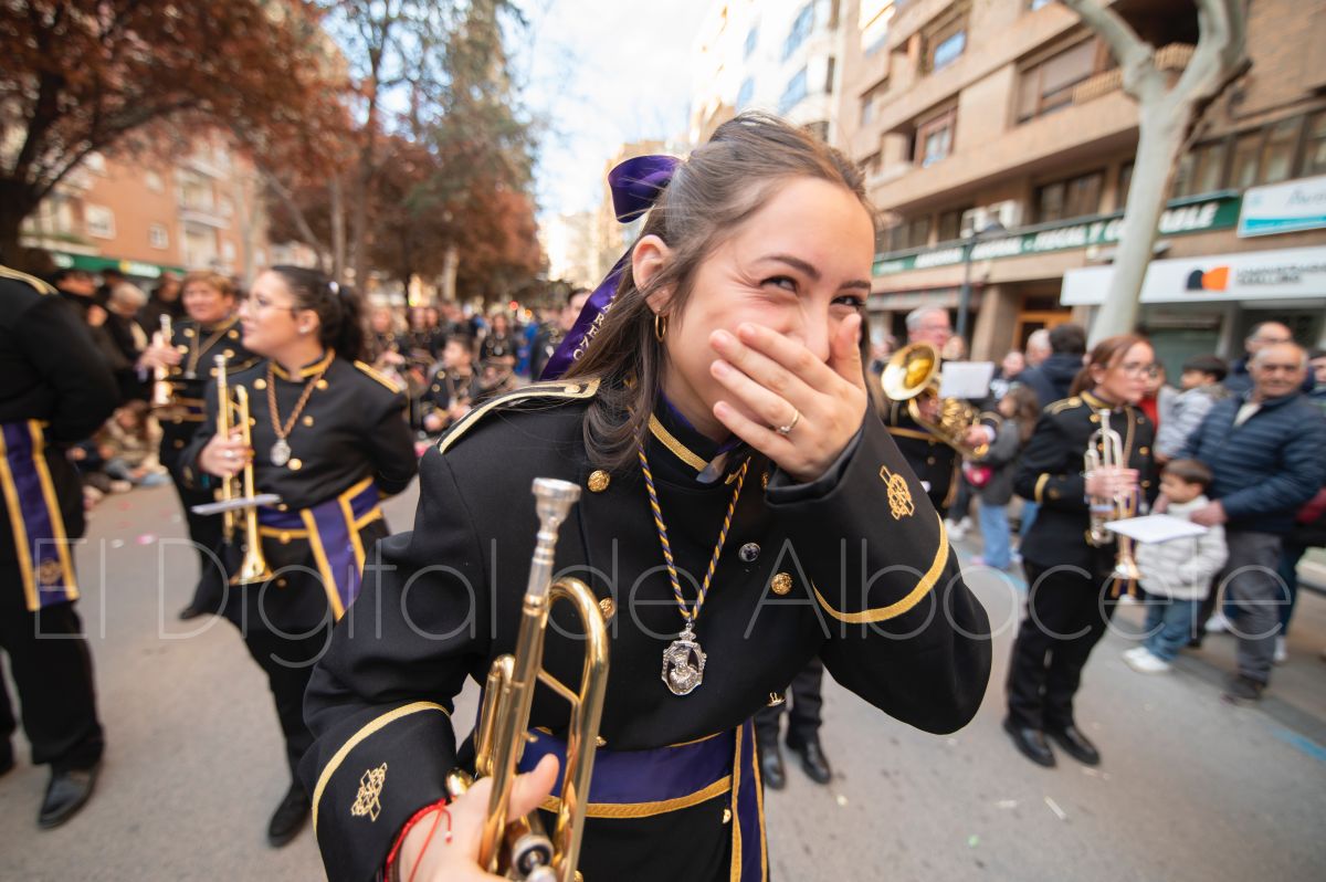 Una entrañable cita e la que las calles de Albacete se llenaban de niños dispuestos a engrandecer el significado de la Semana Santa. Costaleros, manolas y nazarenos en su versión infantil participaban en esta especial procesión con más de dos décadas de trayectoria.