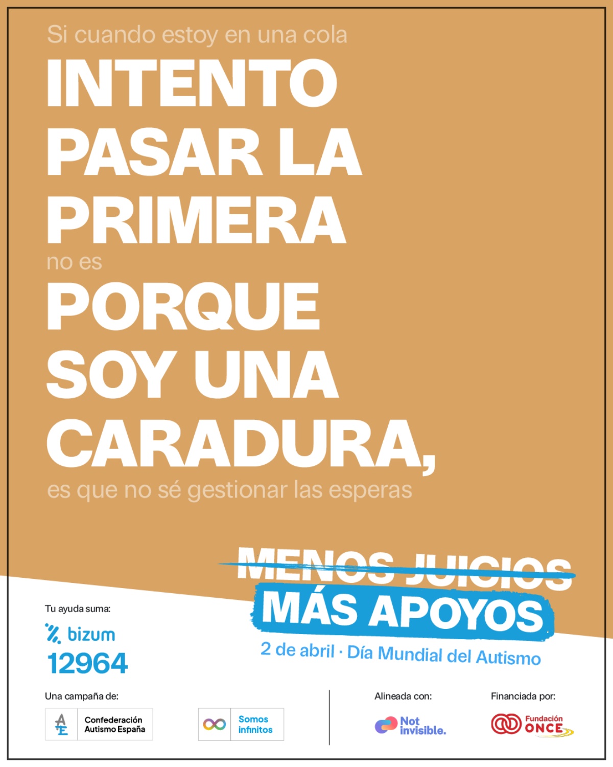 Esta campaña propone que, en lugar de “sentenciar” que alguien es borde, pesado o maleducado, nos paremos a pensar que, detrás de un comportamiento que no nos encaja o que no se ajusta a nuestras expectativas, puede haber una persona autista que necesita nuestro apoyo y nuestra comprensión para hacer frente a una situación que le genera malestar o que, simplemente, no sabe gestionar.